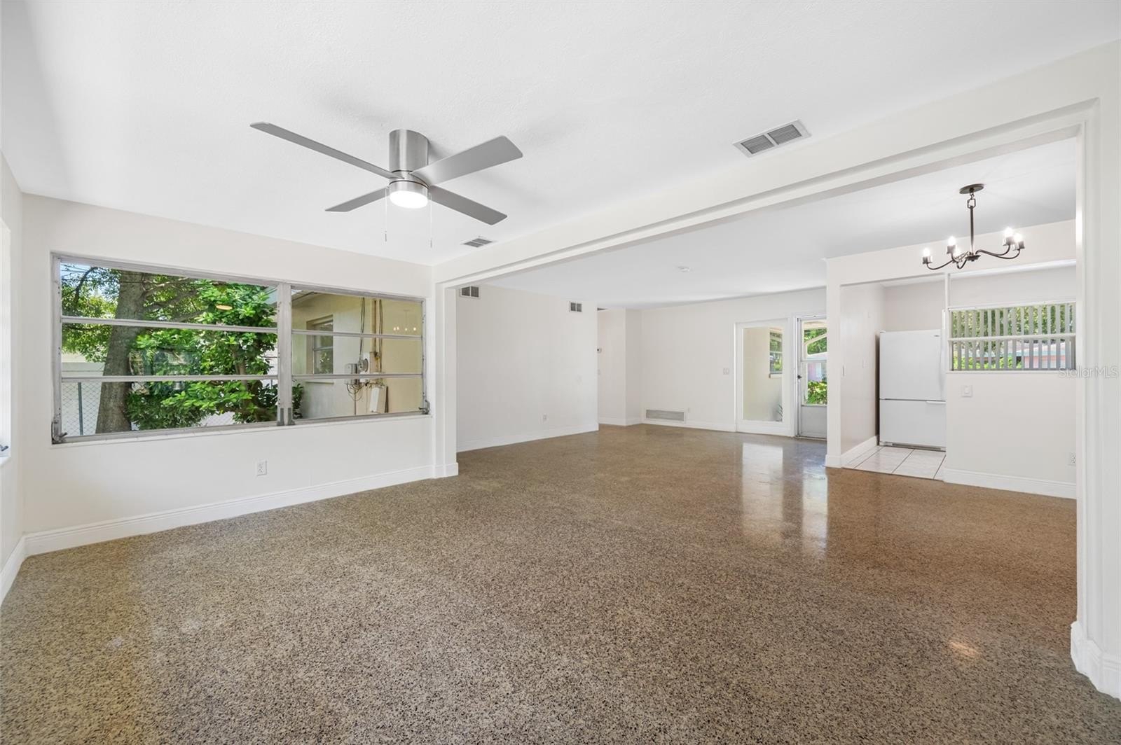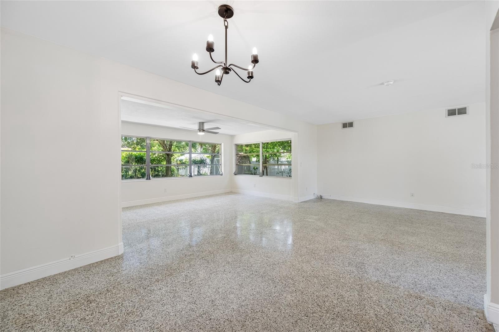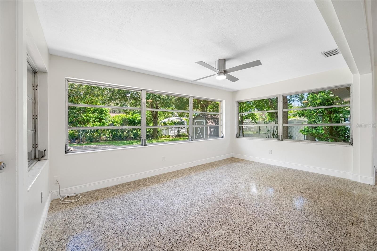 One or more photo(s) has been virtually staged. PRICE ADJUSTMENT TO $419,900! Tailored for Family Living, this Belleair Bluffs residence with history and heart is ready for your vision! Step inside this Mid-Century Modern retreat with extraordinary upside tucked into the vibrant Belleair Manor community—one of Pinellas County’s most cherished neighborhoods. With its inviting curb appeal, oversized 2-car garage, and timeless charm, this rock-solid Ranch-style home is ready to welcome your family with style, comfort, and practicality. Located on a quiet, tree-lined street, just blocks from scenic parks, Pelican Golf Club, and top-tier dining and shopping, the location encourages outdoor adventures and close-knit community connections—without sacrificing convenience. No flood insurance is required – truly a huge benefit in today’s market! Enjoy a truly peaceful setting for everyday life! Inside, discover 1252 square feet of expansive, sun-filled living featuring gleaming terrazzo flooring throughout. Immediately, your awestruck with the large open, great room layout with versatile uses! The living area off the entry is adjoined by a large dining area, all overlooking a vast wall of windows in the adjoining Florida room flooded with light—perfect for family gatherings or daily relaxation. The kitchen with limitless possibilities is poised for its next chapter! Although primarily original, it is sizable and spills onto the roomy dining area – the half wall offers the wonderful opportunity for a potential breakfast bar. Its open & extremely versatile layout keeps the chef connected to the action, whether it’s homework time or weekend hosting. There are two comfortable, generous sized, light-filled Bedrooms with privacy that provide ample closet space and abundant natural light. The primary suite features its own full bath, while the second bedroom sits beside a full guest bath—ideal for growing families or visiting relatives. Step out to a fully fenced backyard sanctuary—a haven for kids, pets, or backyard dreams. This almost .25 AC lot (85 x 105) could easily accommodate a huge, family sized inground pool! From swing sets to BBQs, there’s room here to create lasting memories. The oversized garage offers bonus space where it counts. With additional storage and including a laundry corner, it’s perfect for beach gear, bicycles, or weekend DIY projects. This Belleair Manor residence is priced to sell and has a wealth of untapped potential! This pristinely kept home is bursting with charm and ready for your distinctive touch. Located in the highly sought after Belleair Bluffs area, it is truly Location, Location, Location! Whether you are preserving its retro soul or envisioning modern updates, this is a canvas filled with the potential! Belleair Manor in Belleair Bluffs – make it your next home!