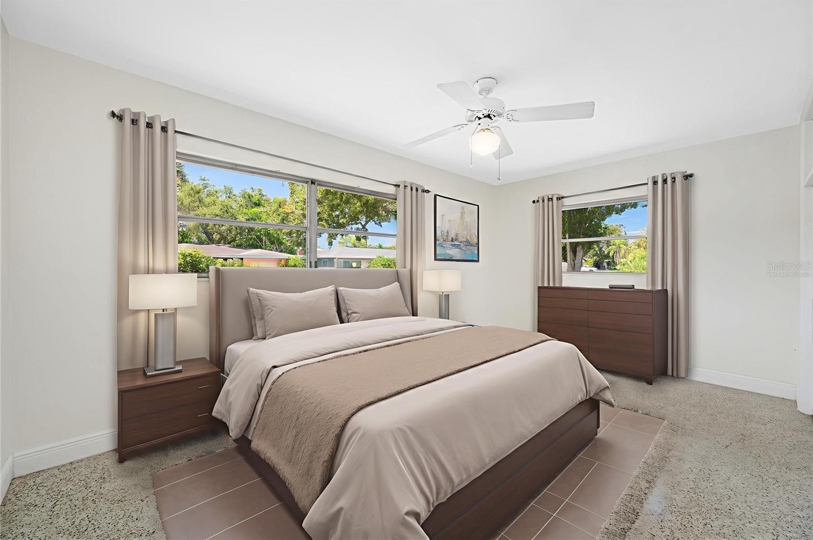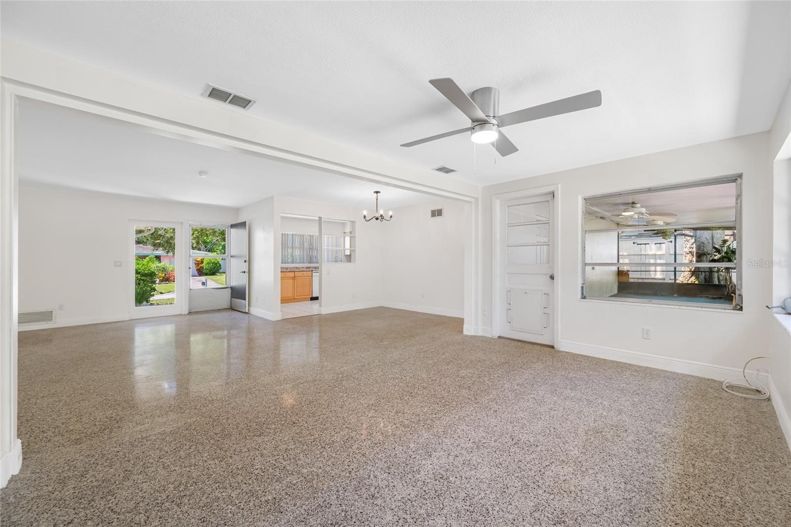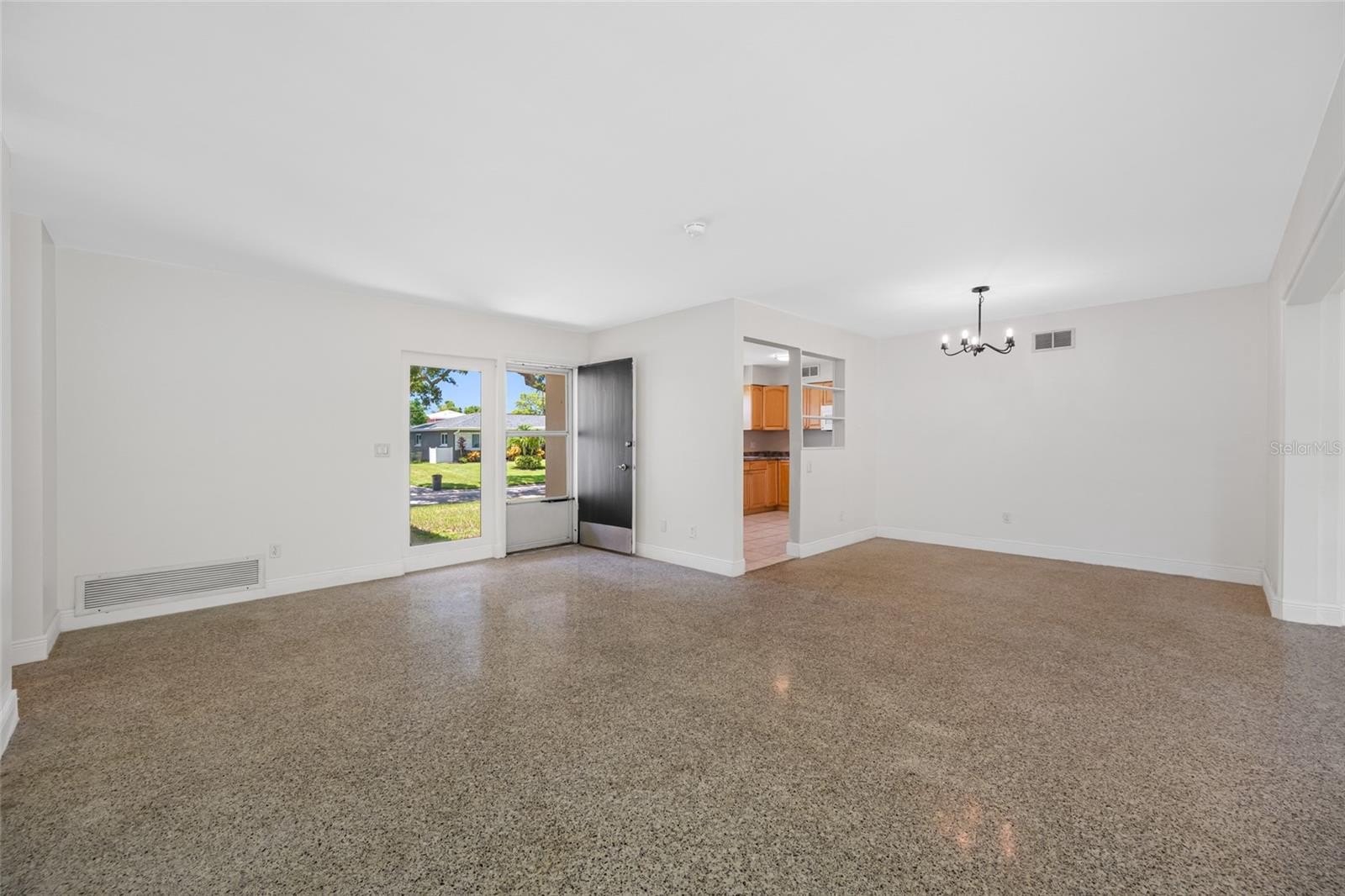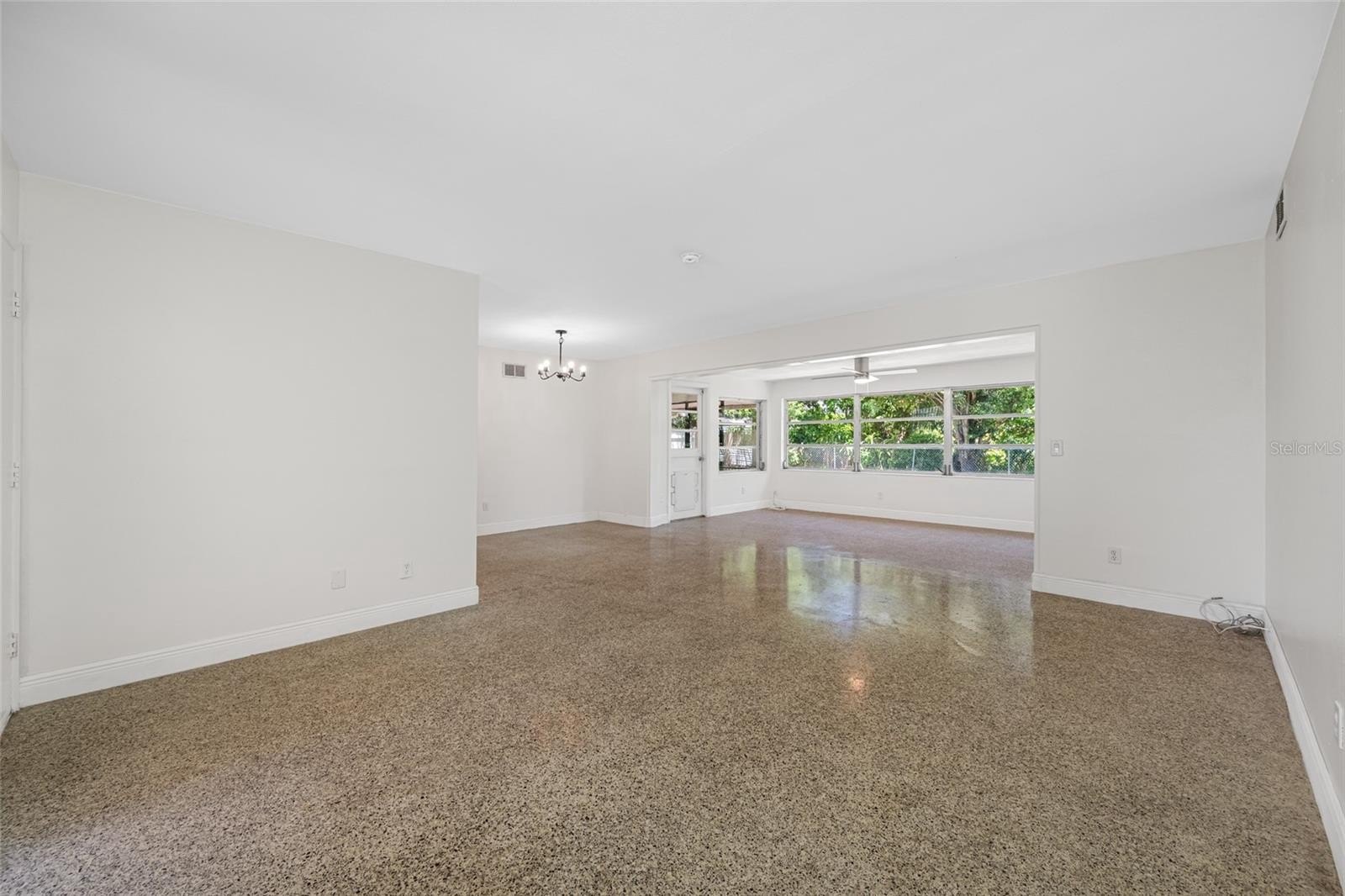 One or more photo(s) has been virtually staged. PRICE ADJUSTMENT TO $419,900! Tailored for Family Living, this Belleair Bluffs residence with history and heart is ready for your vision! Step inside this Mid-Century Modern retreat with extraordinary upside tucked into the vibrant Belleair Manor community—one of Pinellas County’s most cherished neighborhoods. With its inviting curb appeal, oversized 2-car garage, and timeless charm, this rock-solid Ranch-style home is ready to welcome your family with style, comfort, and practicality. Located on a quiet, tree-lined street, just blocks from scenic parks, Pelican Golf Club, and top-tier dining and shopping, the location encourages outdoor adventures and close-knit community connections—without sacrificing convenience. No flood insurance is required – truly a huge benefit in today’s market! Enjoy a truly peaceful setting for everyday life! Inside, discover 1252 square feet of expansive, sun-filled living featuring gleaming terrazzo flooring throughout. Immediately, your awestruck with the large open, great room layout with versatile uses! The living area off the entry is adjoined by a large dining area, all overlooking a vast wall of windows in the adjoining Florida room flooded with light—perfect for family gatherings or daily relaxation. The kitchen with limitless possibilities is poised for its next chapter! Although primarily original, it is sizable and spills onto the roomy dining area – the half wall offers the wonderful opportunity for a potential breakfast bar. Its open & extremely versatile layout keeps the chef connected to the action, whether it’s homework time or weekend hosting. There are two comfortable, generous sized, light-filled Bedrooms with privacy that provide ample closet space and abundant natural light. The primary suite features its own full bath, while the second bedroom sits beside a full guest bath—ideal for growing families or visiting relatives. Step out to a fully fenced backyard sanctuary—a haven for kids, pets, or backyard dreams. This almost .25 AC lot (85 x 105) could easily accommodate a huge, family sized inground pool! From swing sets to BBQs, there’s room here to create lasting memories. The oversized garage offers bonus space where it counts. With additional storage and including a laundry corner, it’s perfect for beach gear, bicycles, or weekend DIY projects. This Belleair Manor residence is priced to sell and has a wealth of untapped potential! This pristinely kept home is bursting with charm and ready for your distinctive touch. Located in the highly sought after Belleair Bluffs area, it is truly Location, Location, Location! Whether you are preserving its retro soul or envisioning modern updates, this is a canvas filled with the potential! Belleair Manor in Belleair Bluffs – make it your next home!