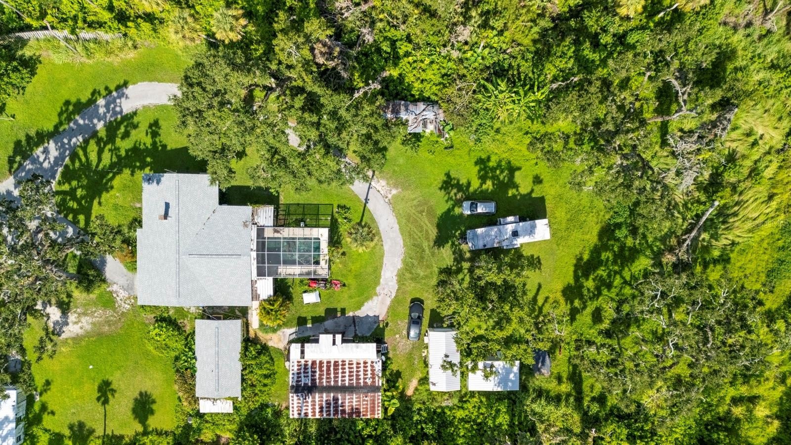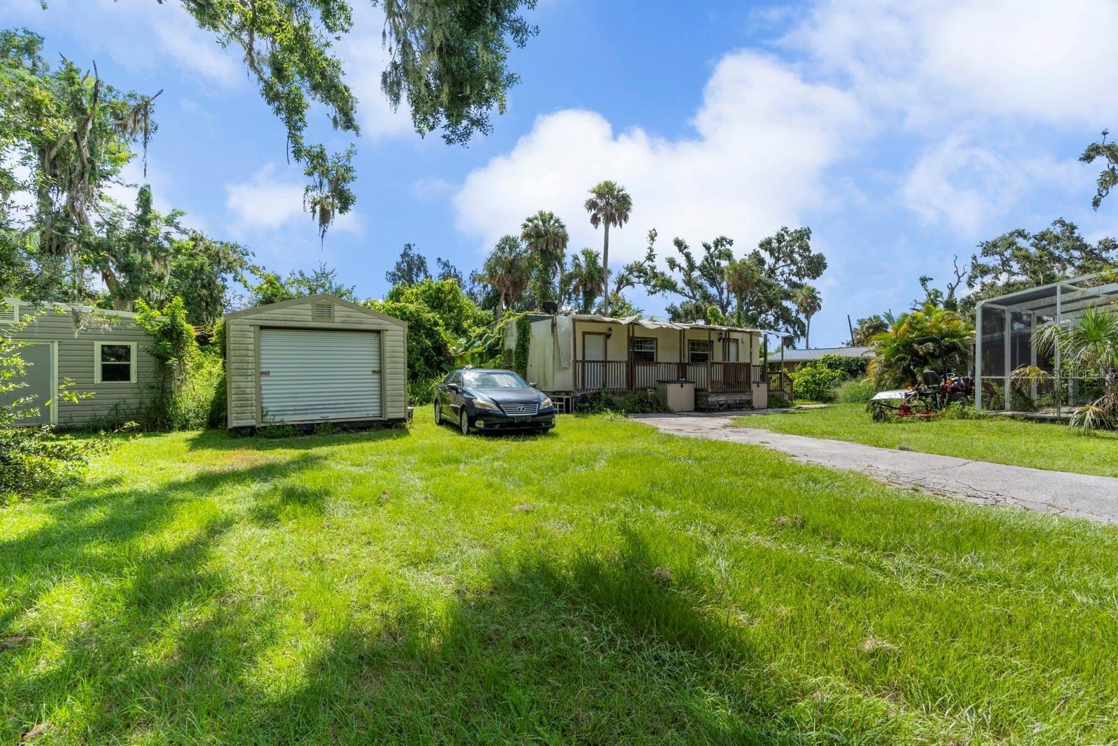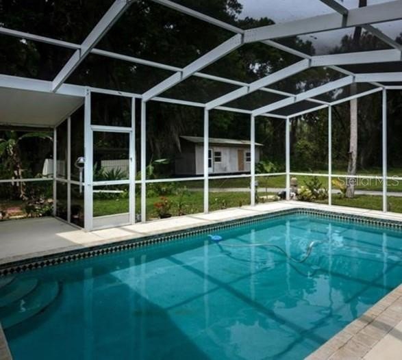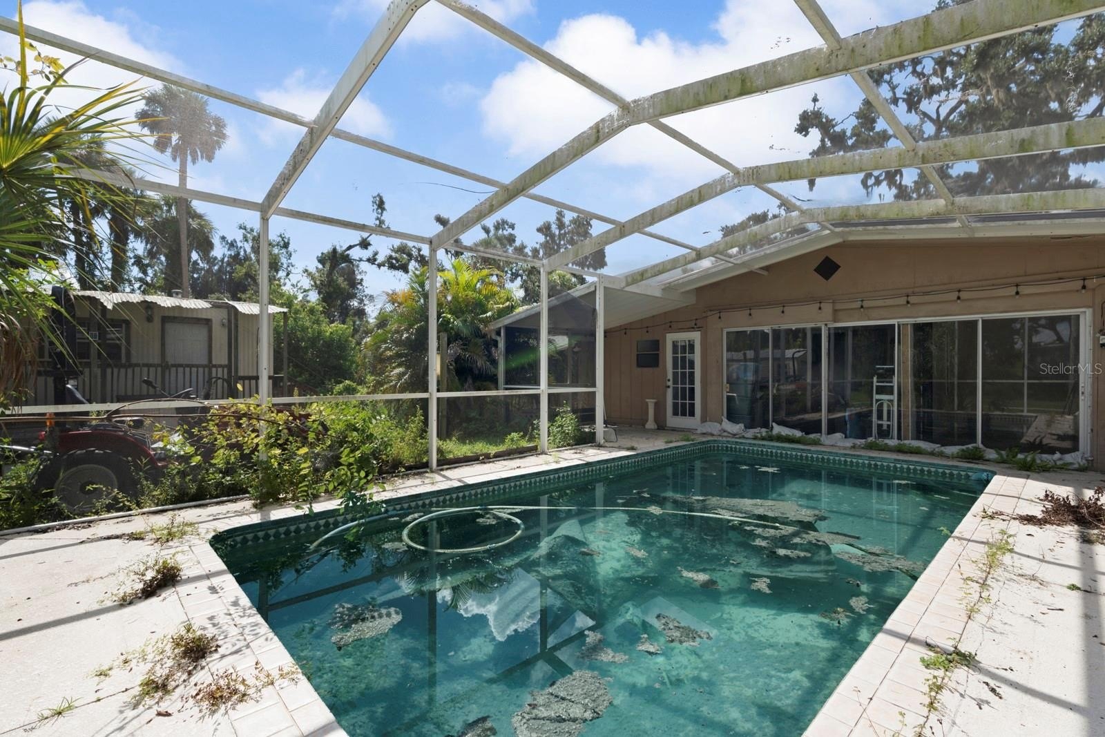 This charming 3-bedroom, 2-bath pool home offers both space and versatility, along with a studio guest house and two stand-alone buildings. The main home features an enclosed lanai transformed into a spacious family/Florida room overlooking the screened pool, plus an additional bedroom and bath. Major updates include a roof replaced in 2022, a 2-year-old A/C system, a new septic system in 2024, and a water pump replaced in 2025. With some TLC, this property could truly shine!