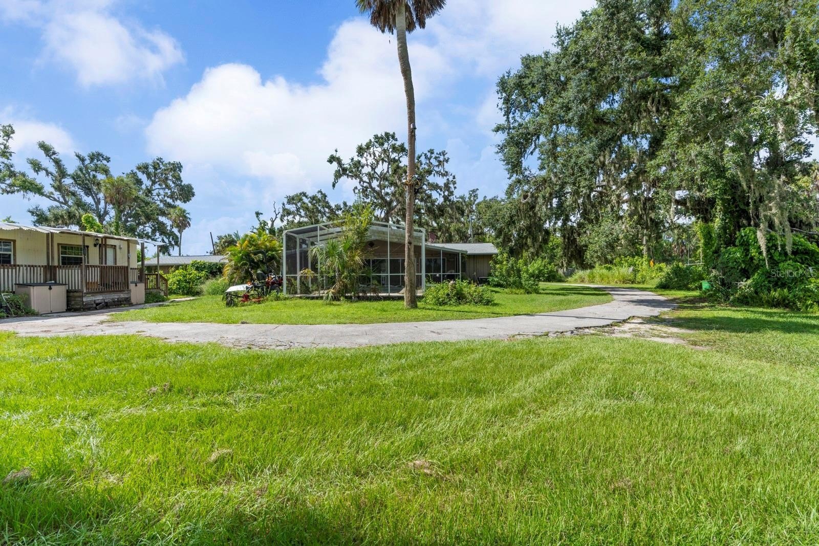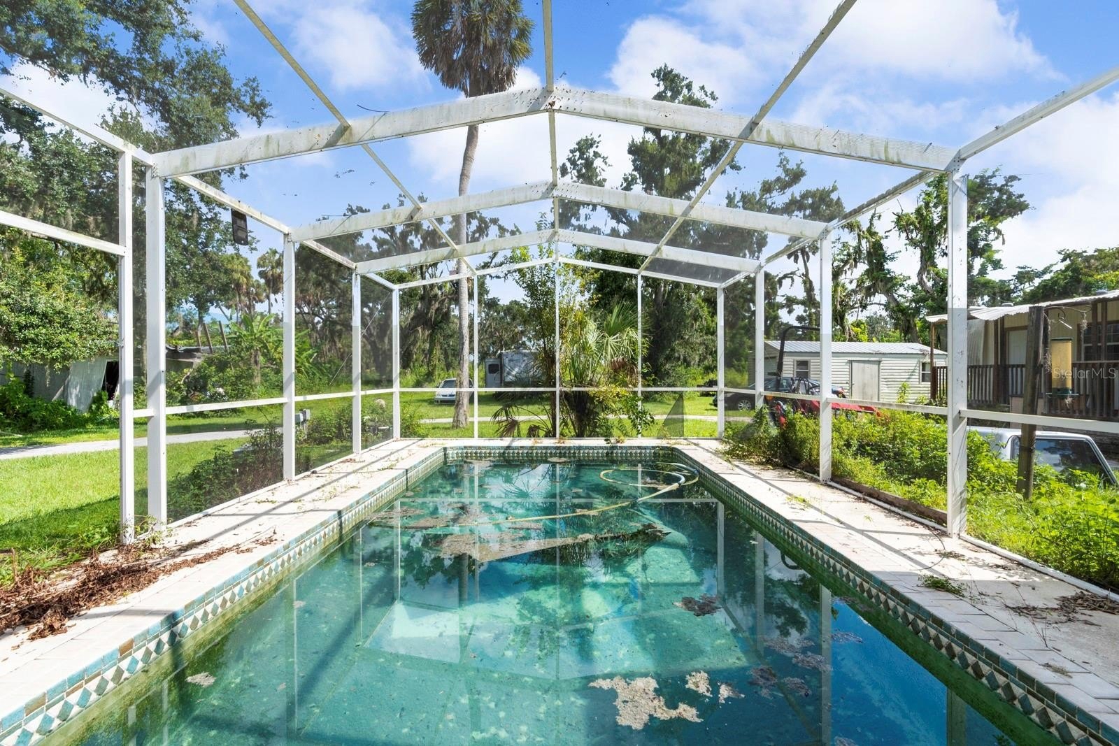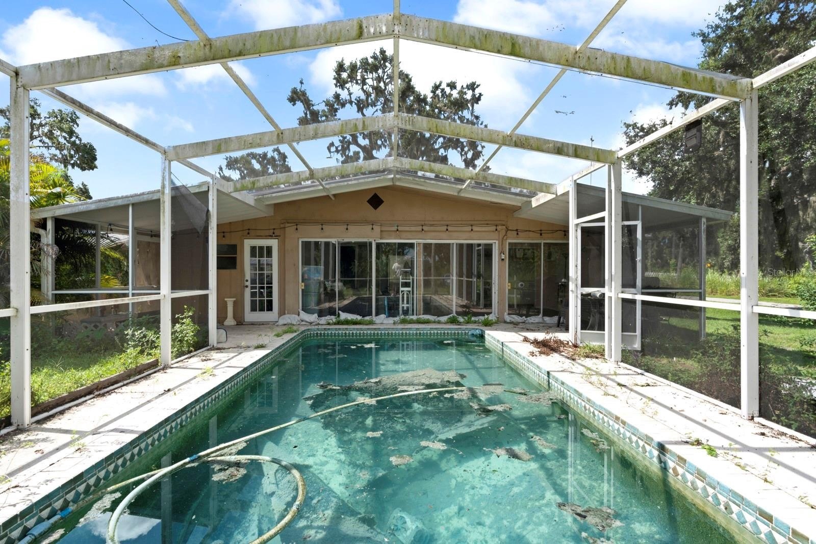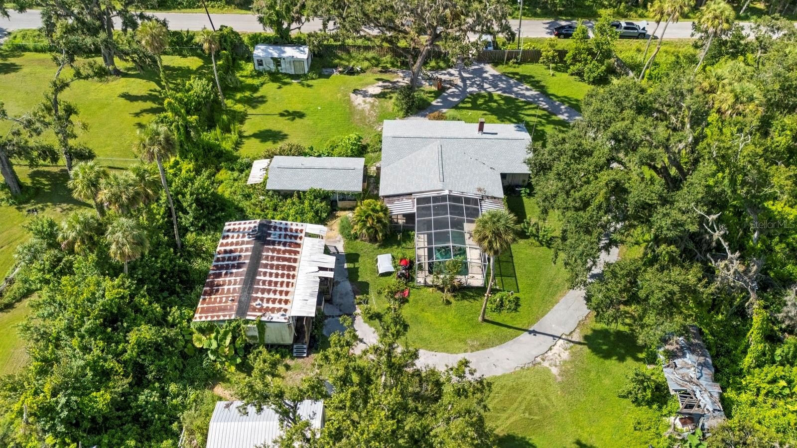 This charming 3-bedroom, 2-bath pool home offers both space and versatility, along with a studio guest house and two stand-alone buildings. The main home features an enclosed lanai transformed into a spacious family/Florida room overlooking the screened pool, plus an additional bedroom and bath. Major updates include a roof replaced in 2022, a 2-year-old A/C system, a new septic system in 2024, and a water pump replaced in 2025. With some TLC, this property could truly shine!
