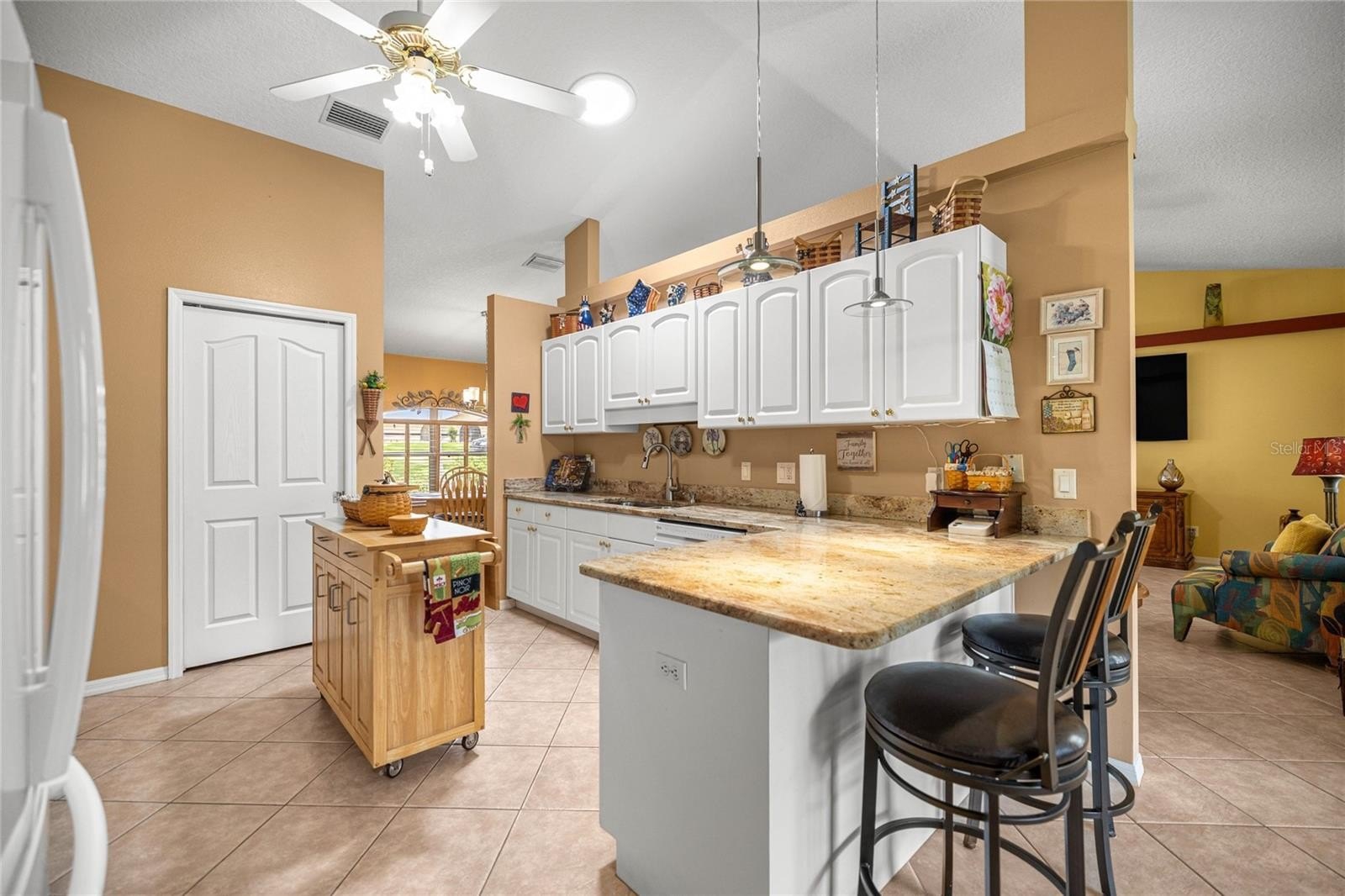 The modern bathrooms are equipped with contemporary fixtures, ensuring comfort for family and guests. The open concept living area flows seamlessly into the dining space and gourmet kitchen, which is outfitted with granite countertops and a new GE microwave (2020). A brand-new LG dishwasher also adds convenience to this chef's delight for cleanup. The solar tube lighting in the kitchen provides dim nighttime lighting for more security and convenience.
