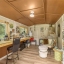 Step into your backyard oasis, complete with a sparkling swimming pool, updated lanai ceiling fan, LED lighting around pool deck and two multli color led lights in ceiling of the lanai. The surrounding patio is perfect for sunbathing or hosting summer barbecues with two speakers on the lania for your music listing pleasure. Pool was resurfaced, sealed and updated with travertine tile and pavers in 2024 Adding to this unique property is a charming Lady Lair/She Shed, offering 160 sq ft of dedicated space for relaxation or creativity, featuring built-in shelving and a cozy porch area.