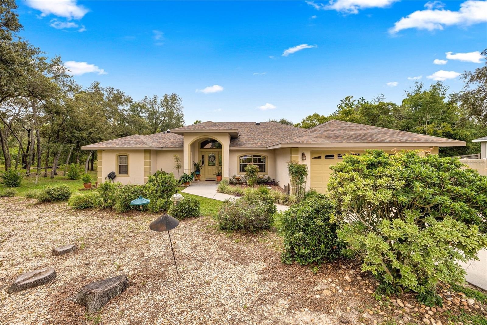 The beautifully manicured gardens enhance the outdoor experience, and the property is conveniently located near local shops, parks, and schools, with easy access to the Suncoast Parkway. Moreover, a ½ acre lot is available for purchase adjacent to this home, cleared and ready to provide additional privacy.