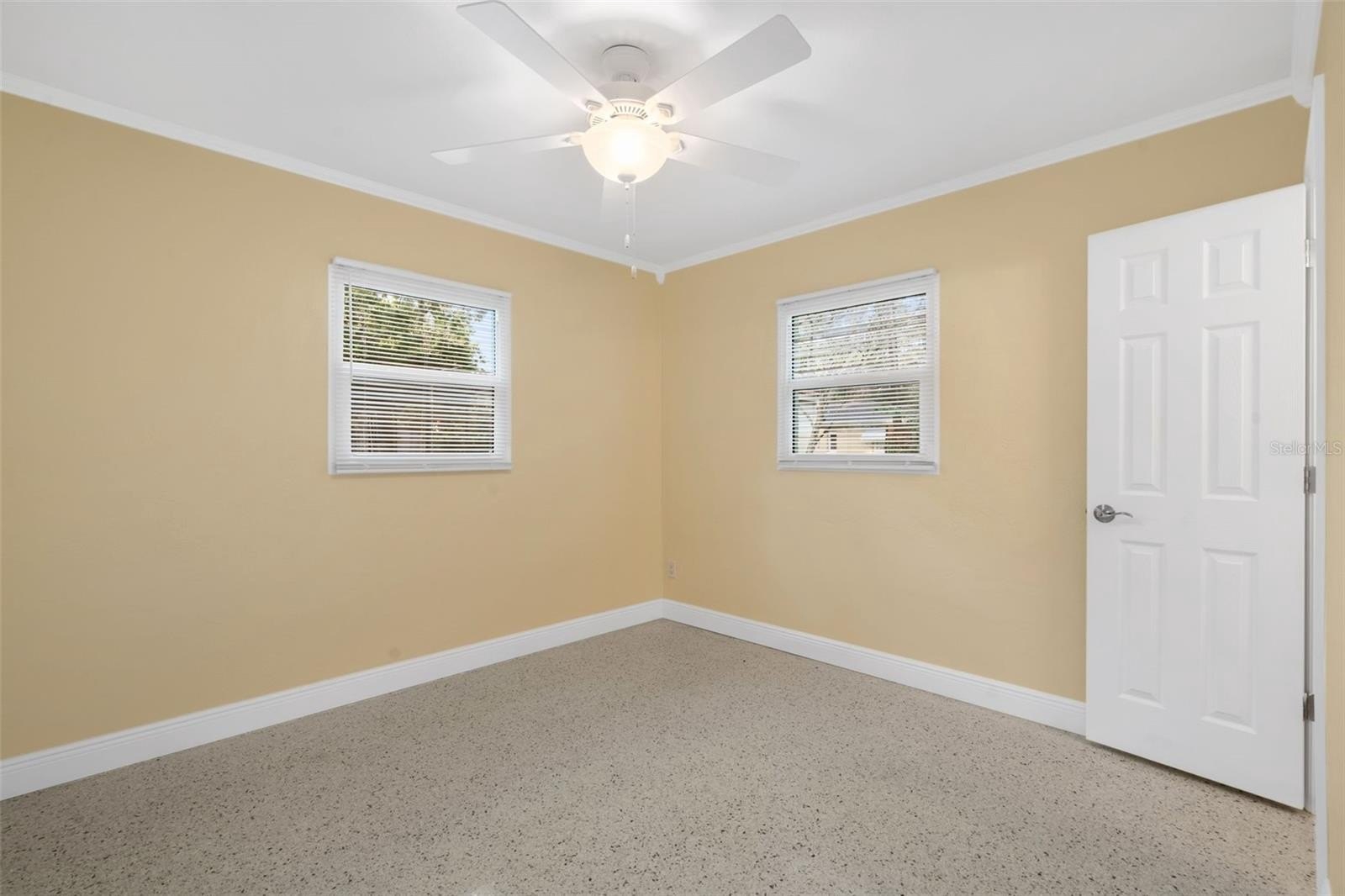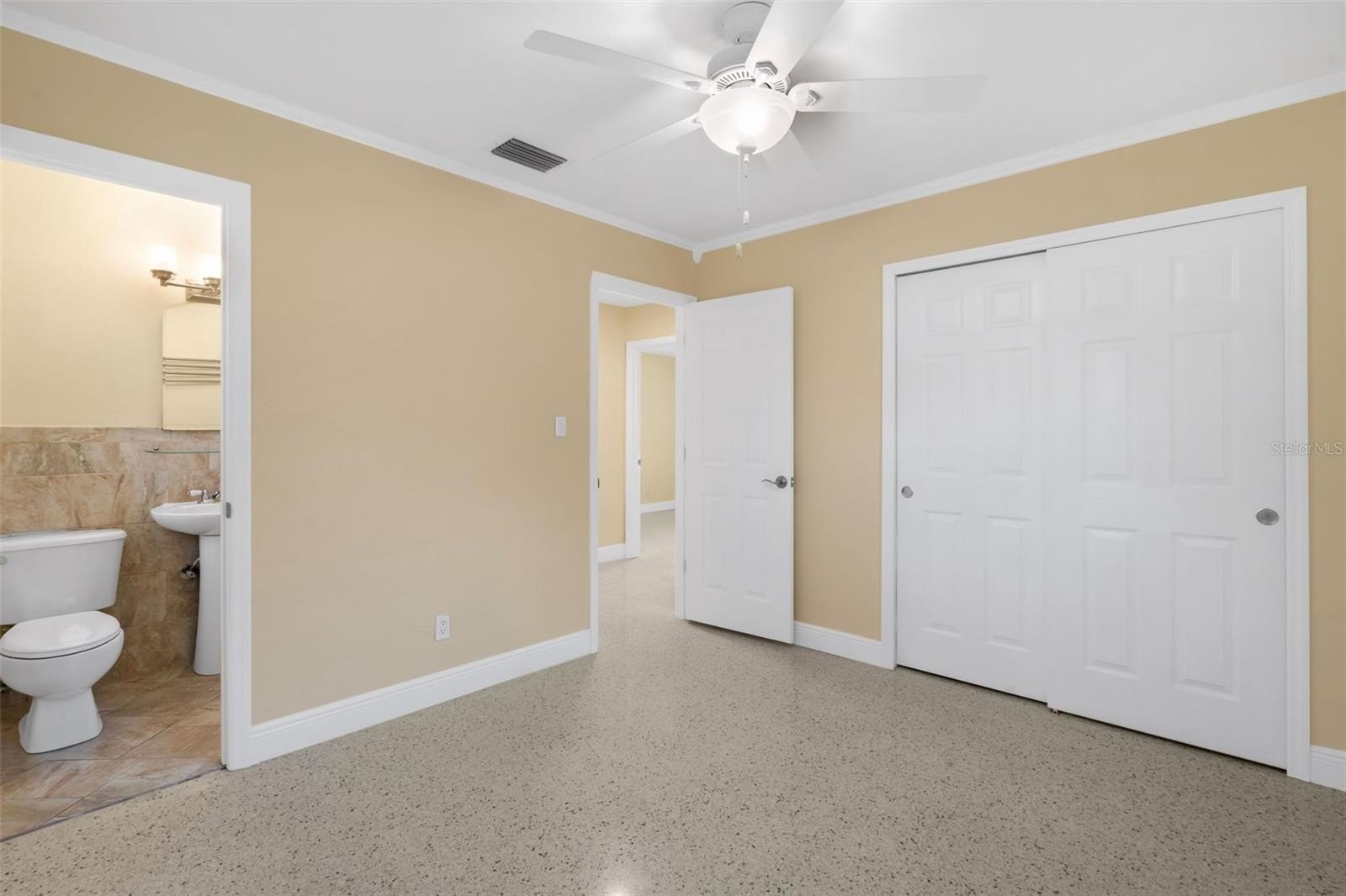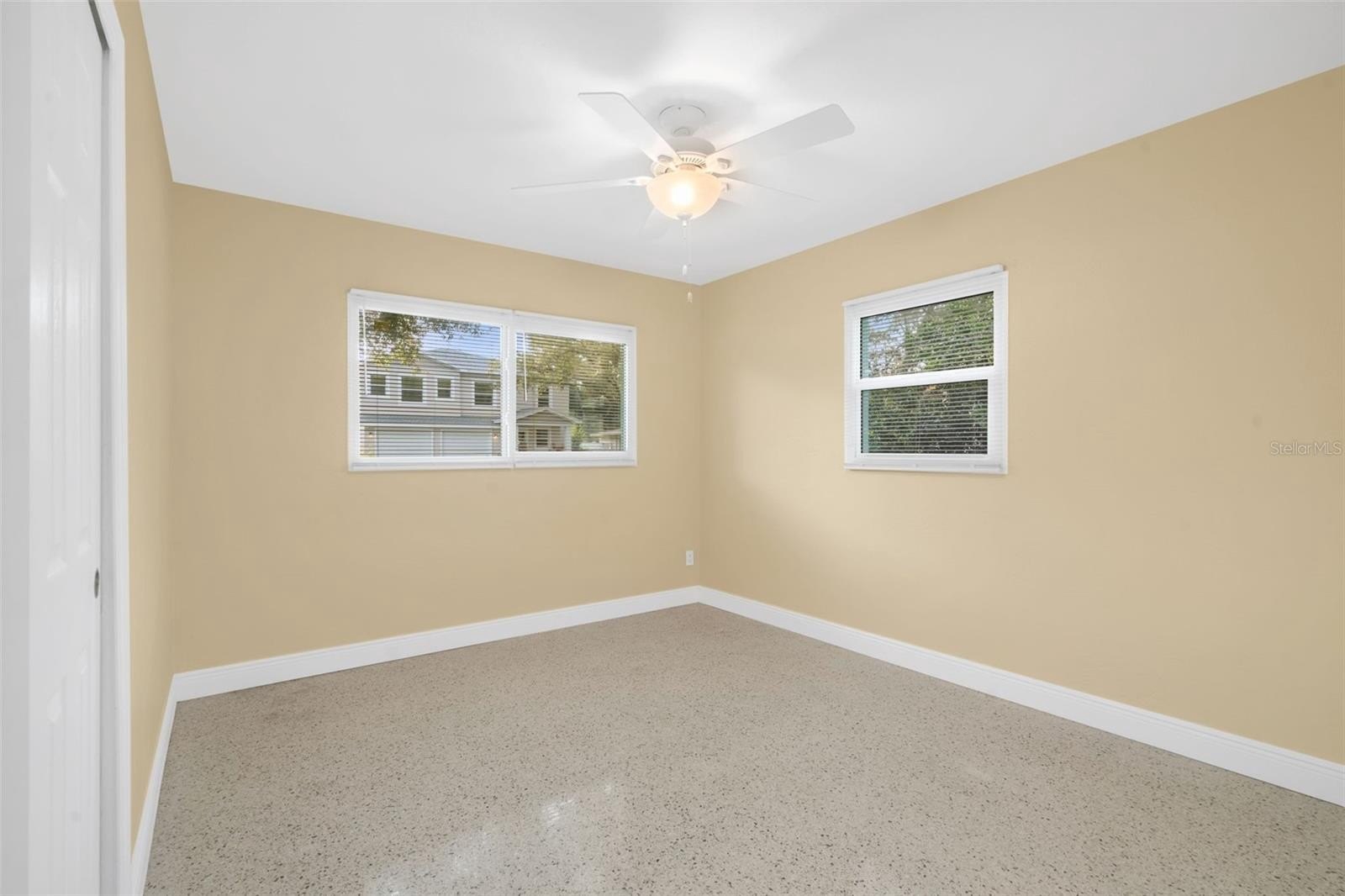 The home features a customized kitchen with brand-new stainless steel appliances and quartz countertops, hurricane-impact windows and slider, and restored terrazzo flooring accented by elegant 5-inch baseboards. Fresh paint, new doors throughout, all-new ductwork, and a brand-new driveway add to the appeal, giving the home a fresh, like-new feel.