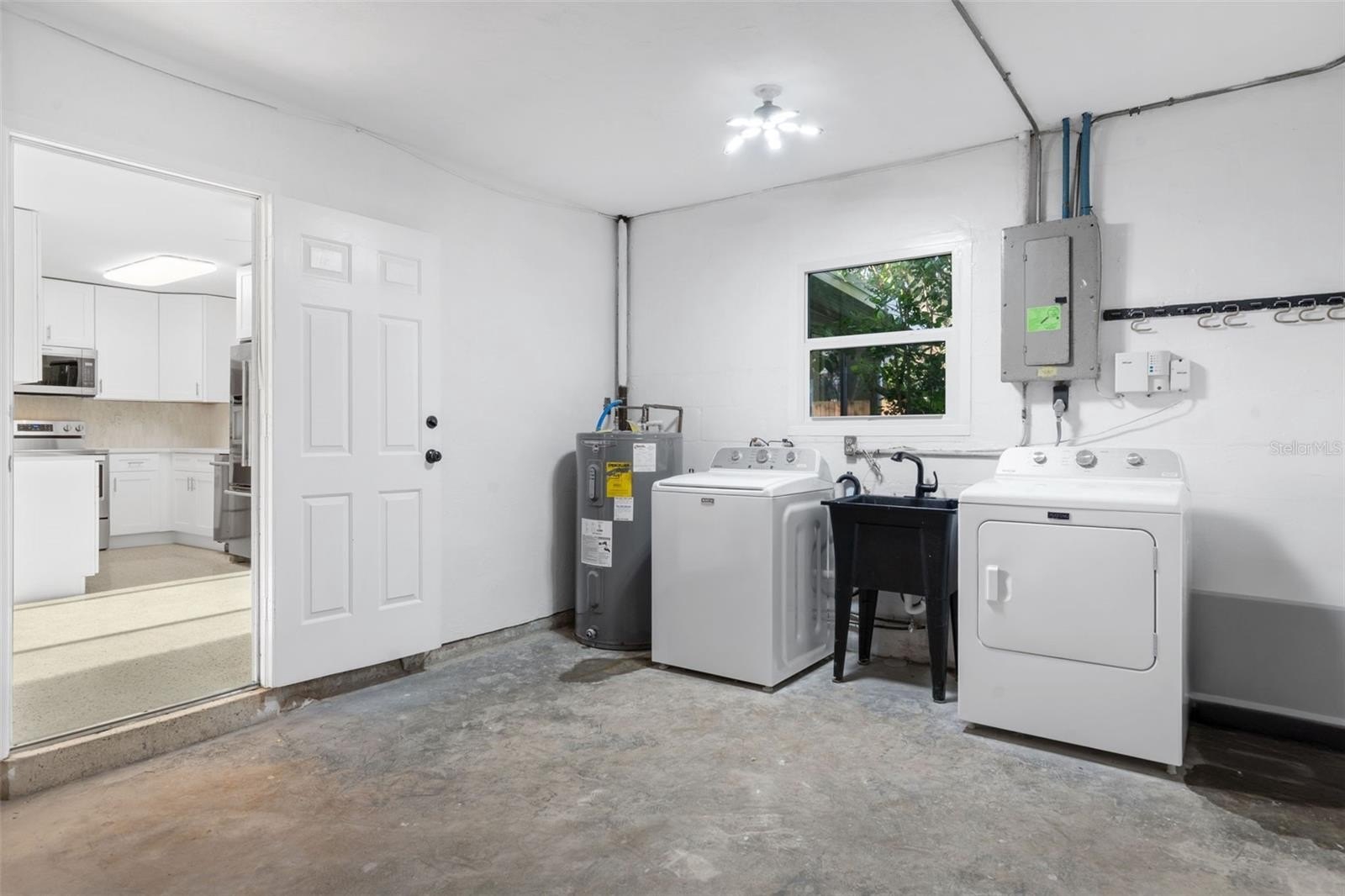 Inside, you’ll enjoy an open living room that flows easily into a screened lanai overlooking the backyard, perfect for entertaining or relaxing outdoors. The oversized one-car garage includes a laundry area with washer and dryer hookups, while the covered carport leads directly to the front porch for easy access.