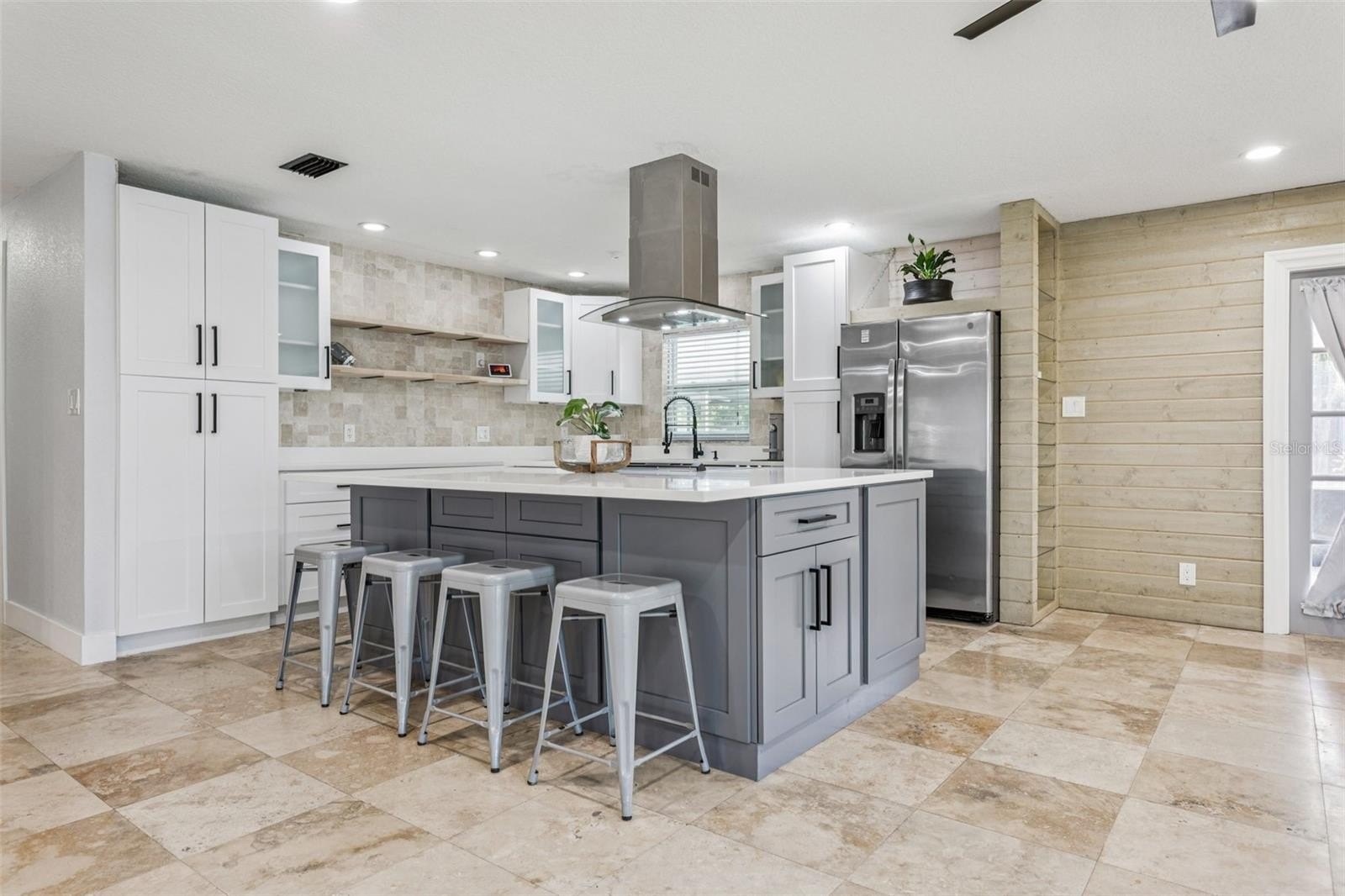 One or more photo(s) has been virtually staged. Don't miss out on this Gorgeous newly renovated and updated 4 bedroom, 3 bath, WOW.. Two Primary Bedrooms. This stunning and entertaining pool home at just under an acre with large beautiful trees, sits quietly and beautifully with NO HOA fees/restrictions and endless entertainment possibilities. Extended driveway with lots of clean parking. Get Ready! Let's start with wall to wall tile throughout the entire living area of the home. This home boasts two primary bedrooms with full bathrooms, two additional bedrooms and a large bonus room for a pool table, office or game room. Oversized two car garage. The main high ceiling primary bedroom is a large suite with double entry, large walk in closet with organizing design, your own wet bar with cabinets, large bathroom with a gorgeous custom double sink vanity and very large shower with additional closet inside the bathroom and it's very own a/c unit for this suite, not to mention the double glass framed doors leading out onto the pool lanai. Upgraded beautiful bathrooms throughout. Beautiful great room connecting to an exceptional kitchen with all new cabinets, large cooking and dining island all covered with quartz countertops and a window overlooking pool and back yard entertainment. From the dining area leading out of the huge great room are double glass framed doors onto the screened pool Lanai featuring stone pavers, large outdoor grilling and full sink area, large granite counter tops with granite top high bar for the distance and entertainment area. Additional lounge and entertainment area outside of the lanai with stone pavers continued under a large pergola. All still within a private large back yard. Oversized shed offers plenty of storage area. Also has a stone paver pad ready for your travel trailer or small RV. Let's do this!