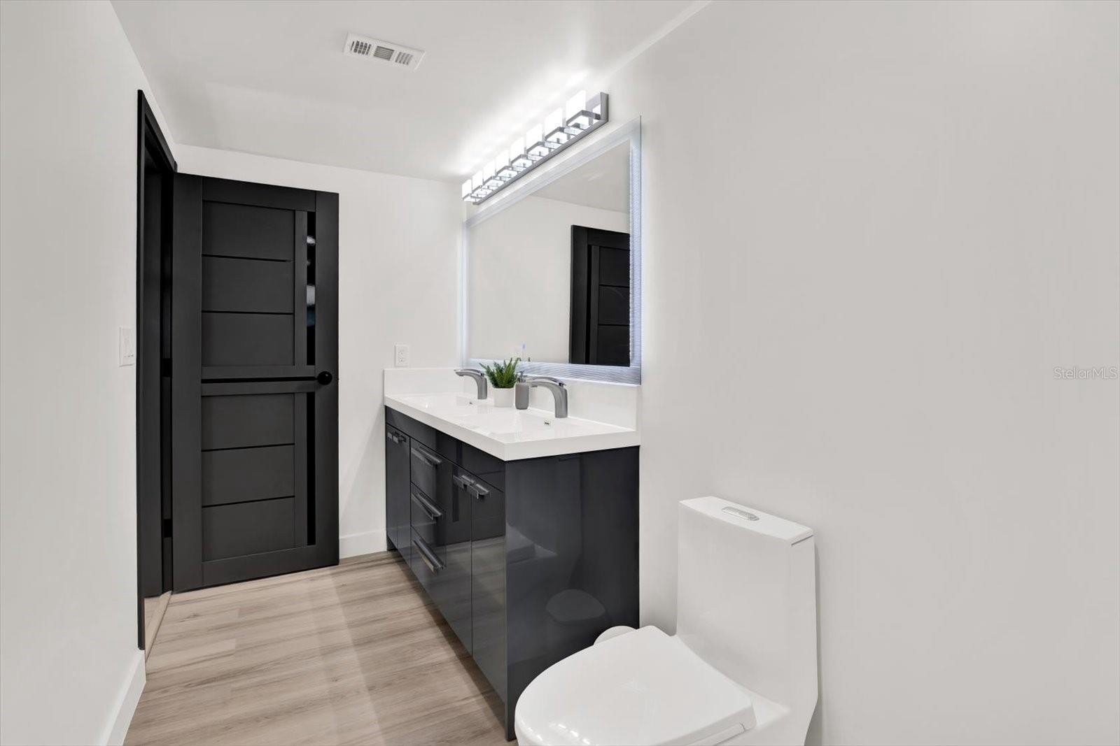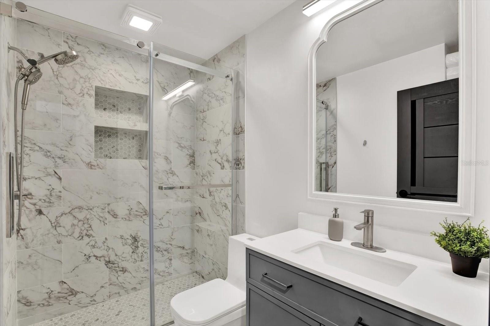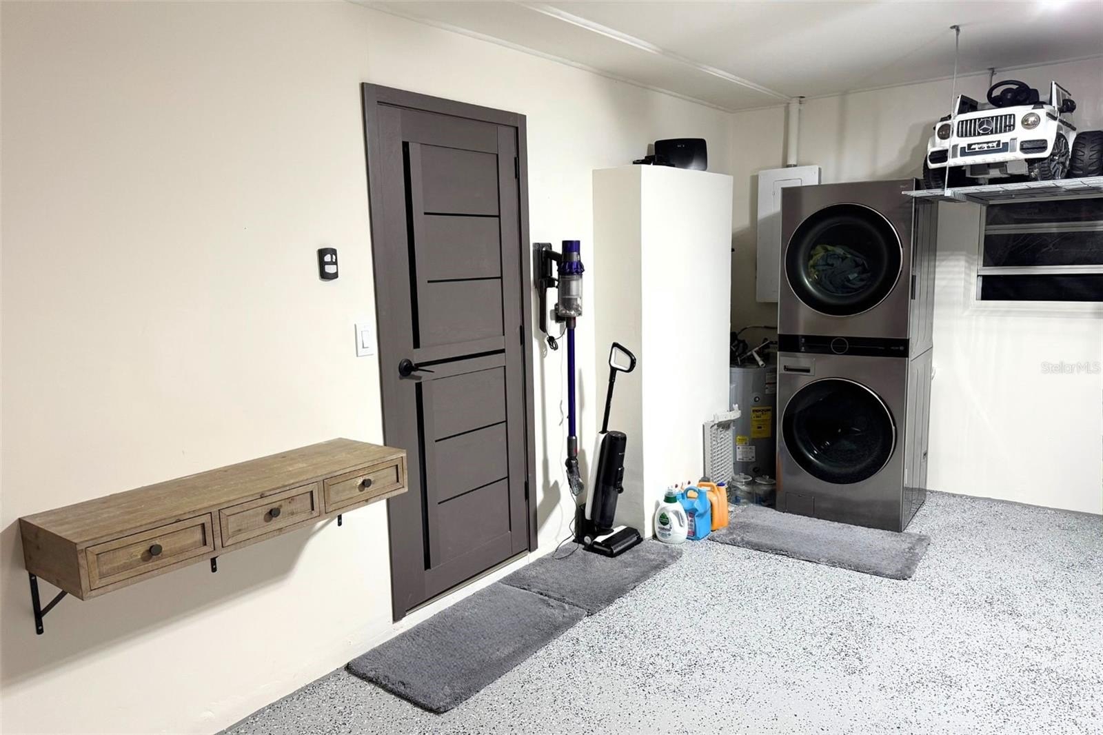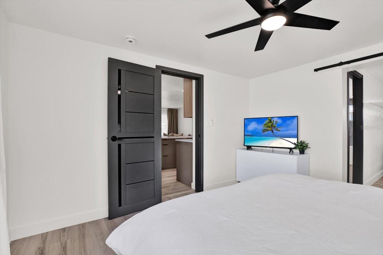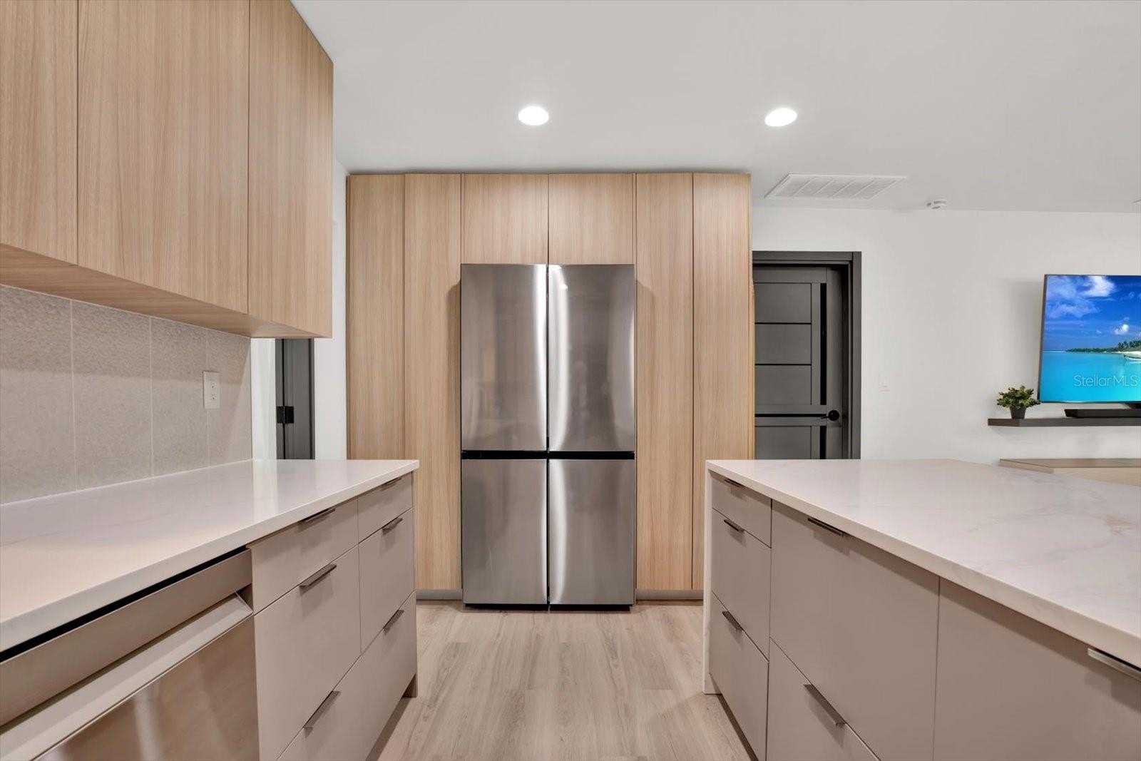 Welcome to your completely renovated 3-bedroom, 2-bathroom home with a 1-car garage, situated in a prime Largo neighborhood with NO HOA and located in a NON-FLOOD zone. This property has been meticulously upgraded with a focus on modern design and high-end finishes. The gourmet kitchen is a chef's dream, featuring European-style soft-close cabinets, Samsung Bespoke appliances, a stunning quartz waterfall countertop, and a stylish tile backsplash. Indulge in spa-like experiences in the luxurious bathrooms, boasting granite vanities, LED mirrors, custom tiled showers with frameless glass doors, and European-style dual flush toilets. Throughout the home, you'll find luxurious laminate flooring and smooth, modern walls, achieved by removing popcorn ceilings and professionally leveling and painting the surfaces. This home is smart home-ready, equipped with an EV charger in the garage, a Nest thermostat, and a fingerprint lock on the exterior side door for added security and convenience. Step outside to discover your outdoor oasis, transformed with new landscaping including palm trees, and a freshly painted exterior using Benjamin Moore paint. Enjoy the convenience of an extended driveway, artificial grass accents, and a new wooden fence for privacy. Experience peace of mind with a new roof flapper, updated electrical with GFCI outlets, new plumbing, and efficient LED lighting throughout. Perfectly positioned just a quick drive from beaches, parks, local shops, and dining, this home offers easy, low-maintenance Florida living in a great location. Words hardly express the extent of this home's transformation. To truly appreciate its beauty and comfort, a visit is essential! Don't miss the chance to own this exceptional property!