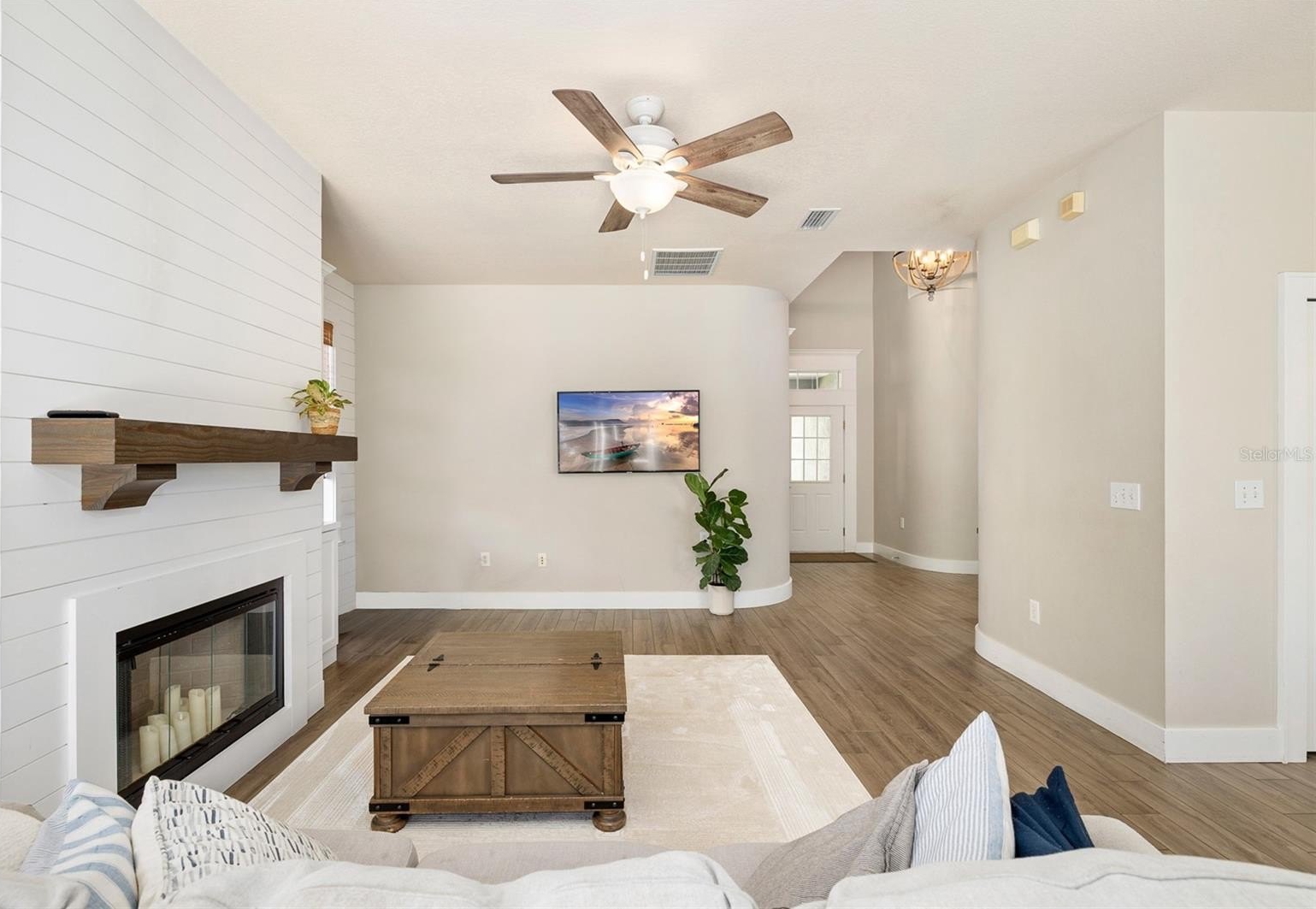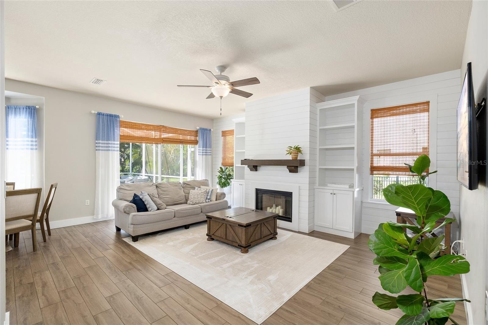 YOUR DREAM HOME AWAITS! PRIVATE POOL & SPA! Located in the desirable FishHawk Ranch! This STUNNING home features 4 bedrooms, 2.5 bathrooms, and a 2- car garage. Upon arrival, the home has great curb-appeal with pavers along the driveway and a covered front porch. Step inside, into a grand foyer with HIGH CEILINGS AND WOOD-LOOK TILE THROUGHOUT, and a separately located DOWNSTAIRS PRIVATE OFFICE! Past the staircase, there is a formal dining room, which can easily be utilized as flex space if desired. The remodeled kitchen has many appealing features, including a CENTER ISLAND WITH GLASS PENDANT LIGHTS, GRANITE COUNTERTOPS, BACKSPLASH, MODERN STAINLESS-STEEL APPLIANCES WITH A GAS COOKTOP & BUILT-IN OVEN, FARMHOUSE SINK, AND A WALK-IN PANTRY! The kitchen overlooks the family room, which features a WOODBURNING FIREPLACE WITH CUSTOM SHELVING AND A SHIPLAP WALL! DOWNSTAIRS POOL BATH WITH SHIPLAP! Upstairs, you will find the well-sized bedrooms and full bathrooms. The Owner's suite has everything you could ever want, including TWO WALK-IN CLOSETS, BUILT-IN SHELVING, AND A REMODELED ENSUITE BATHROOM! The bathroom features a DOUBLE SINK VANITY WITH GRANITE COUNTERTOPS, GARDEN TUB, FULLY TILED WALK-IN SHOWER, FRAMELESS GLASS SHOWER DOOR, AND MORE! Step out back, into your own private oasis! FULLY SCREENED-IN LANAI AND PRIVATE POOL, along with the SPACIOUS FULLY FENCED YARD, with lush landscaping that has been well-maintained! ** New HVAC & Furnace with transferable warranties, Pool Pump replaced in 2022, Water Softener and Kitchen Reverse Osmosis System replaced since ownership, Freshly Painted Lanai which has been Re-screened, Freshly Painted Trim, and 2021 Roof** This home has so much to offer, while being in a wonderful community FILLED with scenic ponds and trails, resort style amenities, clubhouses, parks and playgrounds, and zoned for ALL A-rated schools! Don't wait! Call today to schedule a private viewing!