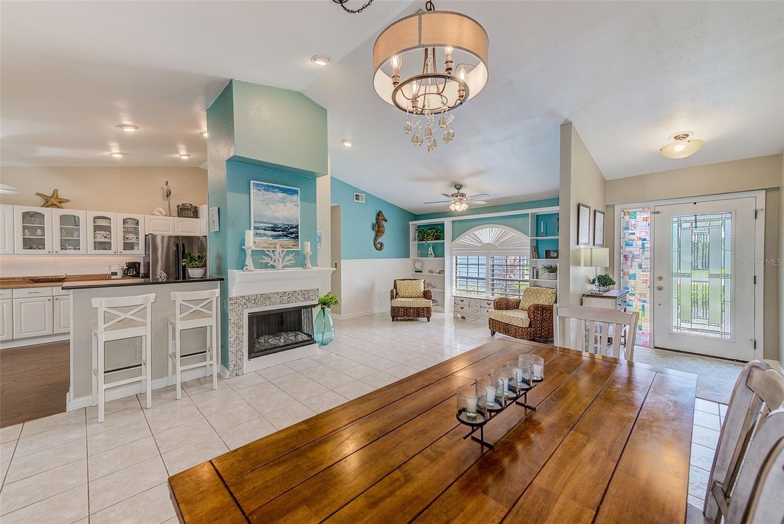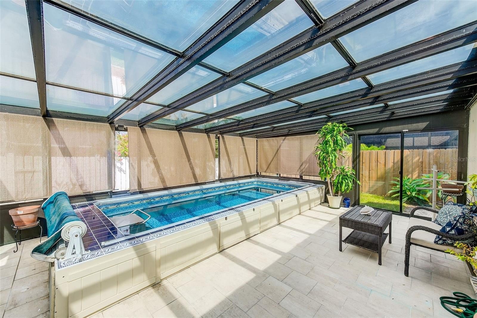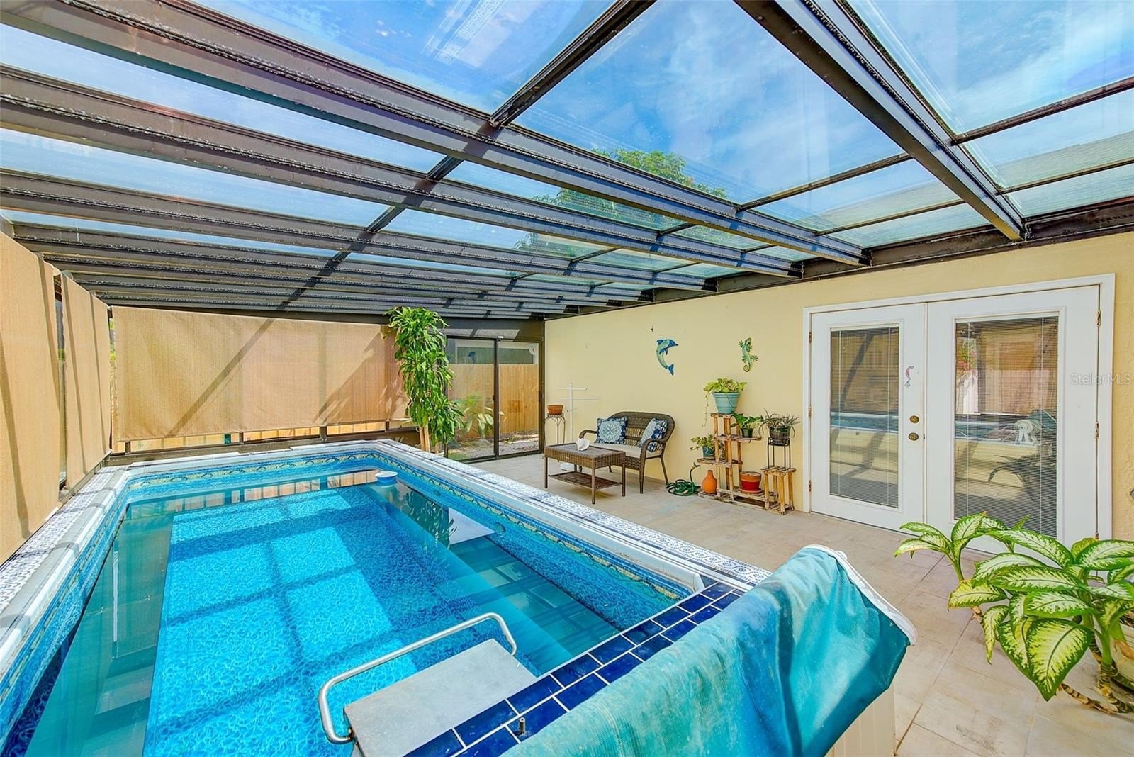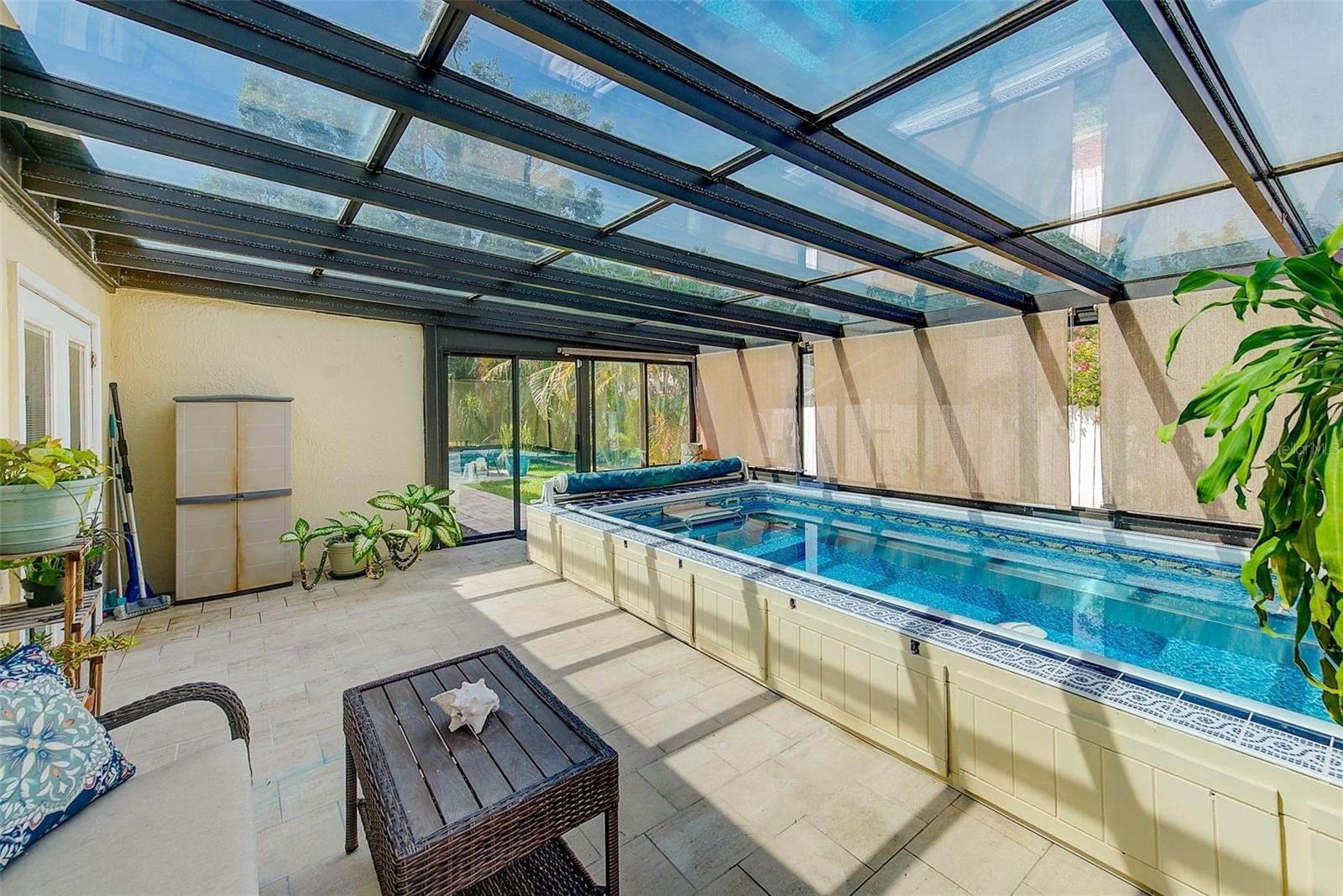 Welcome to this beautifully maintained and thoughtfully updated 3 bedroom, 2 bath home, located in the desirable community of Shadow Pines. The open concept layout includes vaulted ceilings, a cozy gas fireplace, and plantation shutters that add charm and character. At the heart of the home, the gourmet kitchen impresses with stainless steel appliances, a gas range, and refurbished butcher block countertops—ideal for any home chef. The split bedroom design provides privacy, with a spacious primary suite featuring double walk-in closets and a updated bath complete with dual vanities and a large walk-in shower. Practicality meets ease with tile flooring throughout, indoor laundry room with newer front-loading washer and dryer, and an instant gas water heater. The outdoor space is truly a retreat. French doors open to a newly paved, covered deck with a natural gas fire pit, creating the perfect setting for gatherings. The fully fenced backyard is private and lushly landscaped with tropical palms. Enjoy some extra storage with an outdoor shed. An enclosed glass room extends year-round living space and houses a heated endless pool swim spa for relaxation. The oversized two-car garage offers a workbench and plenty of storage. Added bonus: wireless alarm system - full perimeter with all doors/window sensors and smoke/carbon monoxide detector integrated into system. Shadow Pines is a wonderfully kept neighborhood, close to shopping, schools, parks, and the area’s renowned beaches—without the need for flood insurance. Don’t miss the chance to make this move-in-ready gem your next home. Schedule a private tour today!