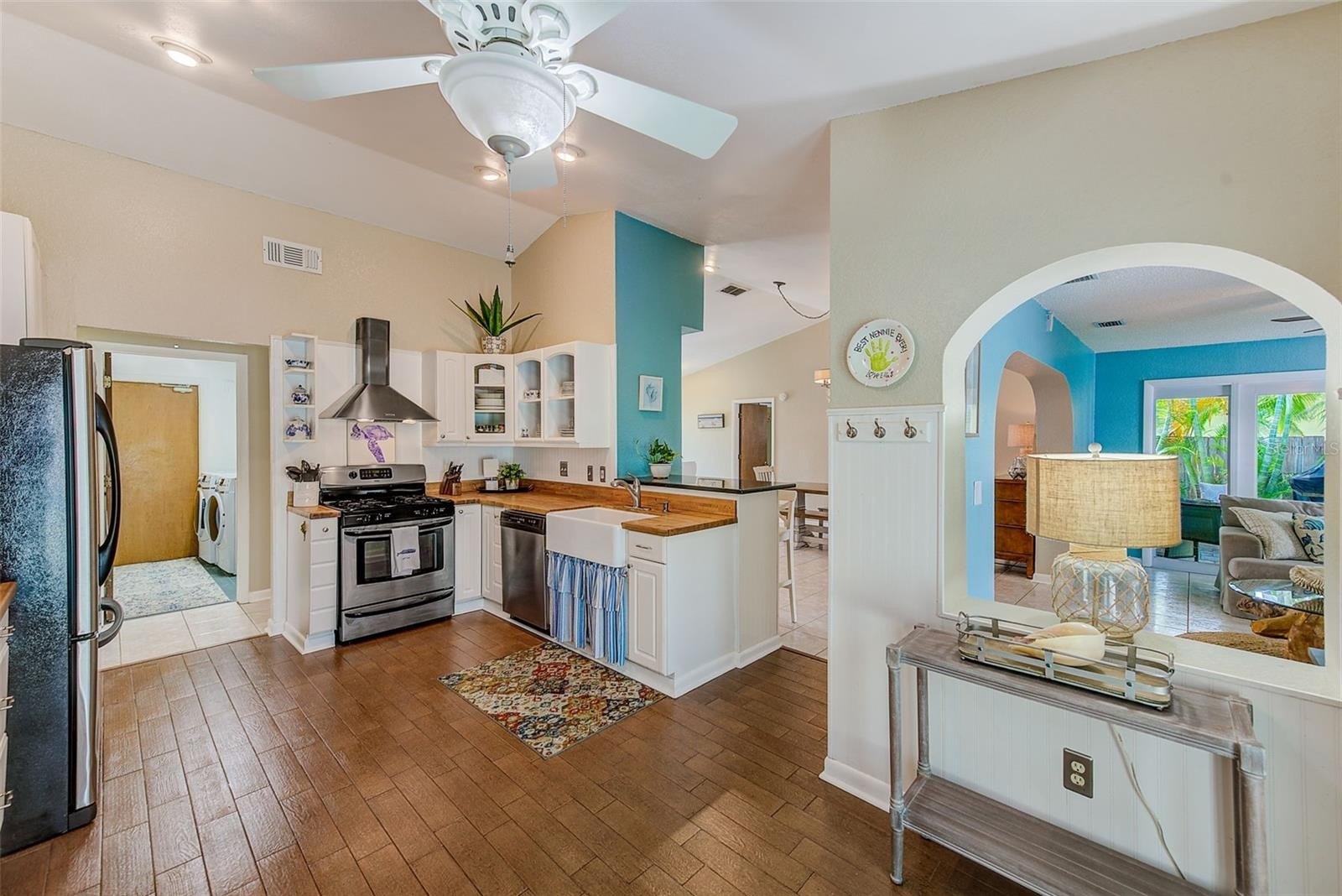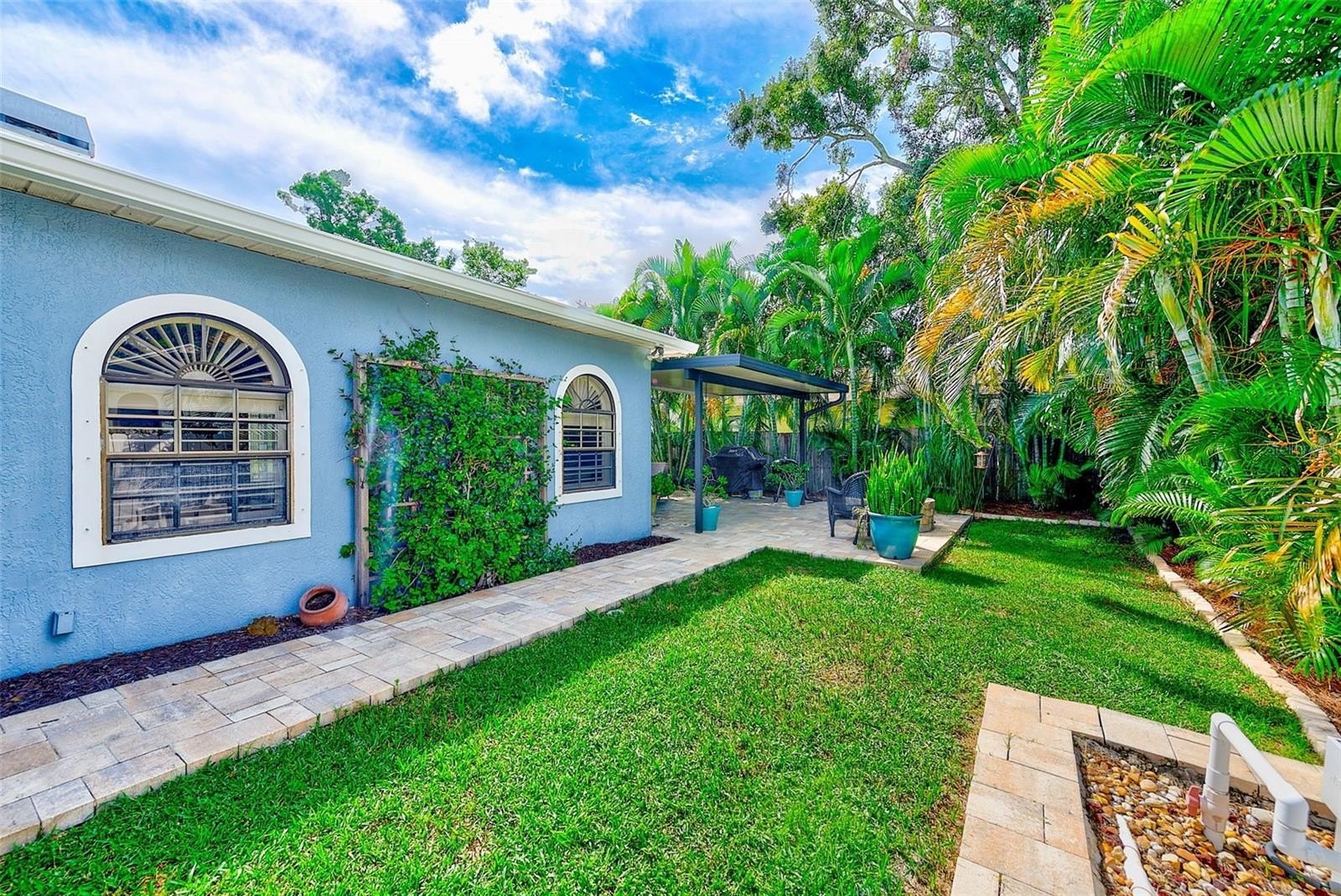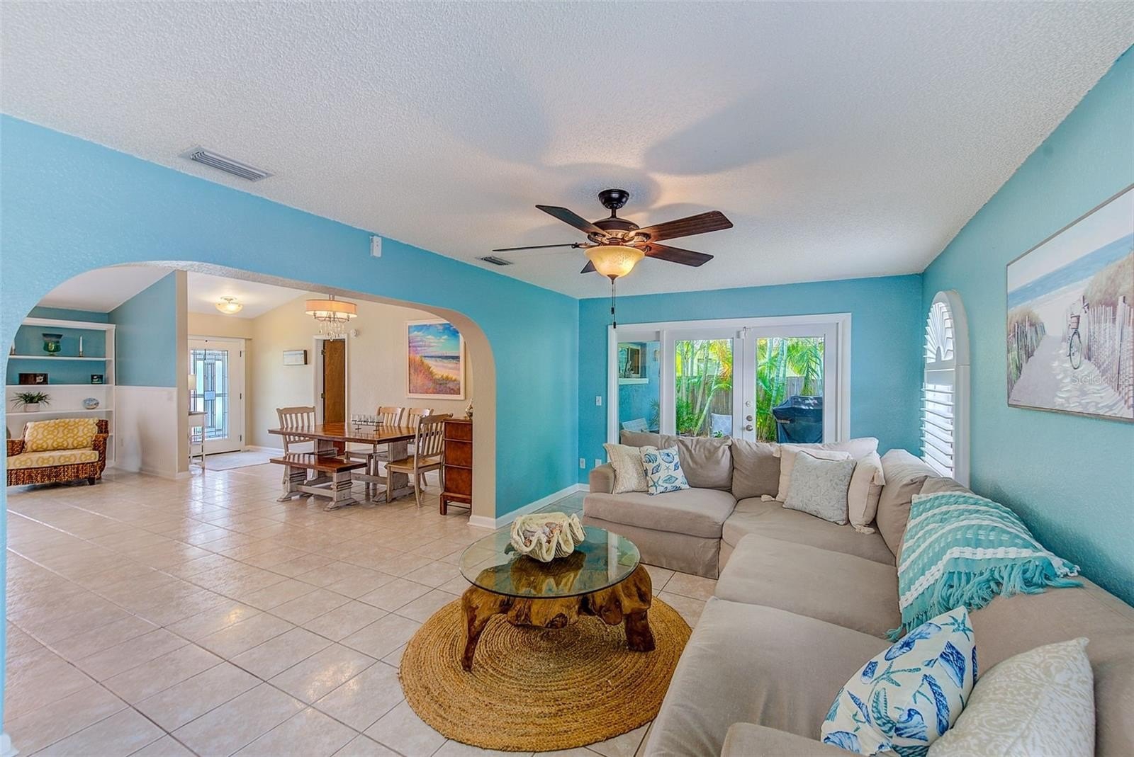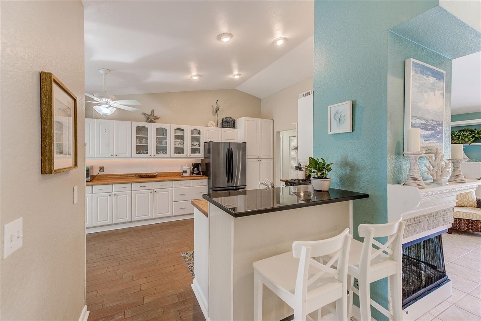 Welcome to this beautifully maintained and thoughtfully updated 3 bedroom, 2 bath home, located in the desirable community of Shadow Pines. The open concept layout includes vaulted ceilings, a cozy gas fireplace, and plantation shutters that add charm and character. At the heart of the home, the gourmet kitchen impresses with stainless steel appliances, a gas range, and refurbished butcher block countertops—ideal for any home chef. The split bedroom design provides privacy, with a spacious primary suite featuring double walk-in closets and a updated bath complete with dual vanities and a large walk-in shower. Practicality meets ease with tile flooring throughout, indoor laundry room with newer front-loading washer and dryer, and an instant gas water heater. The outdoor space is truly a retreat. French doors open to a newly paved, covered deck with a natural gas fire pit, creating the perfect setting for gatherings. The fully fenced backyard is private and lushly landscaped with tropical palms. Enjoy some extra storage with an outdoor shed. An enclosed glass room extends year-round living space and houses a heated endless pool swim spa for relaxation. The oversized two-car garage offers a workbench and plenty of storage. Added bonus: wireless alarm system - full perimeter with all doors/window sensors and smoke/carbon monoxide detector integrated into system. Shadow Pines is a wonderfully kept neighborhood, close to shopping, schools, parks, and the area’s renowned beaches—without the need for flood insurance. Don’t miss the chance to make this move-in-ready gem your next home. Schedule a private tour today!
