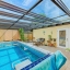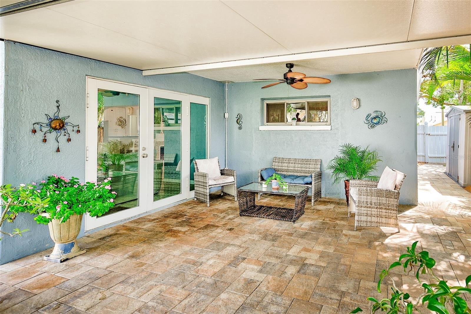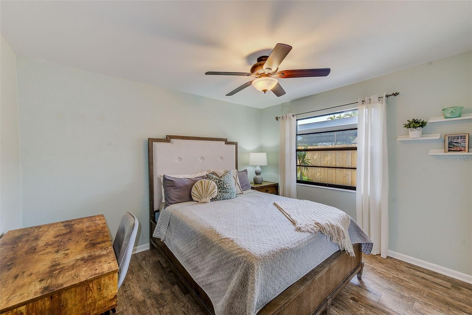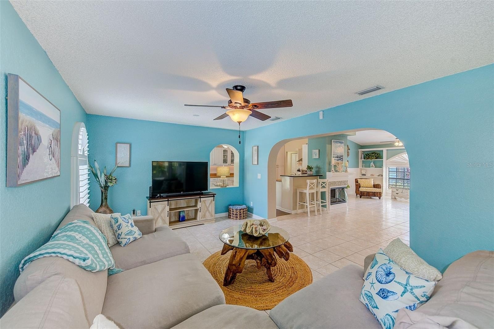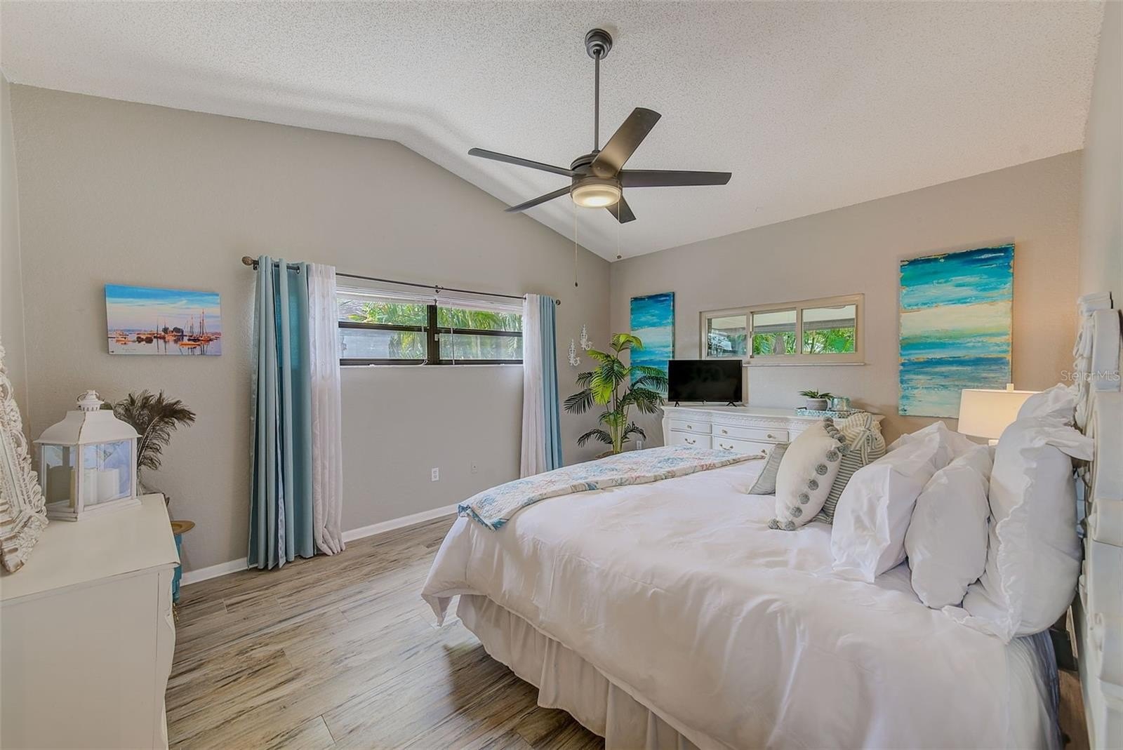 Welcome to this beautifully maintained and thoughtfully updated 3 bedroom, 2 bath home, located in the desirable community of Shadow Pines. The open concept layout includes vaulted ceilings, a cozy gas fireplace, and plantation shutters that add charm and character. At the heart of the home, the gourmet kitchen impresses with stainless steel appliances, a gas range, and refurbished butcher block countertops—ideal for any home chef. The split bedroom design provides privacy, with a spacious primary suite featuring double walk-in closets and a updated bath complete with dual vanities and a large walk-in shower. Practicality meets ease with tile flooring throughout, indoor laundry room with newer front-loading washer and dryer, and an instant gas water heater. The outdoor space is truly a retreat. French doors open to a newly paved, covered deck with a natural gas fire pit, creating the perfect setting for gatherings. The fully fenced backyard is private and lushly landscaped with tropical palms. Enjoy some extra storage with an outdoor shed. An enclosed glass room extends year-round living space and houses a heated endless pool swim spa for relaxation. The oversized two-car garage offers a workbench and plenty of storage. Added bonus: wireless alarm system - full perimeter with all doors/window sensors and smoke/carbon monoxide detector integrated into system. Shadow Pines is a wonderfully kept neighborhood, close to shopping, schools, parks, and the area’s renowned beaches—without the need for flood insurance. Don’t miss the chance to make this move-in-ready gem your next home. Schedule a private tour today!