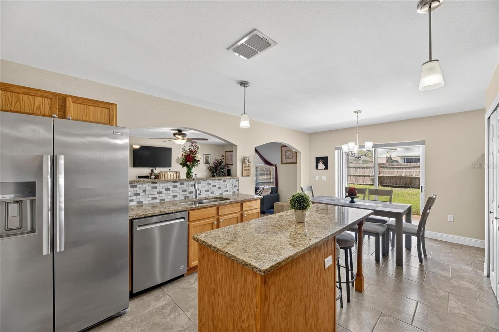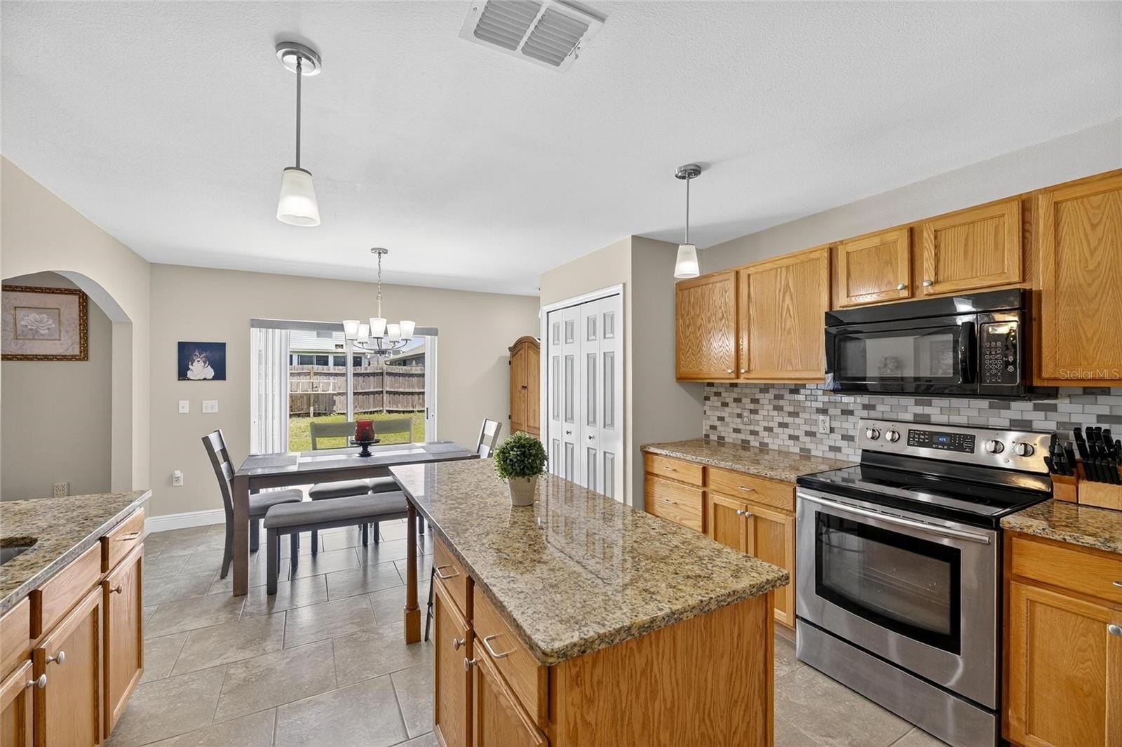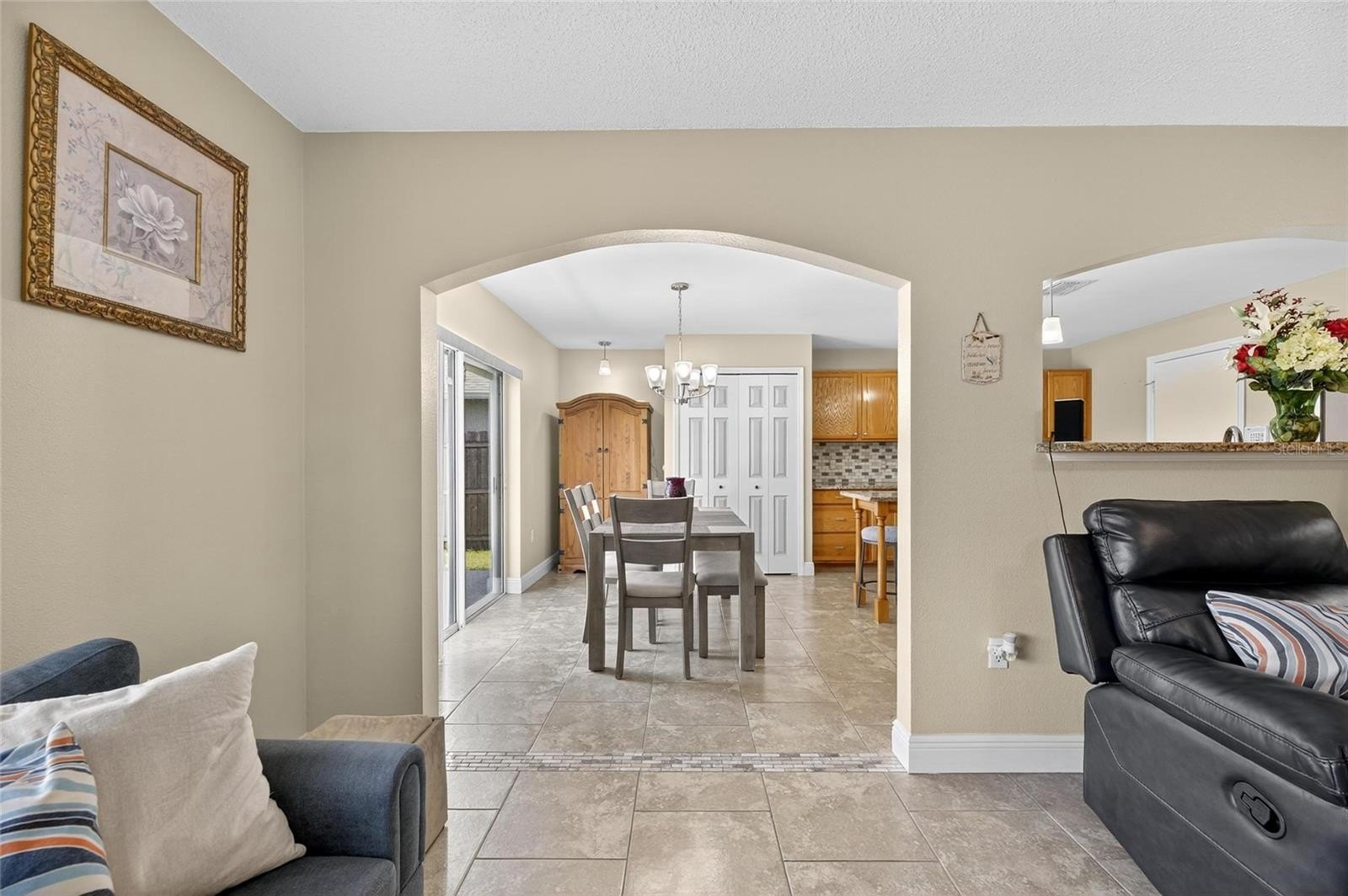 Welcome to 6510 Tabogi Trail in the sought after Chapel Pines community of Wesley Chapel! This beautifully updated 4 bedroom, 2.5 bathroom home offers 1,944 sq. ft. of living space designed for comfort and style. Step inside to find a spacious living room with tile floors, a ceiling fan, and a charming transom window, all open to the upgraded kitchen and dining area. The kitchen shines with oak cabinets, granite countertops, tile backsplash, stainless steel appliances, and a large pantry, plus a functional island with seating and deep drawers perfect for pots and appliances. The primary suite is a true retreat featuring vaulted ceilings, dual closets, and a renovated bathroom with stone counters, rain shower head, and modern finishes. Three additional bedrooms offer carpet, ceiling fans, and plenty of space for family, guests, or an office. Major upgrades include a 2022 roof, 2024 A/C, 2022 water softener, fresh 2025 interior paint, and renovated bathrooms. The smart garage door opener, generator-ready panel, gutters, pest control, and Brinks security system add peace of mind. Outdoor living is a breeze with a fully fenced yard with trees and the greenest of grass. The home also features a spacious garage with storage shelves and foam-insulated panels to keep things cool. Located in a friendly neighborhood with easy access to schools, shopping, and dining, and the Wesley Chapel indoor/outdoor sports complex and playground. This move-in-ready gem is waiting for its next owner. With minimal HOA fees and NO CDD this subdivision offers a well kept community feel with beautiful landscaping plus miles of sidewalks throughout. This is Wesley Chapel living at its best.