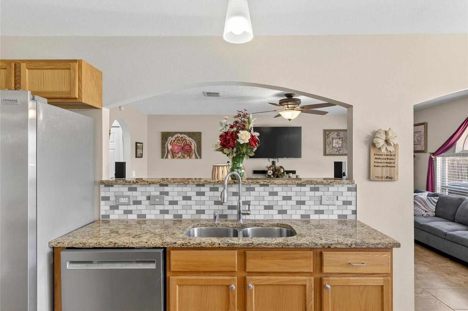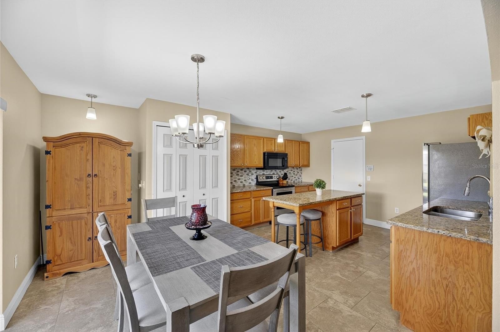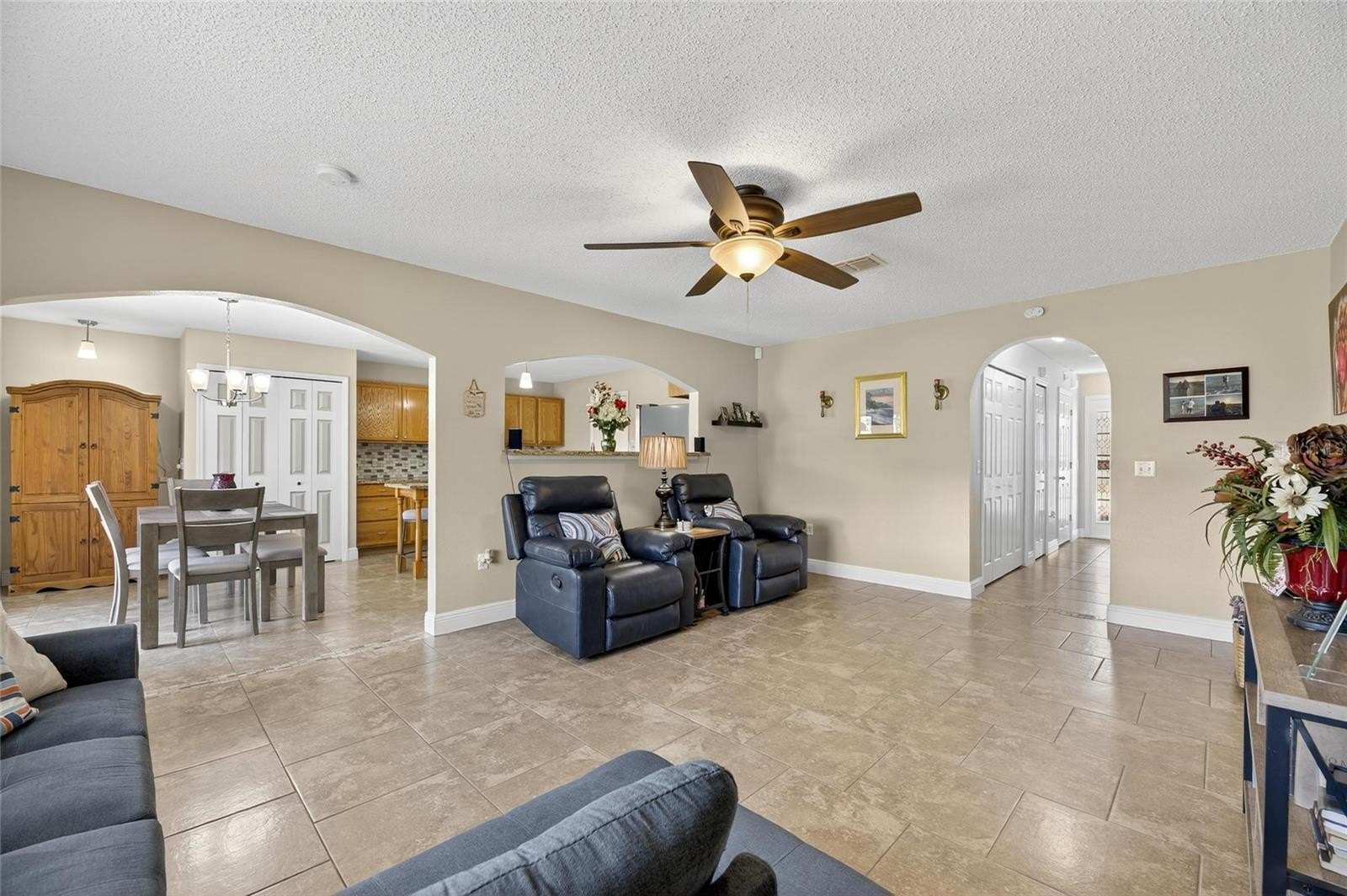 Welcome to 6510 Tabogi Trail in the sought after Chapel Pines community of Wesley Chapel! This beautifully updated 4 bedroom, 2.5 bathroom home offers 1,944 sq. ft. of living space designed for comfort and style. Step inside to find a spacious living room with tile floors, a ceiling fan, and a charming transom window, all open to the upgraded kitchen and dining area. The kitchen shines with oak cabinets, granite countertops, tile backsplash, stainless steel appliances, and a large pantry, plus a functional island with seating and deep drawers perfect for pots and appliances. The primary suite is a true retreat featuring vaulted ceilings, dual closets, and a renovated bathroom with stone counters, rain shower head, and modern finishes. Three additional bedrooms offer carpet, ceiling fans, and plenty of space for family, guests, or an office. Major upgrades include a 2022 roof, 2024 A/C, 2022 water softener, fresh 2025 interior paint, and renovated bathrooms. The smart garage door opener, generator-ready panel, gutters, pest control, and Brinks security system add peace of mind. Outdoor living is a breeze with a fully fenced yard with trees and the greenest of grass. The home also features a spacious garage with storage shelves and foam-insulated panels to keep things cool. Located in a friendly neighborhood with easy access to schools, shopping, and dining, and the Wesley Chapel indoor/outdoor sports complex and playground. This move-in-ready gem is waiting for its next owner. With minimal HOA fees and NO CDD this subdivision offers a well kept community feel with beautiful landscaping plus miles of sidewalks throughout. This is Wesley Chapel living at its best.