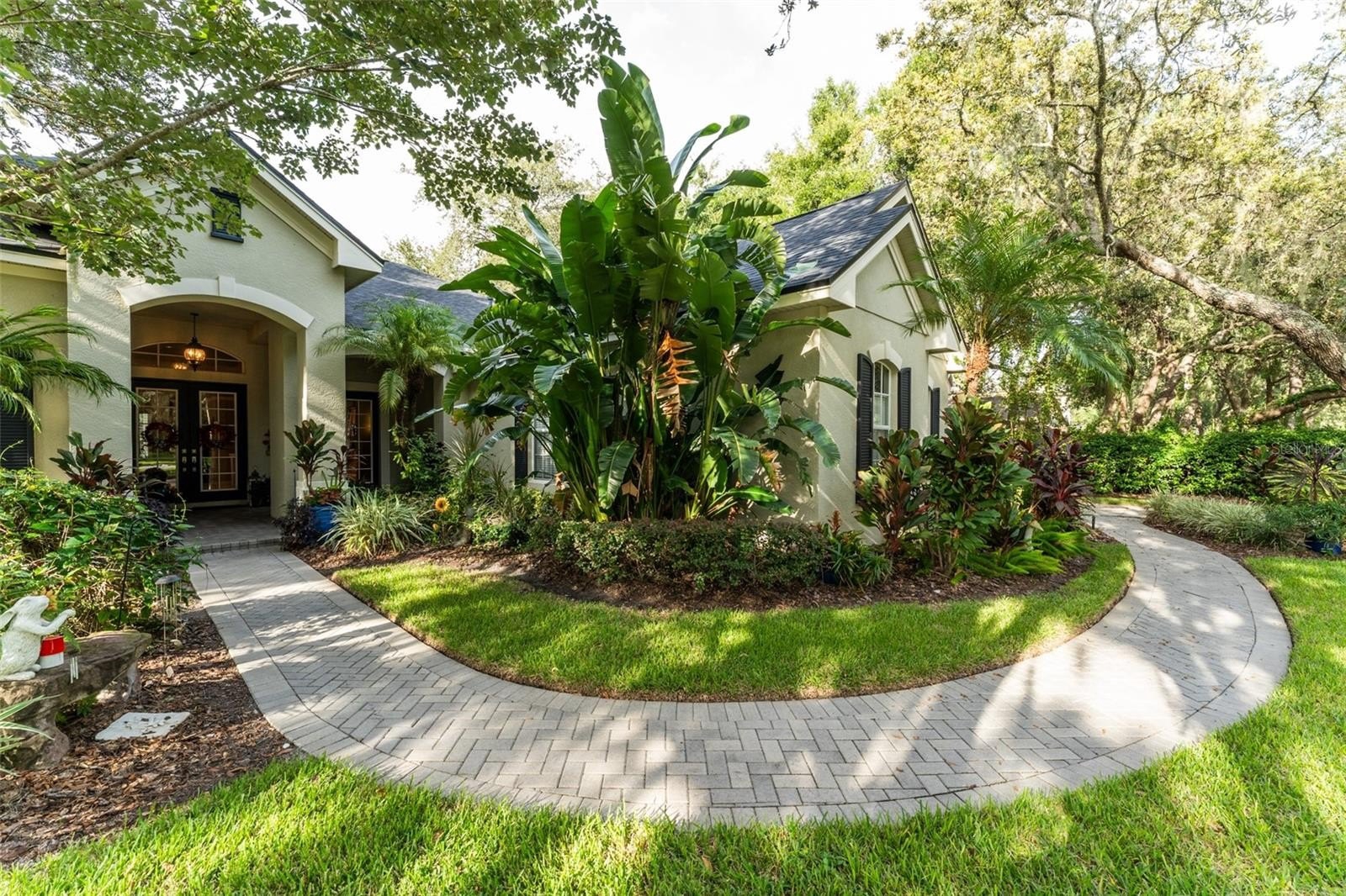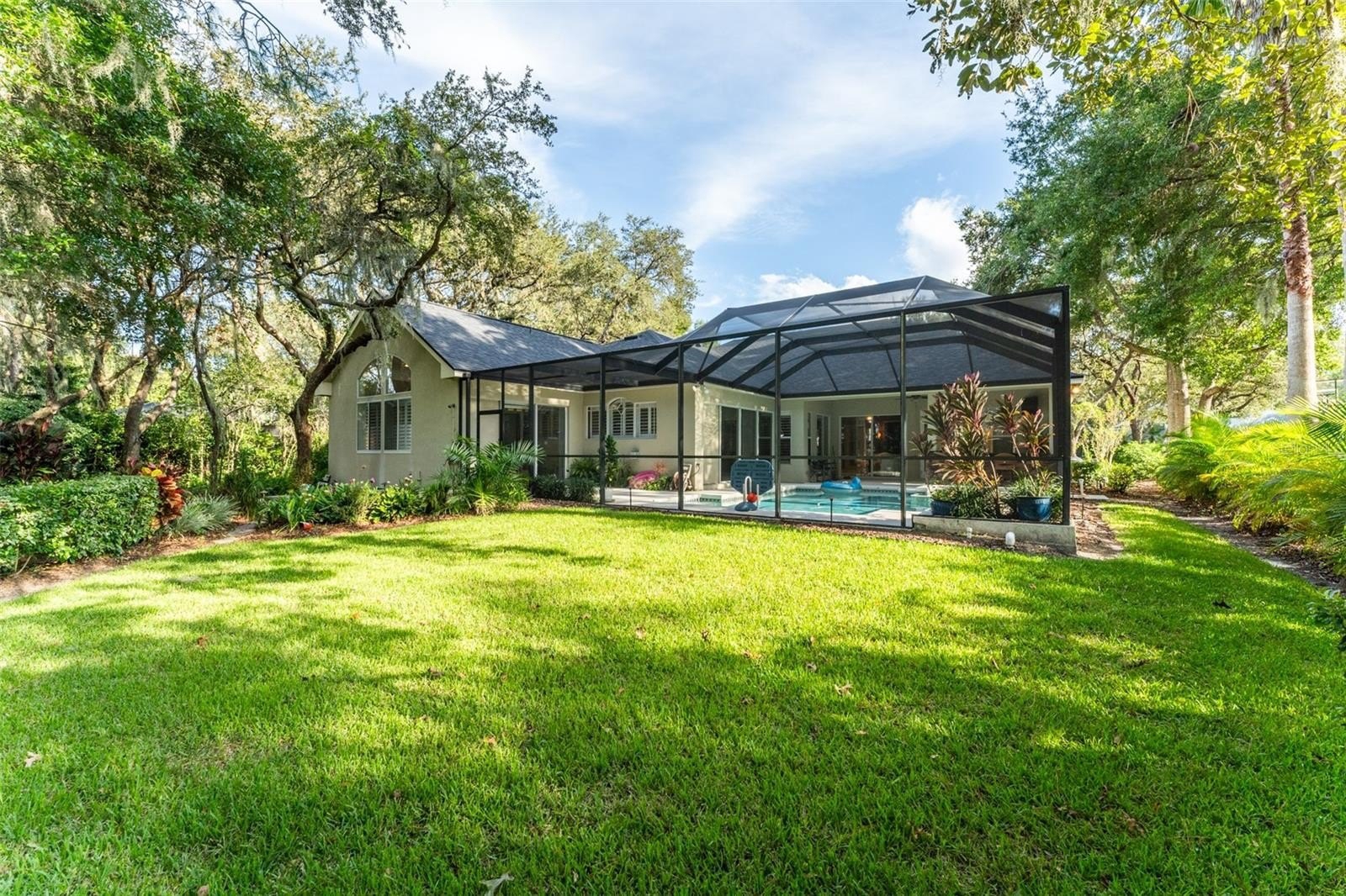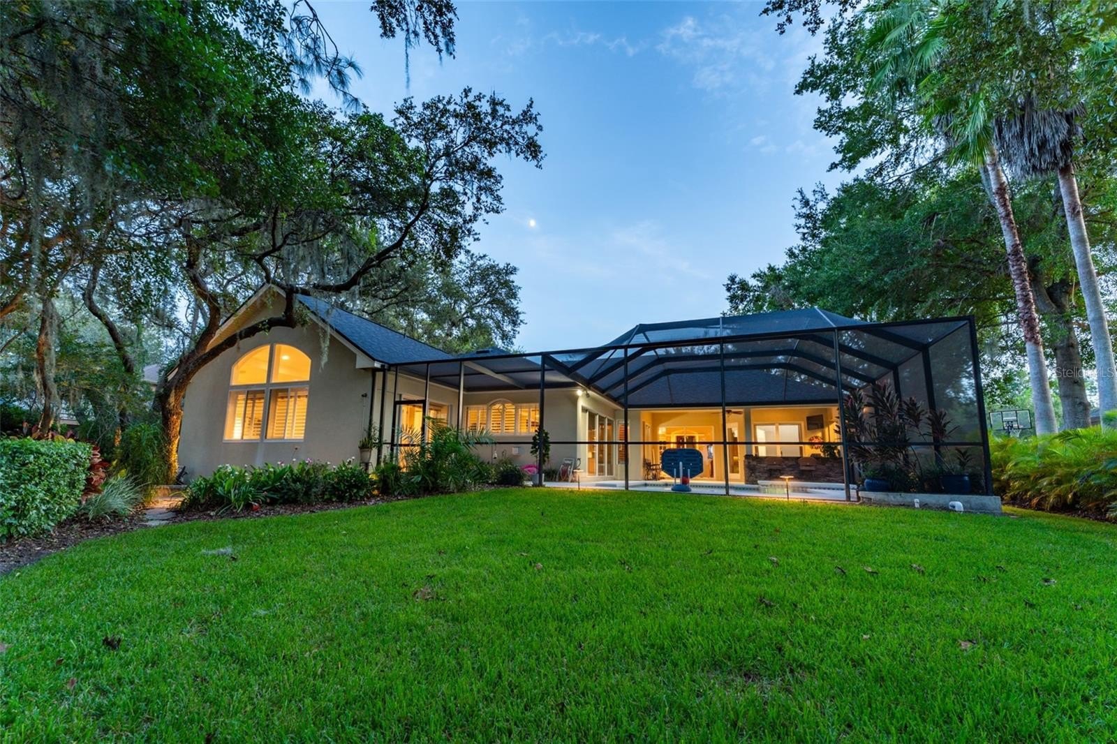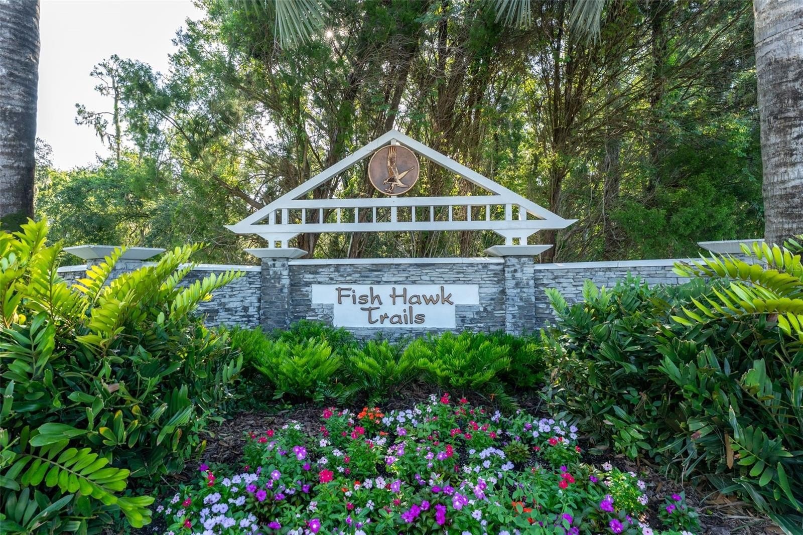 This wonderful Arthur Rutenberg home in the Gated Community of Fish Hawk Trails provides everything you have been looking for & more!! As you approach the home, you will notice the lush landscaping and pavered walkway to the front entrance with a large covered porch that is perfect for enjoying your morning coffee. Enter through double glass doors into an open concept floorplan with an abundance of elegant architectural detail on the ceilings & walls throughout all main living areas. Step onto tile flooring laid on the diagonal that flows throughout the home with carpet in bedrooms & the office. At the front of the home you will find the formal living & dining areas with a spacious office with double glass french doors & a foyered grand entrance flanked with lighting sconces on each side. Continue farther into the heart of the home to the kitchen with abundant wood cabinetry & stone tops, spacious center island, bar seating, gas cooktop, double wall ovens, dishwasher, refrigerator, microwave, glass front cabinets for displaying your treasured pieces above the pass through to the formal dining area, under cabinet lighting & tile backsplash. The family room & eat in area are open to the kitchen featuring a gas fireplae with beautiful windows above & pocket sliders that fully open giving you views and access to the sparkling pool/spa & outdoor living area with an outdoor kitchen featuring a grill, sink & mini fridge. Get ready to spend countless hours in this wonderful haven. The primary suite is privately located on one side of the home with french door access to the outdoor space offering a spacious bedroom with two walk in closets with built in organizers & the light infused EnSuite Bath with walk in shower with decorative tile, dual vanities and soaking tub. There are two bedrooms with a bath in one wing of the home with the 4th bedroom located in a separate area with adjacent bath & large bonus room with a wall of windows that overlook the backyard & sliders to access the outdoor area. One of my favorite features of this home is the landscape lighting in both the front & back, terraced garden areas, brick paved & stone walkways that wind throughout the private & lushly landscaped backyard & backing to the neighborhood trails. This area will be one of your favorites too. Located in the highly sought after gate guarded (24/7) community of Fish Hawk Trails with large executive homesites, miles of trails, wide streets, tennis, basketball & pickleball courts, a community center all surrounded by nature & zoned for great schools. Other important features include A NEW ROOF (2024), newer HVAC's (2024 & 2020), plantation shutters, laundry room with washer & dryer that convey, utility sink, cabinetry & folding table, oversized 3 car garage with built in wood shelving & more. There is so much to love about this home so make sure to schedule an appointment to see it today!! You don't want this one to get away!!