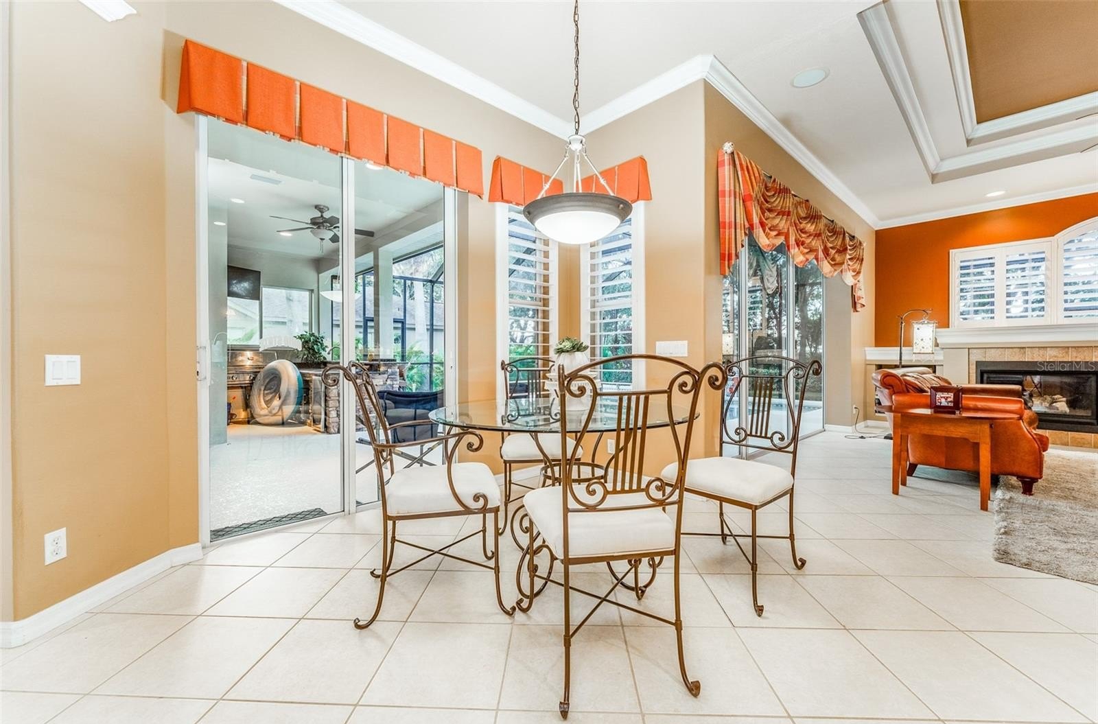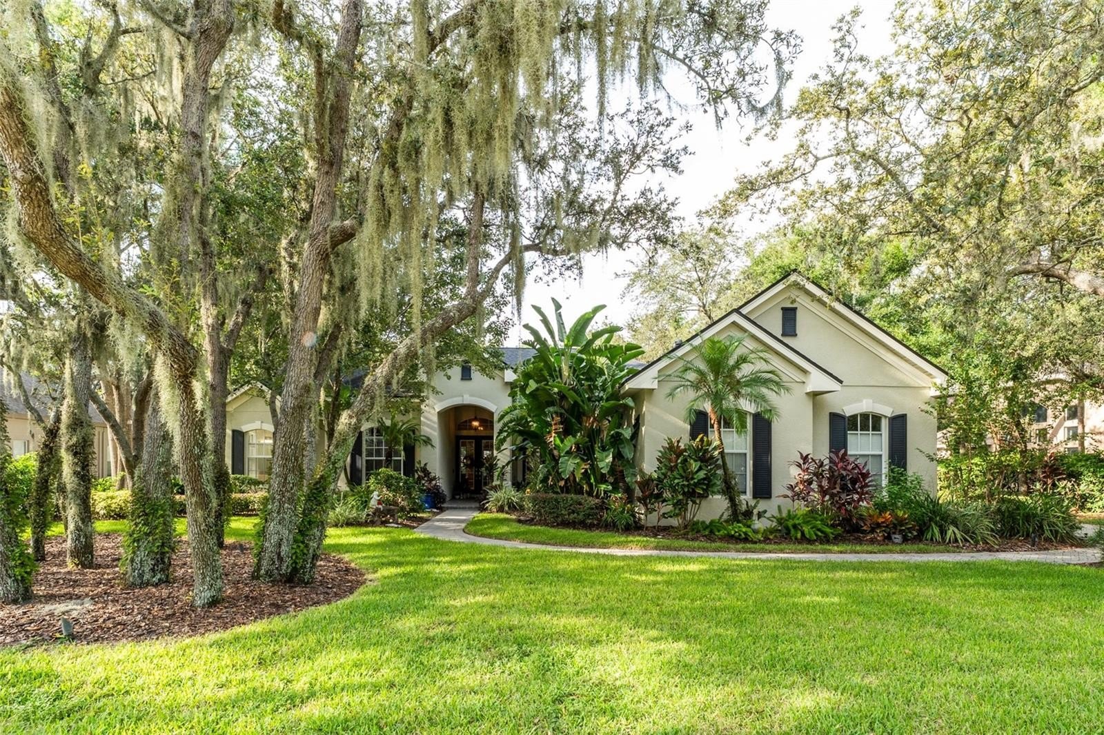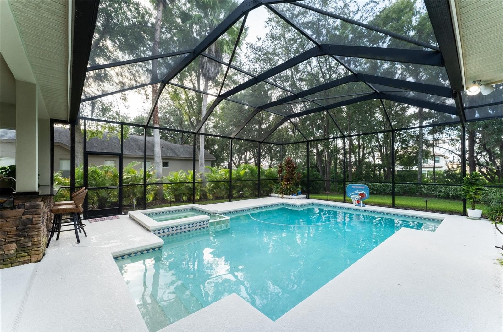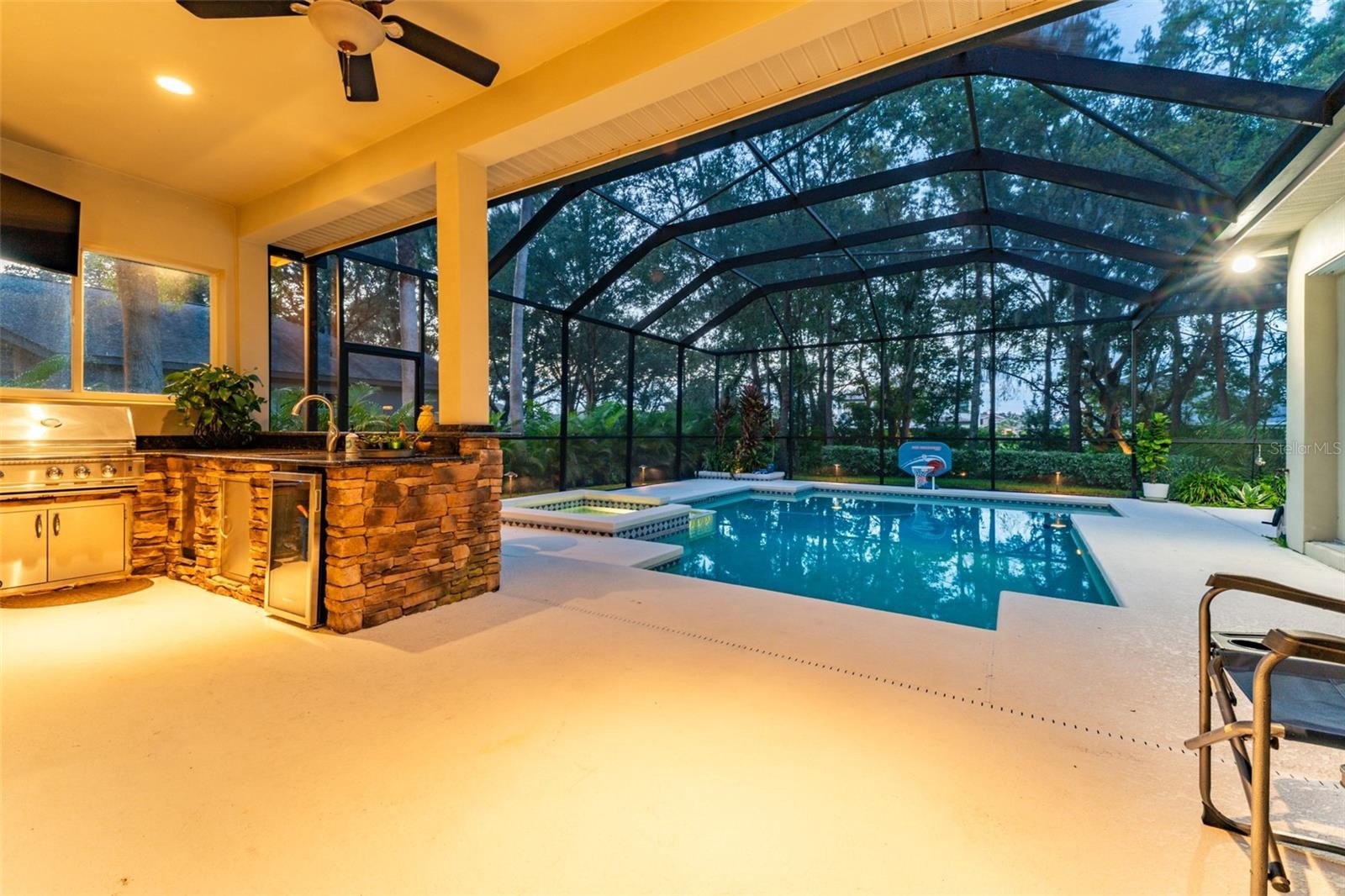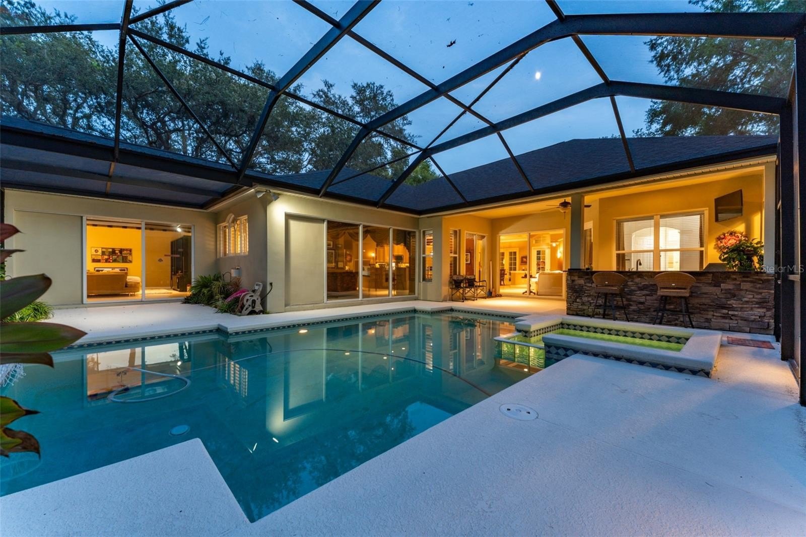 This wonderful Arthur Rutenberg home in the Gated Community of Fish Hawk Trails provides everything you have been looking for & more!! As you approach the home, you will notice the lush landscaping and pavered walkway to the front entrance with a large covered porch that is perfect for enjoying your morning coffee. Enter through double glass doors into an open concept floorplan with an abundance of elegant architectural detail on the ceilings & walls throughout all main living areas. Step onto tile flooring laid on the diagonal that flows throughout the home with carpet in bedrooms & the office. At the front of the home you will find the formal living & dining areas with a spacious office with double glass french doors & a foyered grand entrance flanked with lighting sconces on each side. Continue farther into the heart of the home to the kitchen with abundant wood cabinetry & stone tops, spacious center island, bar seating, gas cooktop, double wall ovens, dishwasher, refrigerator, microwave, glass front cabinets for displaying your treasured pieces above the pass through to the formal dining area, under cabinet lighting & tile backsplash. The family room & eat in area are open to the kitchen featuring a gas fireplae with beautiful windows above & pocket sliders that fully open giving you views and access to the sparkling pool/spa & outdoor living area with an outdoor kitchen featuring a grill, sink & mini fridge. Get ready to spend countless hours in this wonderful haven. The primary suite is privately located on one side of the home with french door access to the outdoor space offering a spacious bedroom with two walk in closets with built in organizers & the light infused EnSuite Bath with walk in shower with decorative tile, dual vanities and soaking tub. There are two bedrooms with a bath in one wing of the home with the 4th bedroom located in a separate area with adjacent bath & large bonus room with a wall of windows that overlook the backyard & sliders to access the outdoor area. One of my favorite features of this home is the landscape lighting in both the front & back, terraced garden areas, brick paved & stone walkways that wind throughout the private & lushly landscaped backyard & backing to the neighborhood trails. This area will be one of your favorites too. Located in the highly sought after gate guarded (24/7) community of Fish Hawk Trails with large executive homesites, miles of trails, wide streets, tennis, basketball & pickleball courts, a community center all surrounded by nature & zoned for great schools. Other important features include A NEW ROOF (2024), newer HVAC's (2024 & 2020), plantation shutters, laundry room with washer & dryer that convey, utility sink, cabinetry & folding table, oversized 3 car garage with built in wood shelving & more. There is so much to love about this home so make sure to schedule an appointment to see it today!! You don't want this one to get away!!
