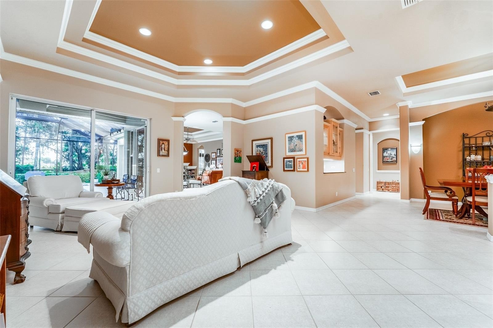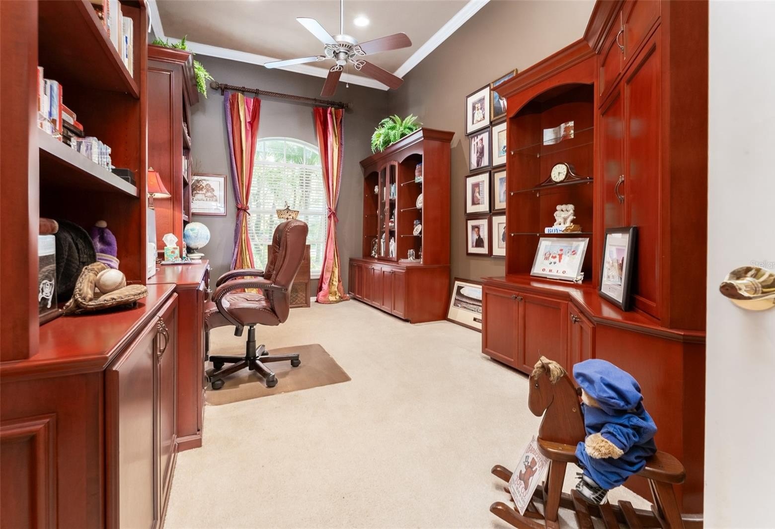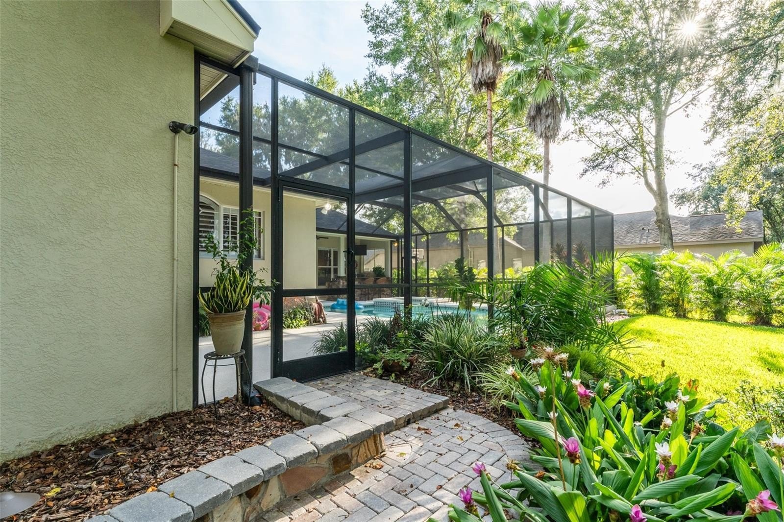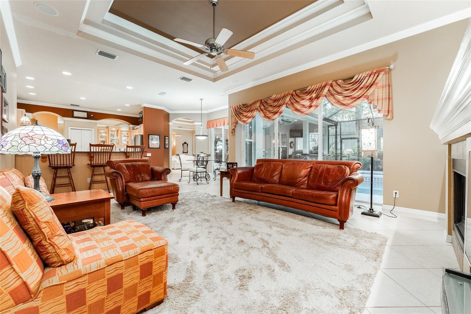 This wonderful Arthur Rutenberg home in the Gated Community of Fish Hawk Trails provides everything you have been looking for & more!! As you approach the home, you will notice the lush landscaping and pavered walkway to the front entrance with a large covered porch that is perfect for enjoying your morning coffee. Enter through double glass doors into an open concept floorplan with an abundance of elegant architectural detail on the ceilings & walls throughout all main living areas. Step onto tile flooring laid on the diagonal that flows throughout the home with carpet in bedrooms & the office. At the front of the home you will find the formal living & dining areas with a spacious office with double glass french doors & a foyered grand entrance flanked with lighting sconces on each side. Continue farther into the heart of the home to the kitchen with abundant wood cabinetry & stone tops, spacious center island, bar seating, gas cooktop, double wall ovens, dishwasher, refrigerator, microwave, glass front cabinets for displaying your treasured pieces above the pass through to the formal dining area, under cabinet lighting & tile backsplash. The family room & eat in area are open to the kitchen featuring a gas fireplae with beautiful windows above & pocket sliders that fully open giving you views and access to the sparkling pool/spa & outdoor living area with an outdoor kitchen featuring a grill, sink & mini fridge. Get ready to spend countless hours in this wonderful haven. The primary suite is privately located on one side of the home with french door access to the outdoor space offering a spacious bedroom with two walk in closets with built in organizers & the light infused EnSuite Bath with walk in shower with decorative tile, dual vanities and soaking tub. There are two bedrooms with a bath in one wing of the home with the 4th bedroom located in a separate area with adjacent bath & large bonus room with a wall of windows that overlook the backyard & sliders to access the outdoor area. One of my favorite features of this home is the landscape lighting in both the front & back, terraced garden areas, brick paved & stone walkways that wind throughout the private & lushly landscaped backyard & backing to the neighborhood trails. This area will be one of your favorites too. Located in the highly sought after gate guarded (24/7) community of Fish Hawk Trails with large executive homesites, miles of trails, wide streets, tennis, basketball & pickleball courts, a community center all surrounded by nature & zoned for great schools. Other important features include A NEW ROOF (2024), newer HVAC's (2024 & 2020), plantation shutters, laundry room with washer & dryer that convey, utility sink, cabinetry & folding table, oversized 3 car garage with built in wood shelving & more. There is so much to love about this home so make sure to schedule an appointment to see it today!! You don't want this one to get away!!