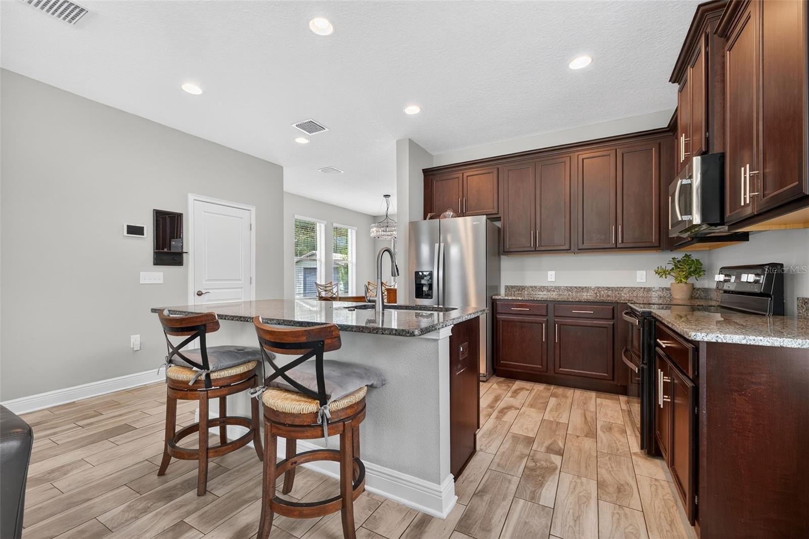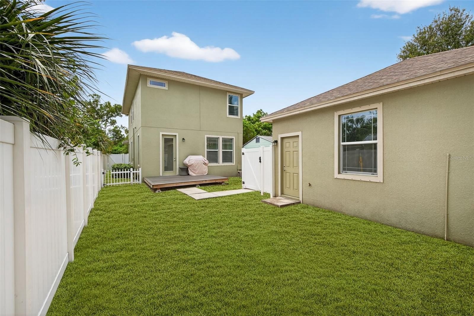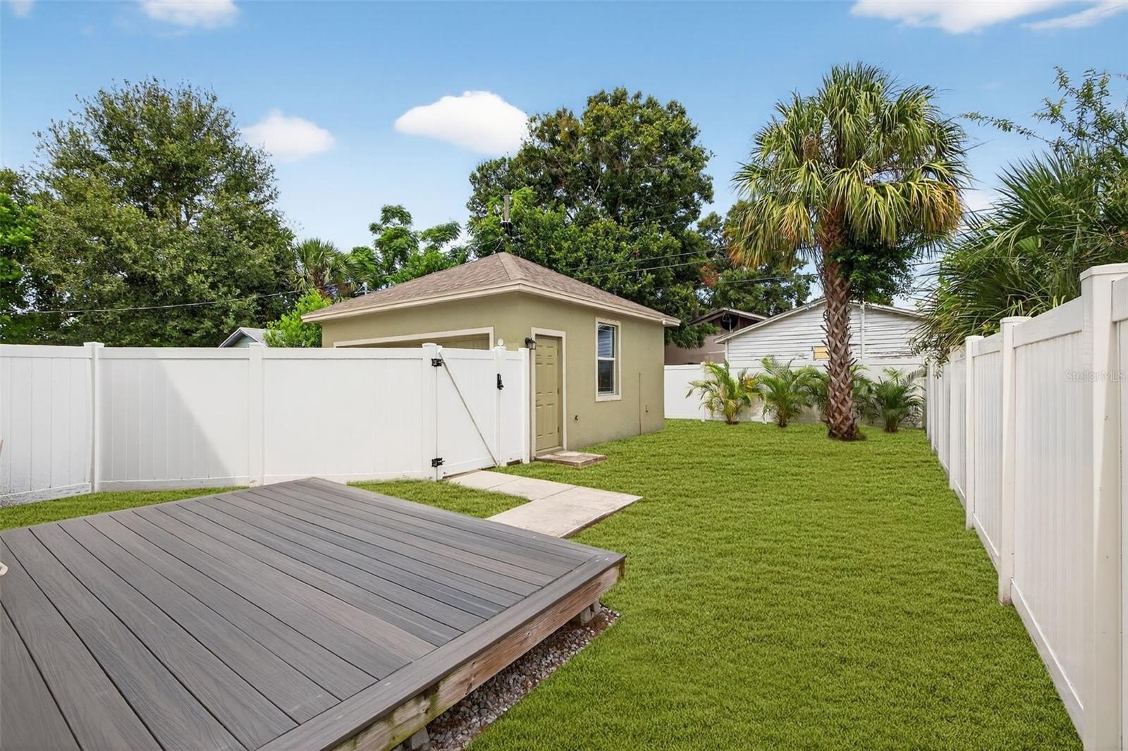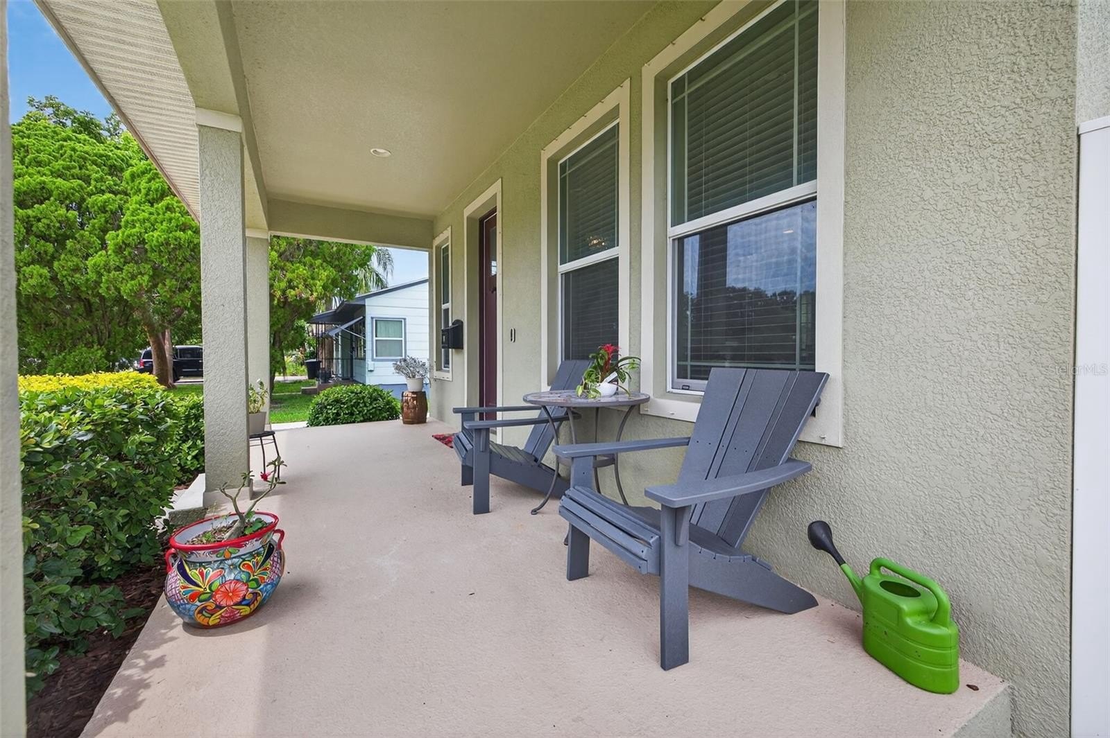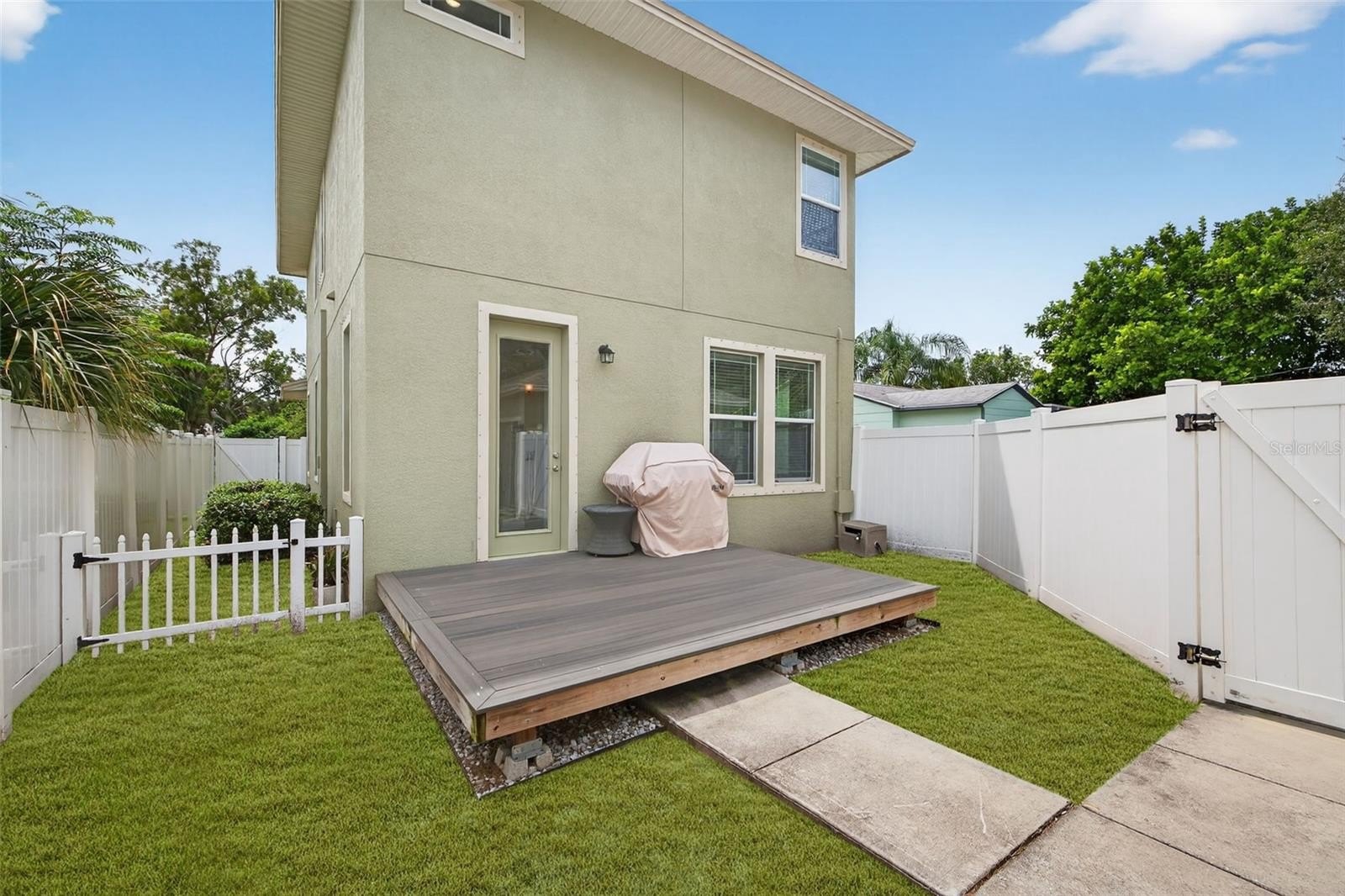 Enjoy Florida living in your fenced backyard with a high end TREX deck, front irrigation, large covered front porch and low maintenance landscaping -- ideal for pets, gardening, or weekend BBQs.