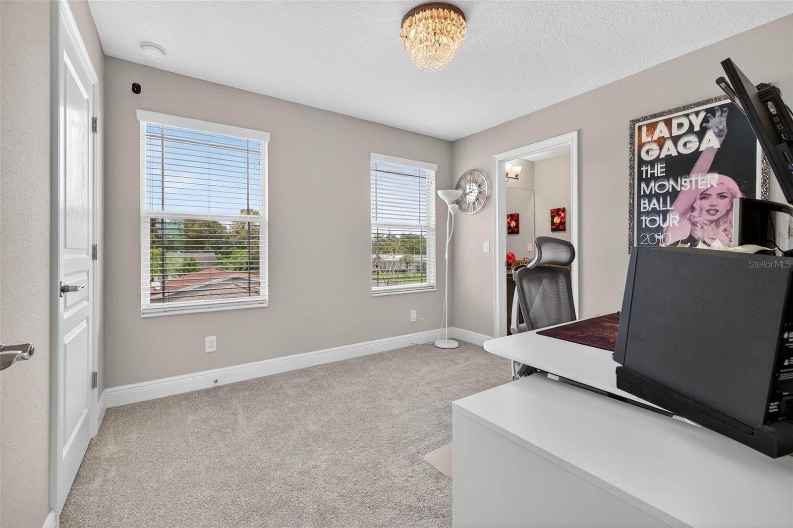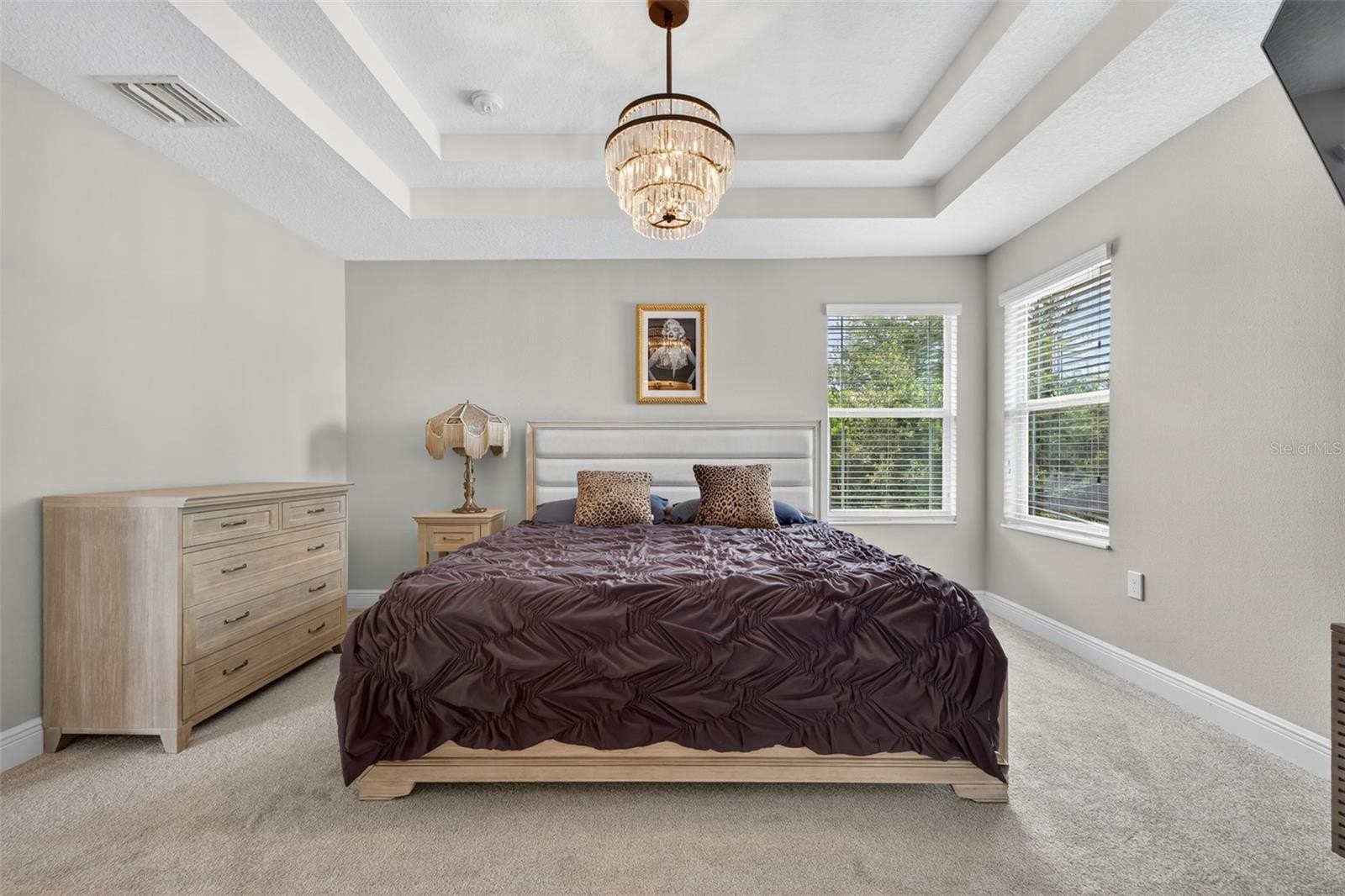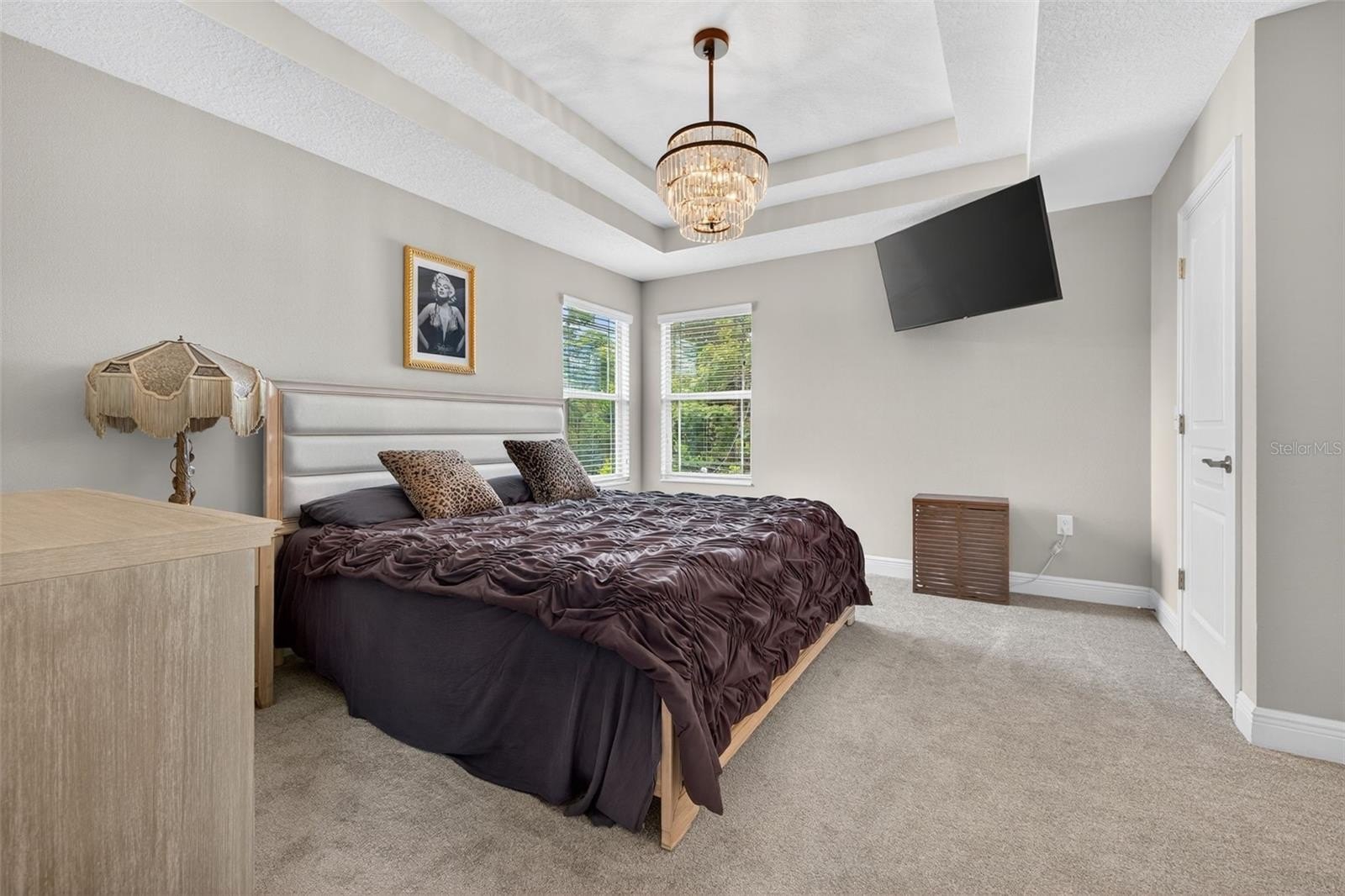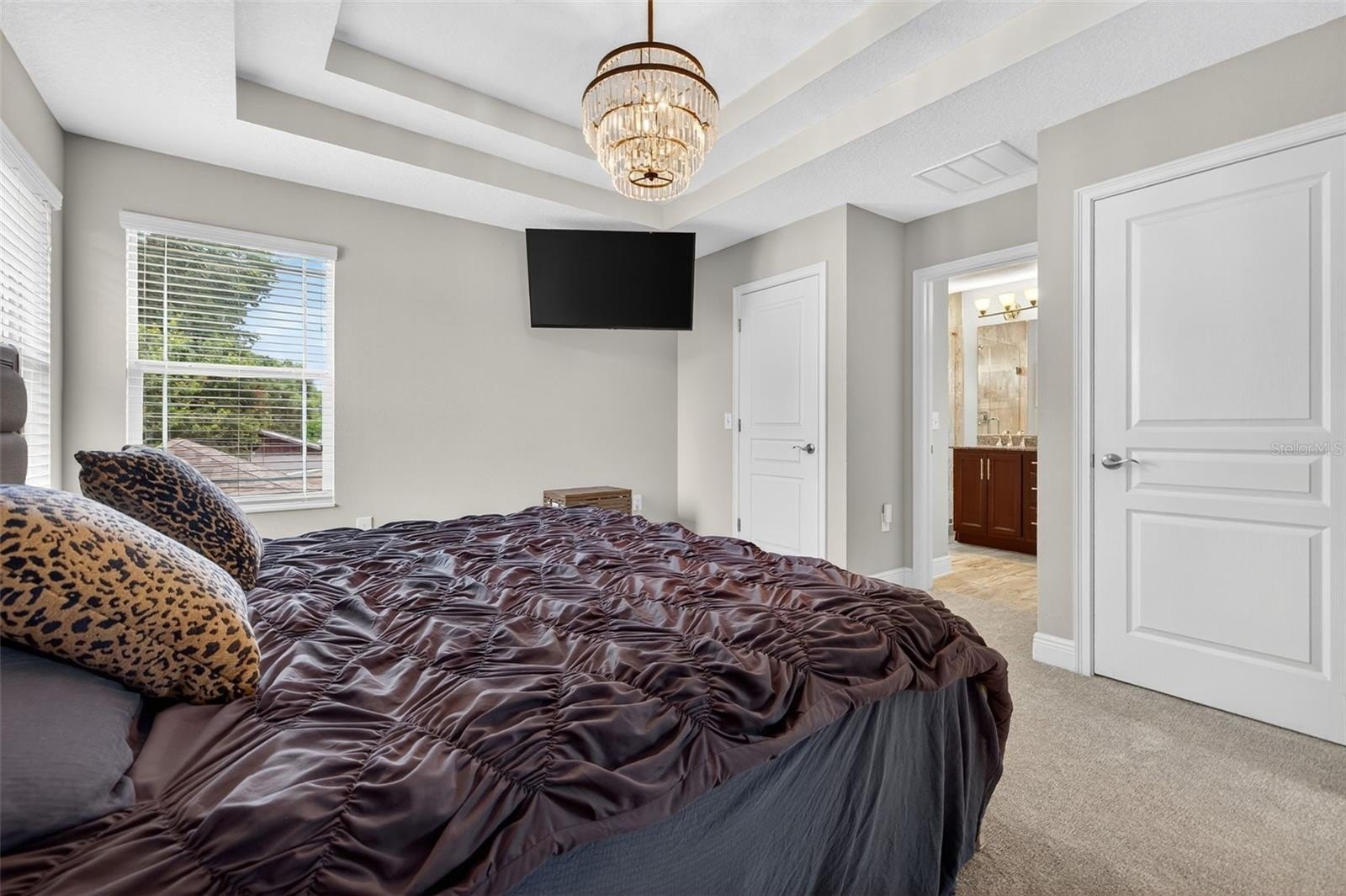 FRESH Brand NEW carpeting upstairs just installed for your enjoyment! The large primary suite with tray ceilings is the perfect retreat, complete with plenty of closet space and private en-suite bath. The other two well appointed bedrooms share a jack-and-jill bath and lots of natural light.