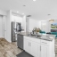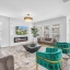 As you enter, you will discover a bright and inviting living area that seamlessly flows into the gourmet kitchen and dining space, perfect for entertaining. This home is adorned with high-end lighting fixtures, elegant finishes, and top-of-the-line appliances, ensuring a sophisticated living experience. The highlight of the living space is a stunning custom marble electric fireplace that adds warmth and style.