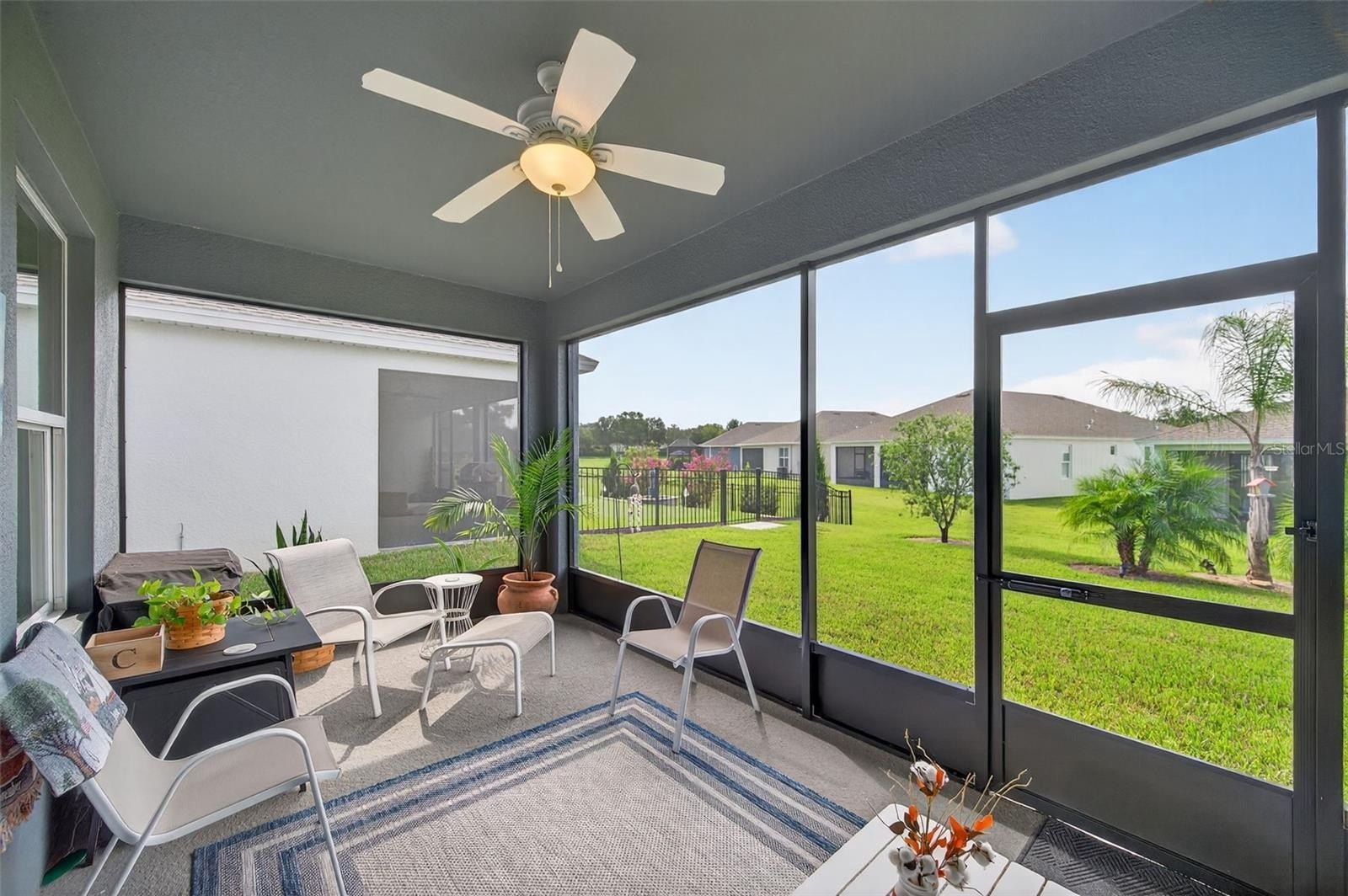 Perhaps one of the most appealing features is the enclosed and screened patio, already completed for you, overlooking the landscaped backyard with added palms and plantings. It’s the perfect spot to enjoy your morning coffee or an evening breeze without the extra expense and wait that comes with a new build.