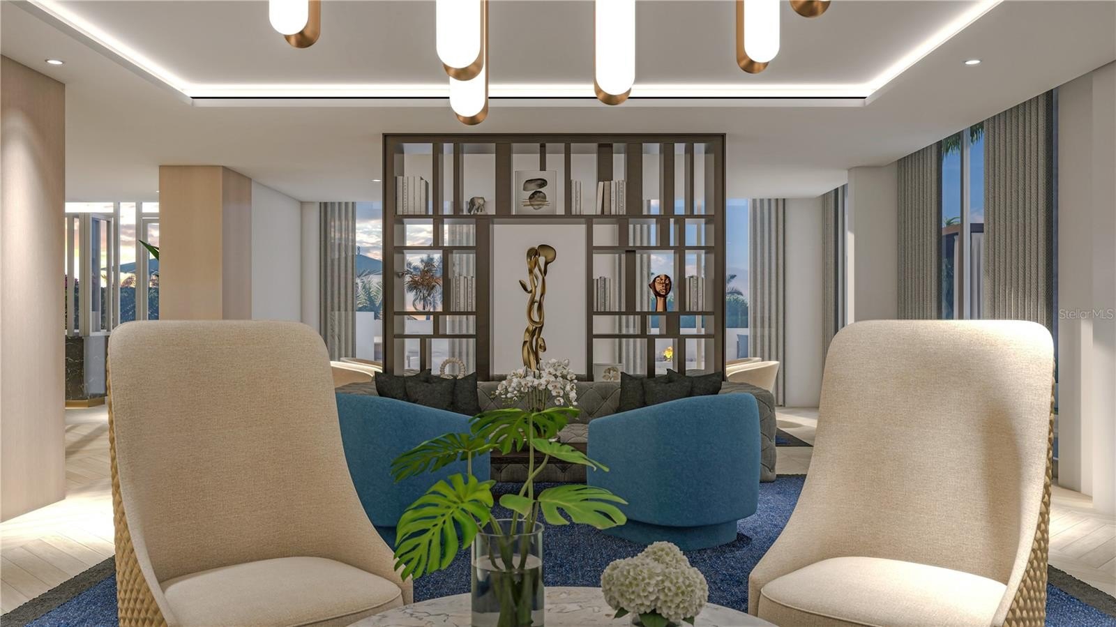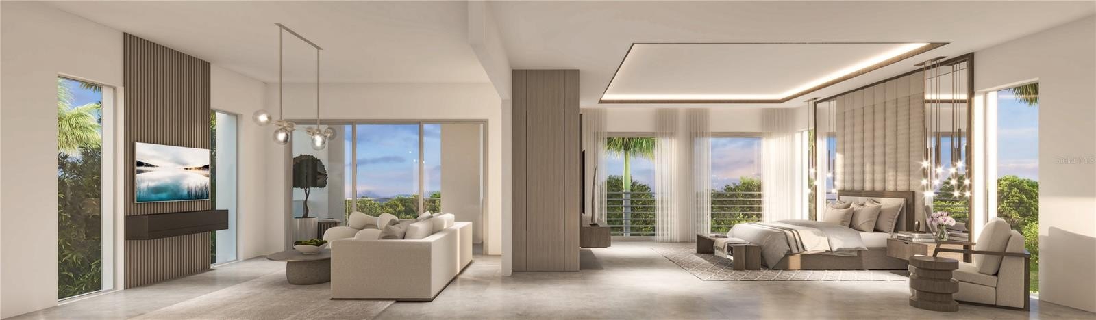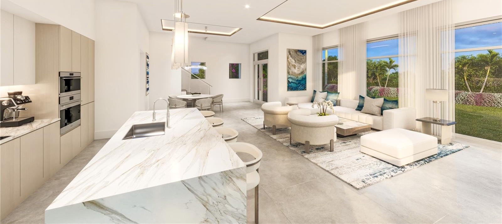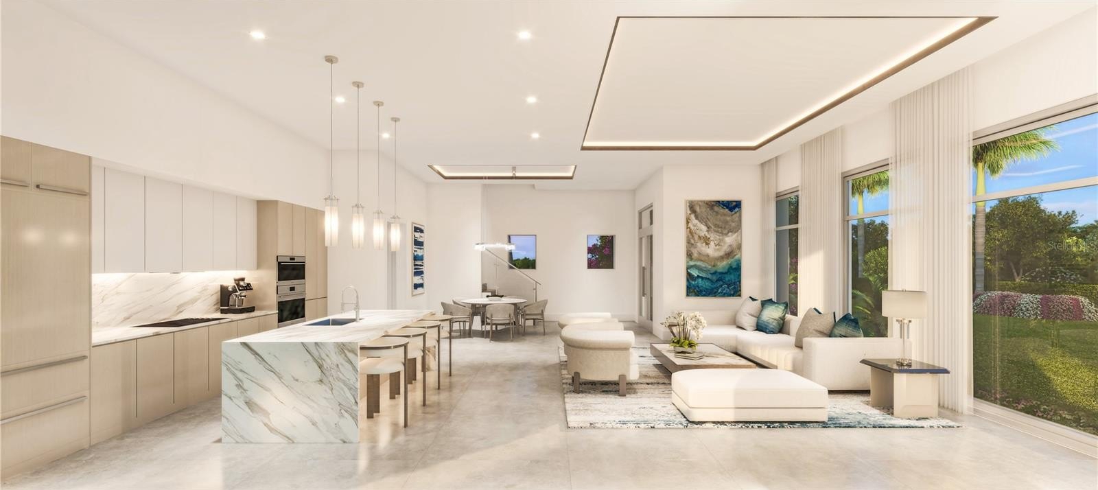 Expansive living areas, soaring ceilings, and large windows bathe the space in natural light. Interiors boast the finest finishes such as Italkraft premium cabinetry, quartz waterfall countertops, large format porcelain tile, Sub-Zero and Wolf appliances with induction stove top. The owners-suite bedroom is a retreat within a retreat, offering unparalleled comfort and style featuring an owner’s study with floor-to-ceiling glass leading out to your private Terrace.