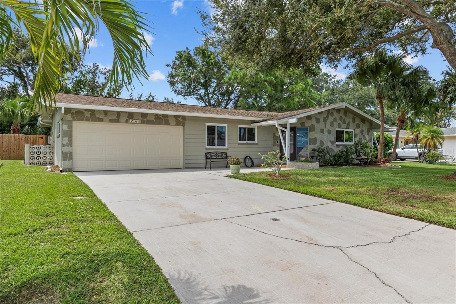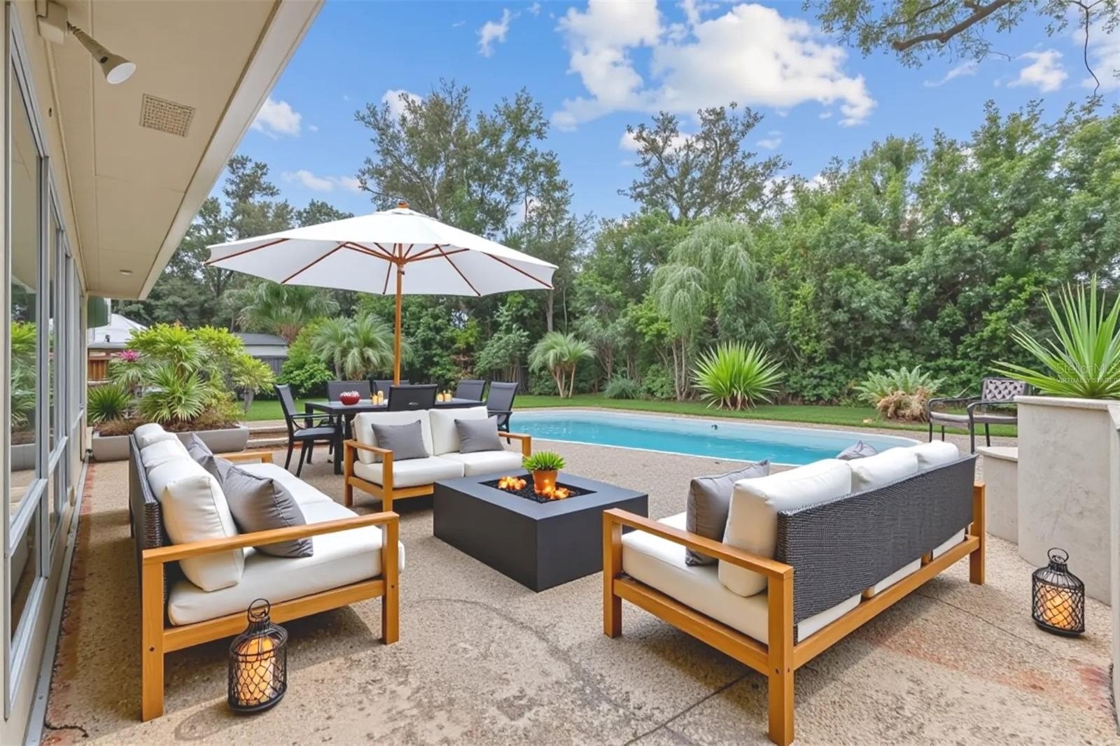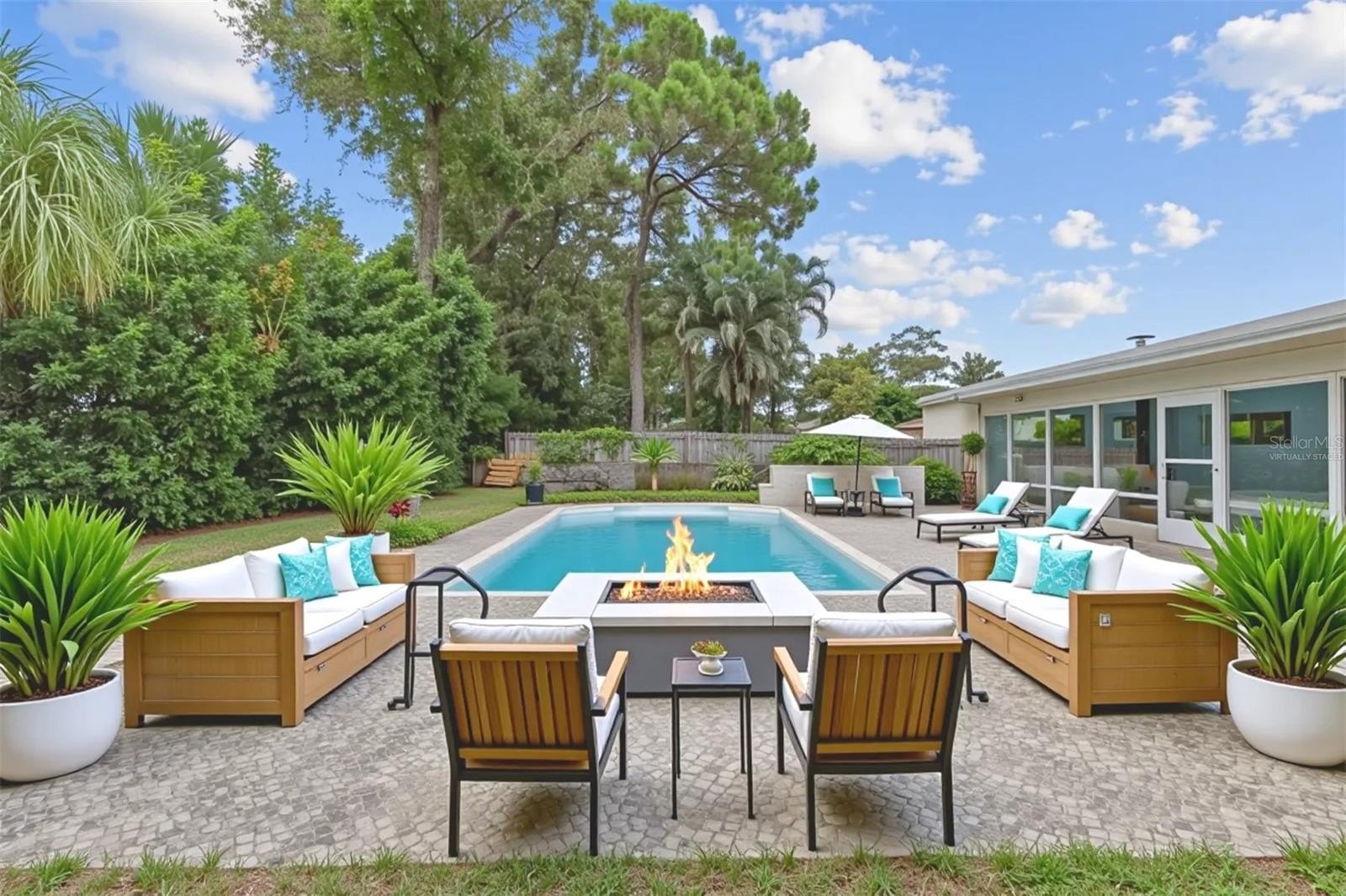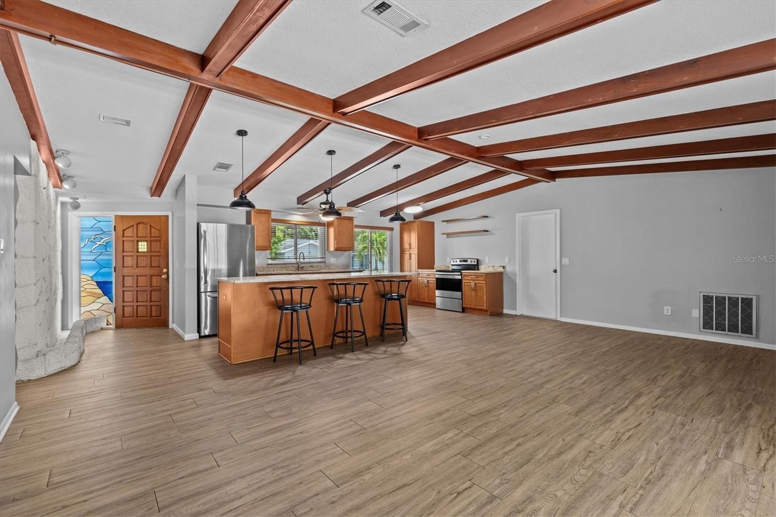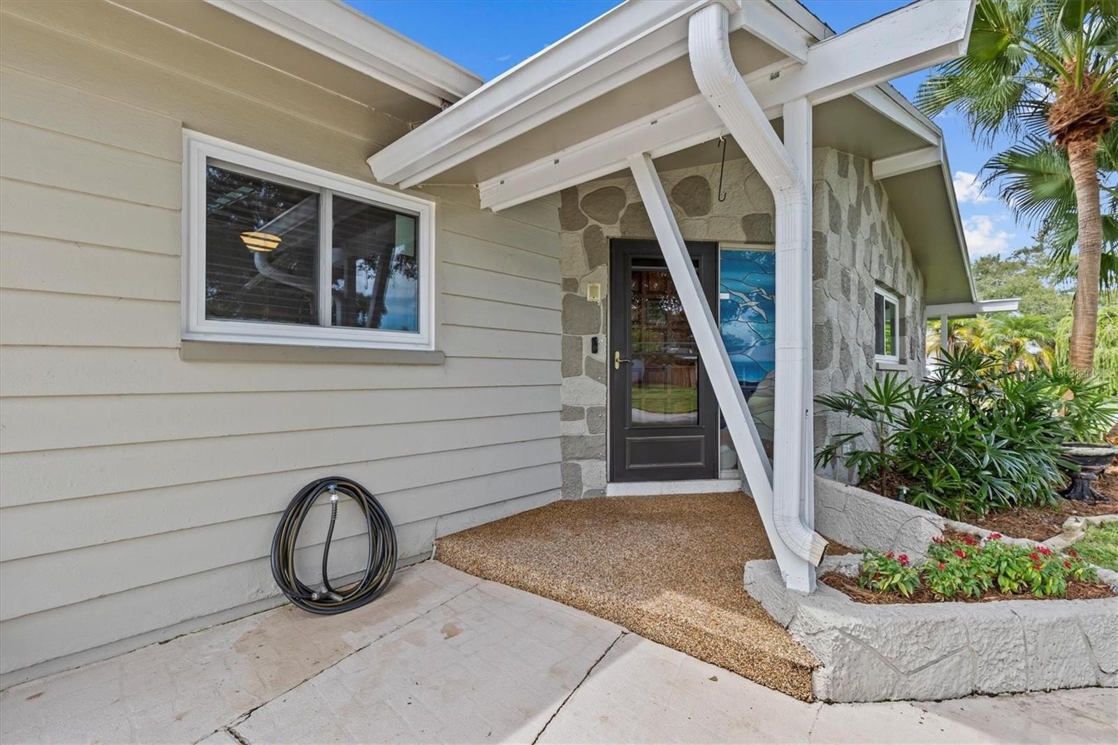 You don’t need to live in downtown Dunedin to enjoy the ultimate walkable lifestyle. Nestled in Fairway Estates, this residence is just steps from the Pinellas Trail, an 18-hole championship golf course and clubhouse, and the region’s premier visual arts and education center. Nearby, a community center with library, fitness studio & classes, Olympic size pool, tennis and pickleball courts, and picturesque parks ensure endless opportunities for recreation, festivals, and nature exploration—all without ever getting in your car. The optional HOA offers the freedom of no deed restrictions, along with an active calendar of family friendly gatherings. Peace of mind comes with a newer roof and HVAC system, hurricane-rated windows and doors, and X flood zone status that helps keep insurance affordable. Inside, you’ll find an open-concept great room and chef’s kitchen designed for entertaining, with soaring vaulted ceilings, dramatic exposed beams, and luxury plank flooring. European-style wood cabinetry, sleek stainless appliances, oversized island with entertainment bar, and gleaming granite countertops. Host with style in the expansive 35’ x 14’ enclosed lanai, complete with a cozy fireplace and the potential for additional climate-controlled living. The Owner’s Suite is a true retreat with direct lanai access, and a spa-inspired ensuite with updated vanity and mid-century modern sunken tub/shower. Two additional bedrooms share an updated ceramic tile bath, also with a timeless sunken tub/shower. Original mid-century terrazzo floors grace all bedrooms. Step outside to your private backyard oasis with a sparkling in-ground pool. The fully fenced yard provides both privacy and security for kids and pets alike. Homes in Fairway Estates are highly sought-after and rarely available. Don’t miss the chance to claim this exceptional lifestyle—schedule your private tour today.