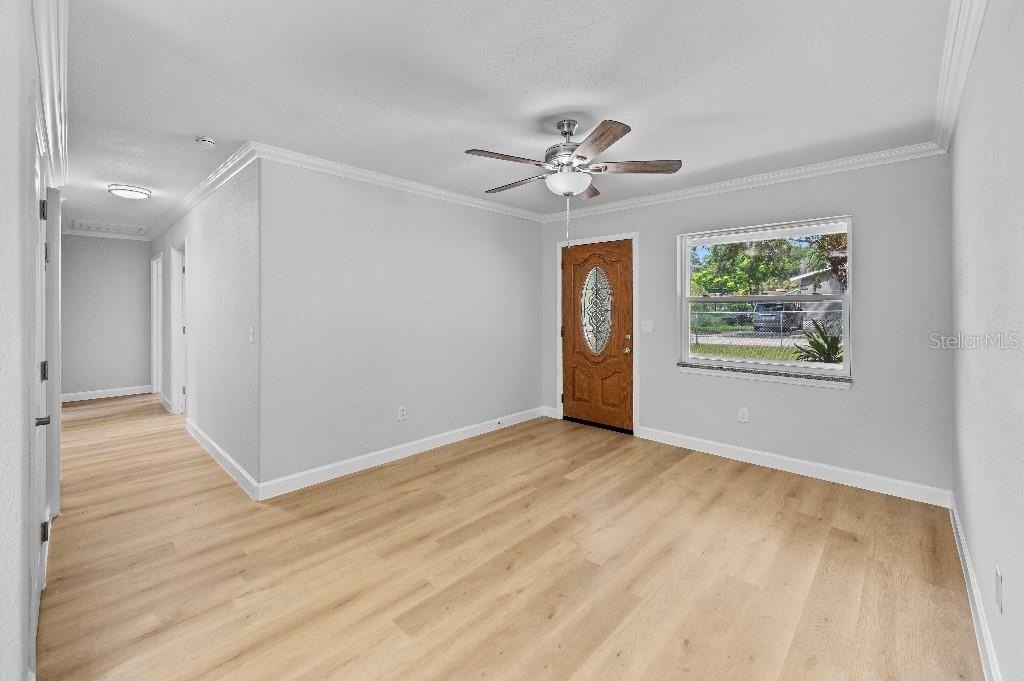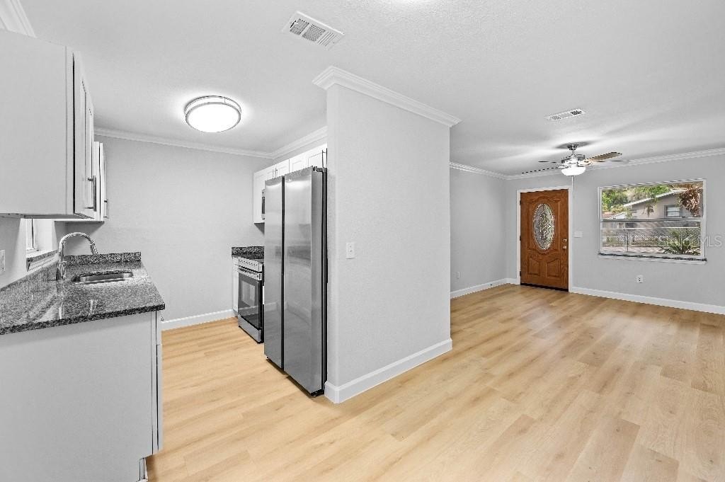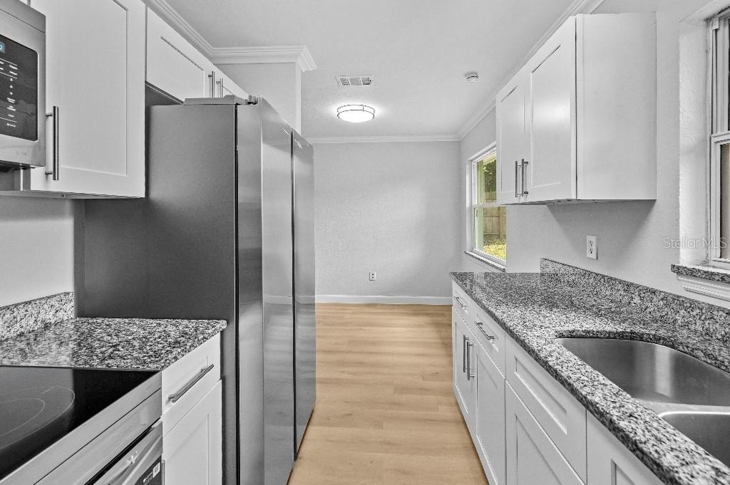 Step inside and you’ll find brand-new vinyl flooring throughout, creating a clean and contemporary feel. The heart of the home is the fully remodeled kitchen, featuring granite countertops, stainless steel appliances, and stylish new lighting and ceiling fans. Fresh interior and exterior paint give the entire home a bright, move-in ready look.