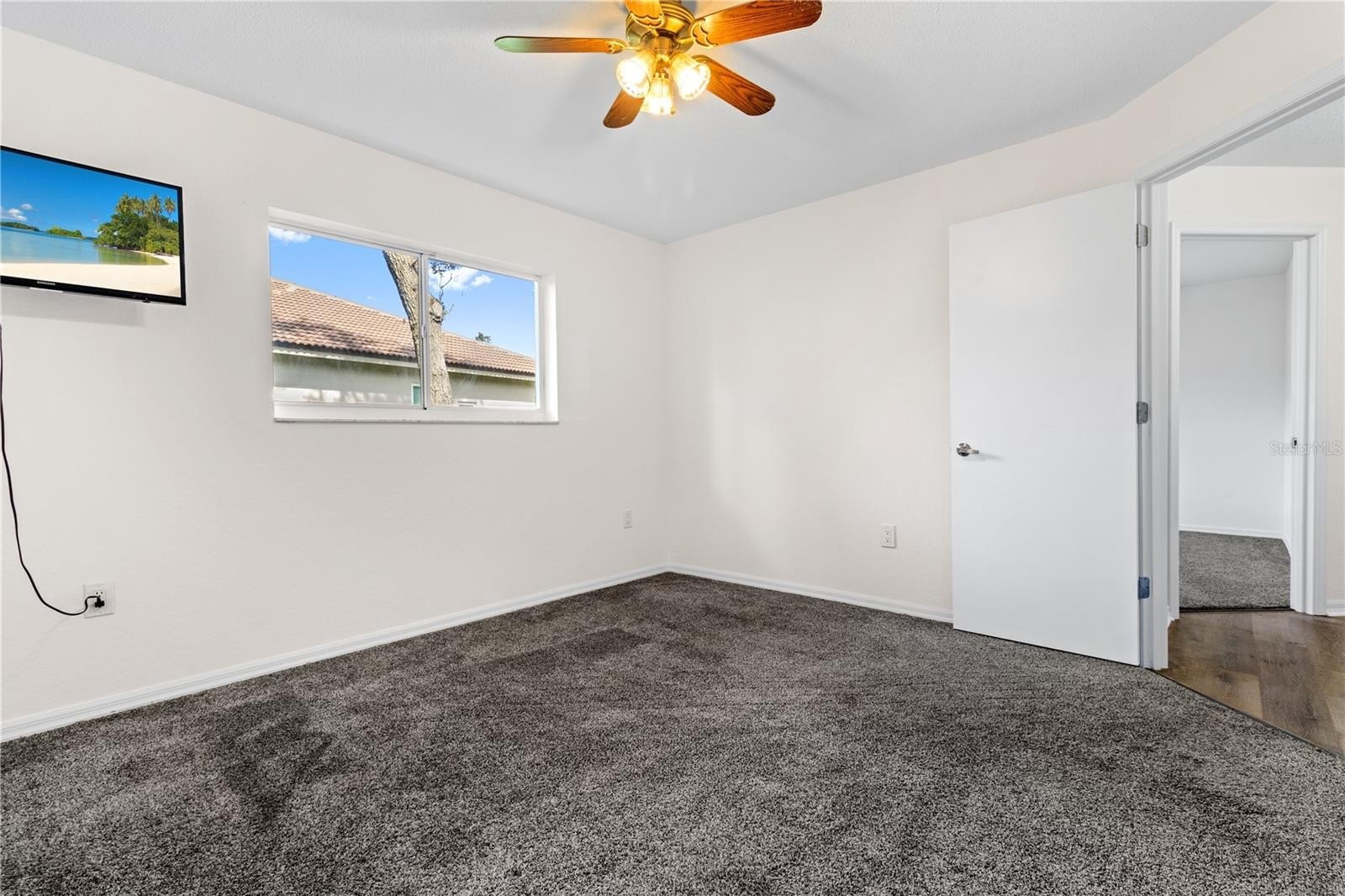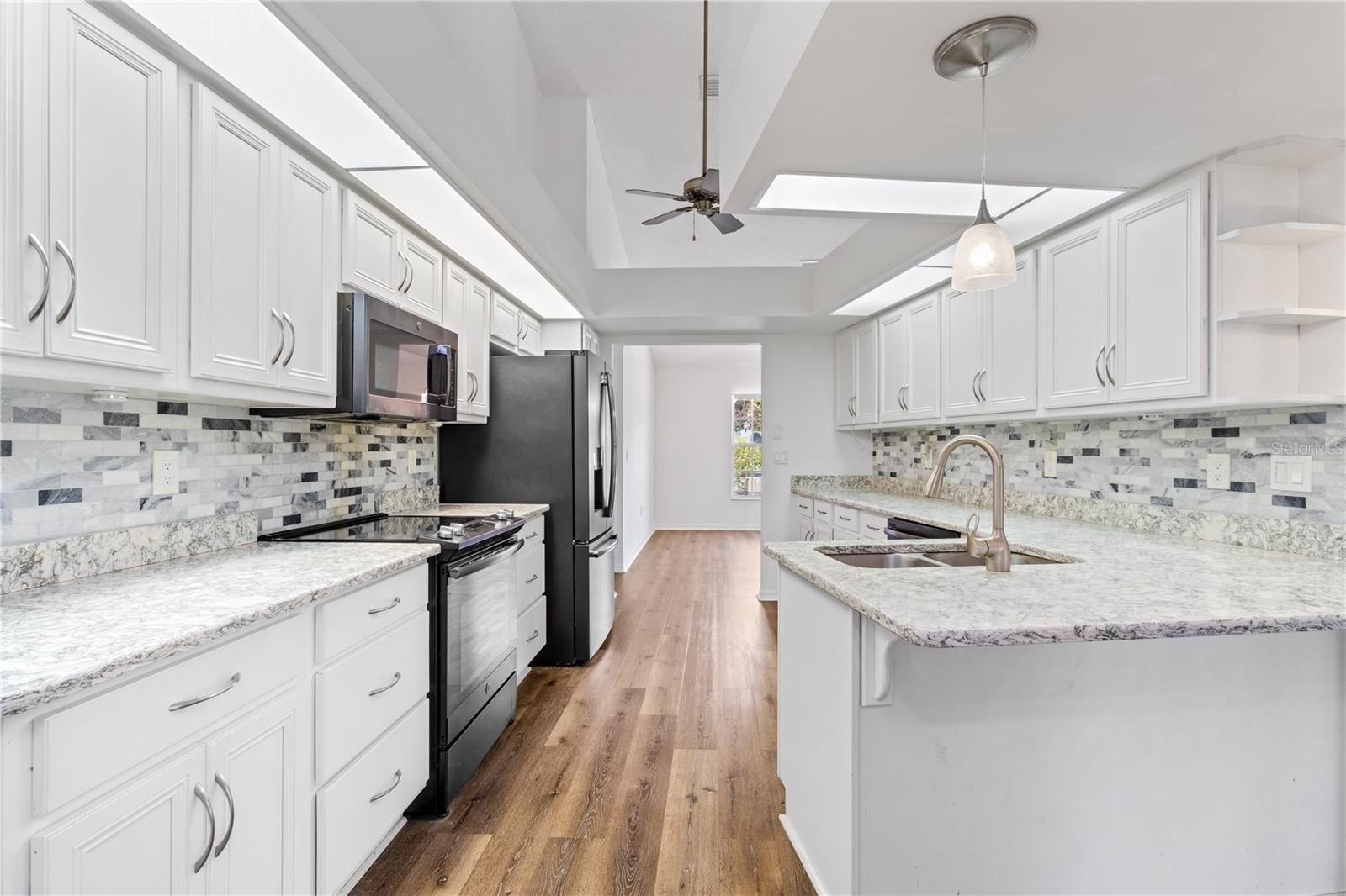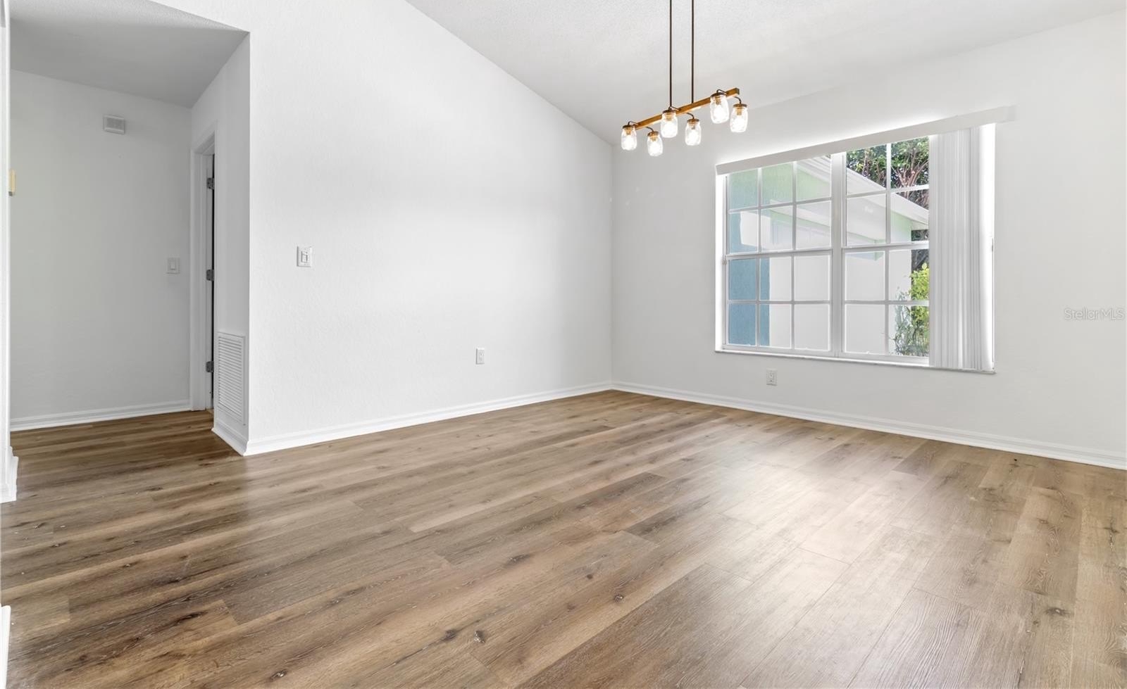 The kitchen features expansive counter space and abundant cabinetry, creating plenty of room for meal prep, storage, and gathering with family and friends. Fresh interior paint was completed September 2025, giving the home a clean, welcoming feel. Flooring includes luxury vinyl plank in the main living areas and carpet in the bedrooms.