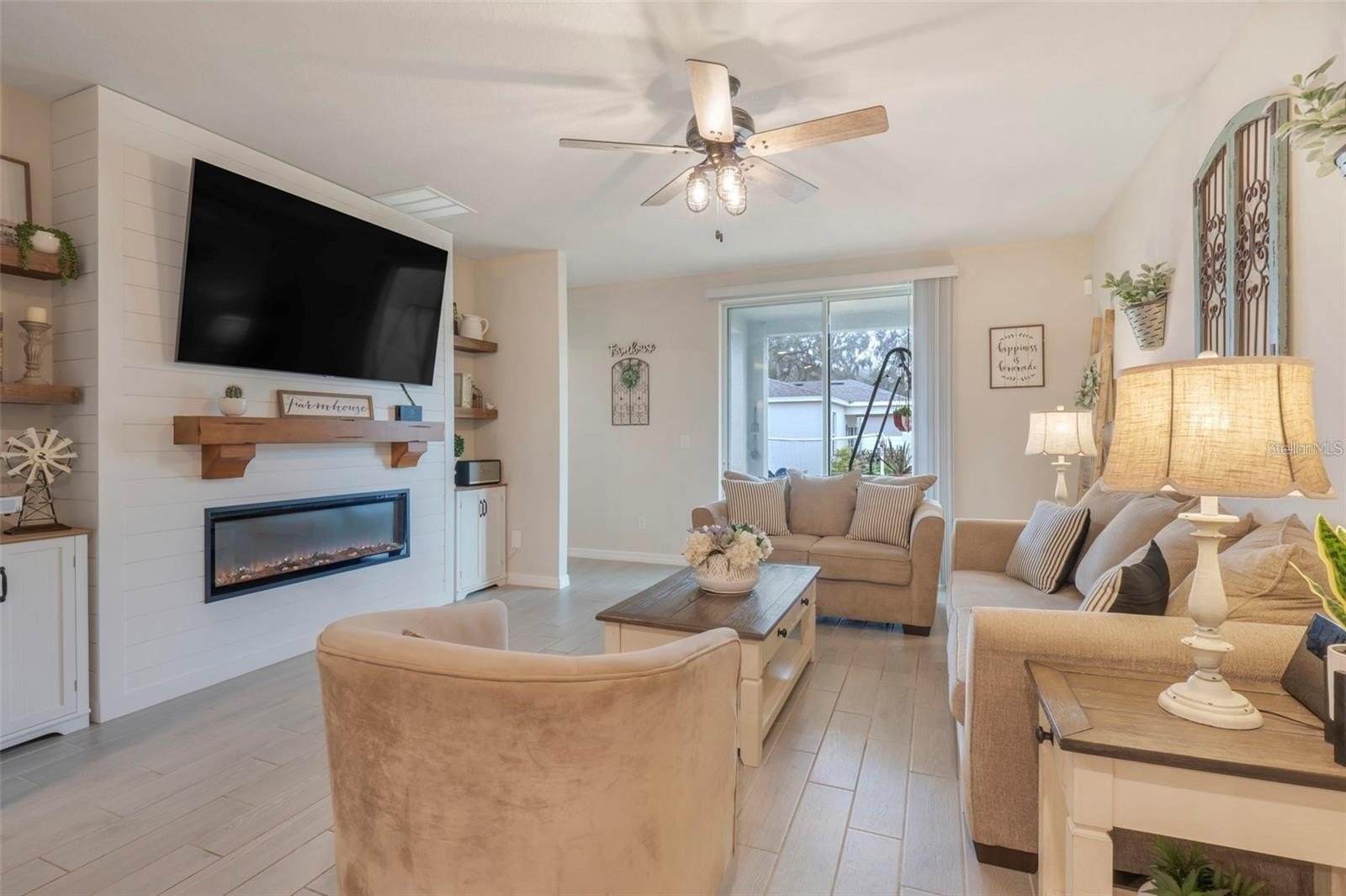 Step inside to an open-concept floor plan highlighted by a stunning fireplace feature wall. The spacious kitchen boasts stainless steel appliances and flows seamlessly into the dining and living areas, all enhanced by beautiful tiled flooring for a modern, cohesive look.