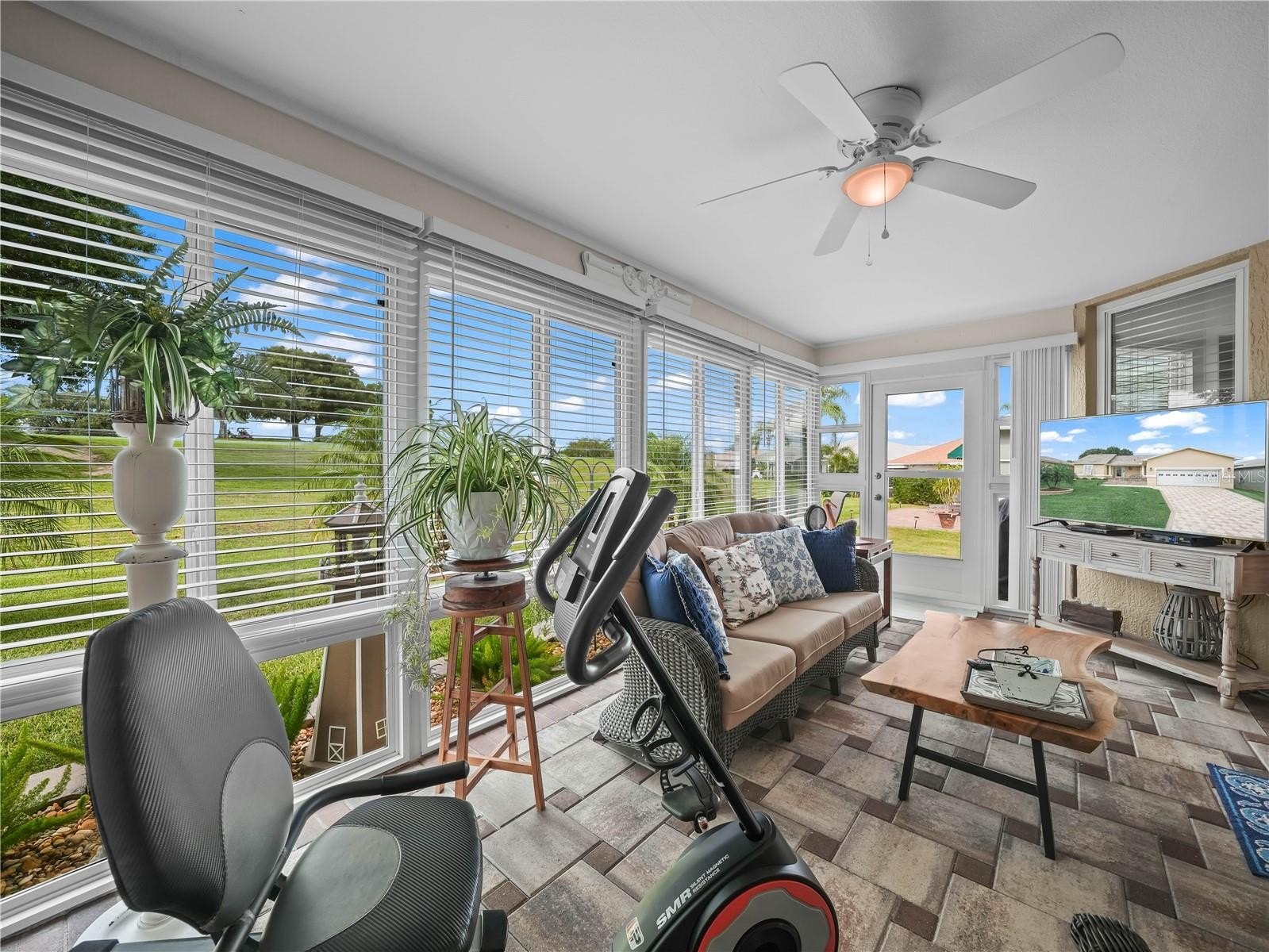 Additional highlights include: New Roof (10 months old), newer windows, a/c 8 years old. Spacious primary suite with walk-in closet and a remodeled en-suite bathroom featuring a walk-in shower. Updated guest bathroom. Indoor laundry room with extra storage. The Florida Room with wall-to-wall windows to soak in the sunshine. Outdoor patio with brick pavers, perfect for barbecues and enjoying golf course views.