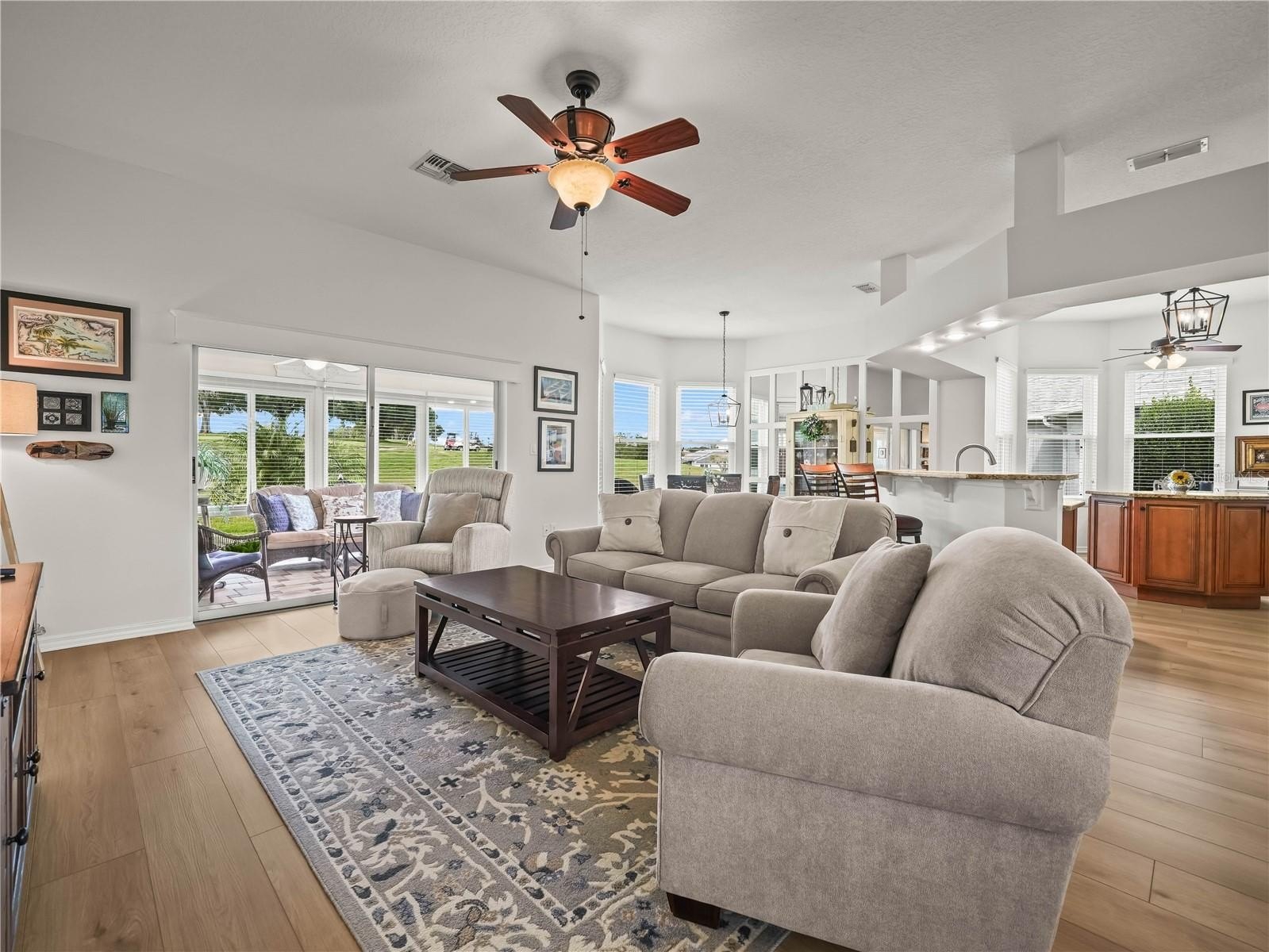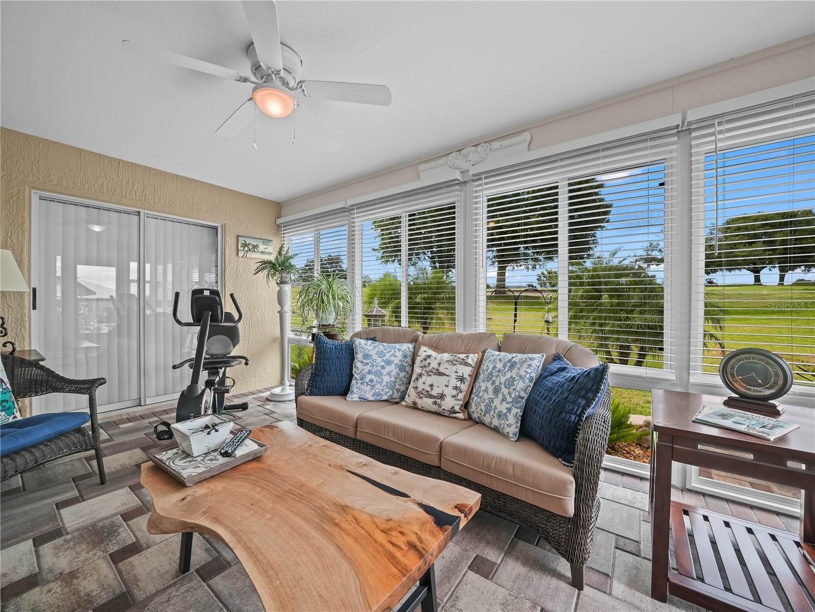 From the moment you arrive, you'll appreciate the brick paver driveway, sidewalk, and planter areas that add charm and curb appeal. Step inside and be greeted by golf course views through sliding glass doors that fill the home with natural light.