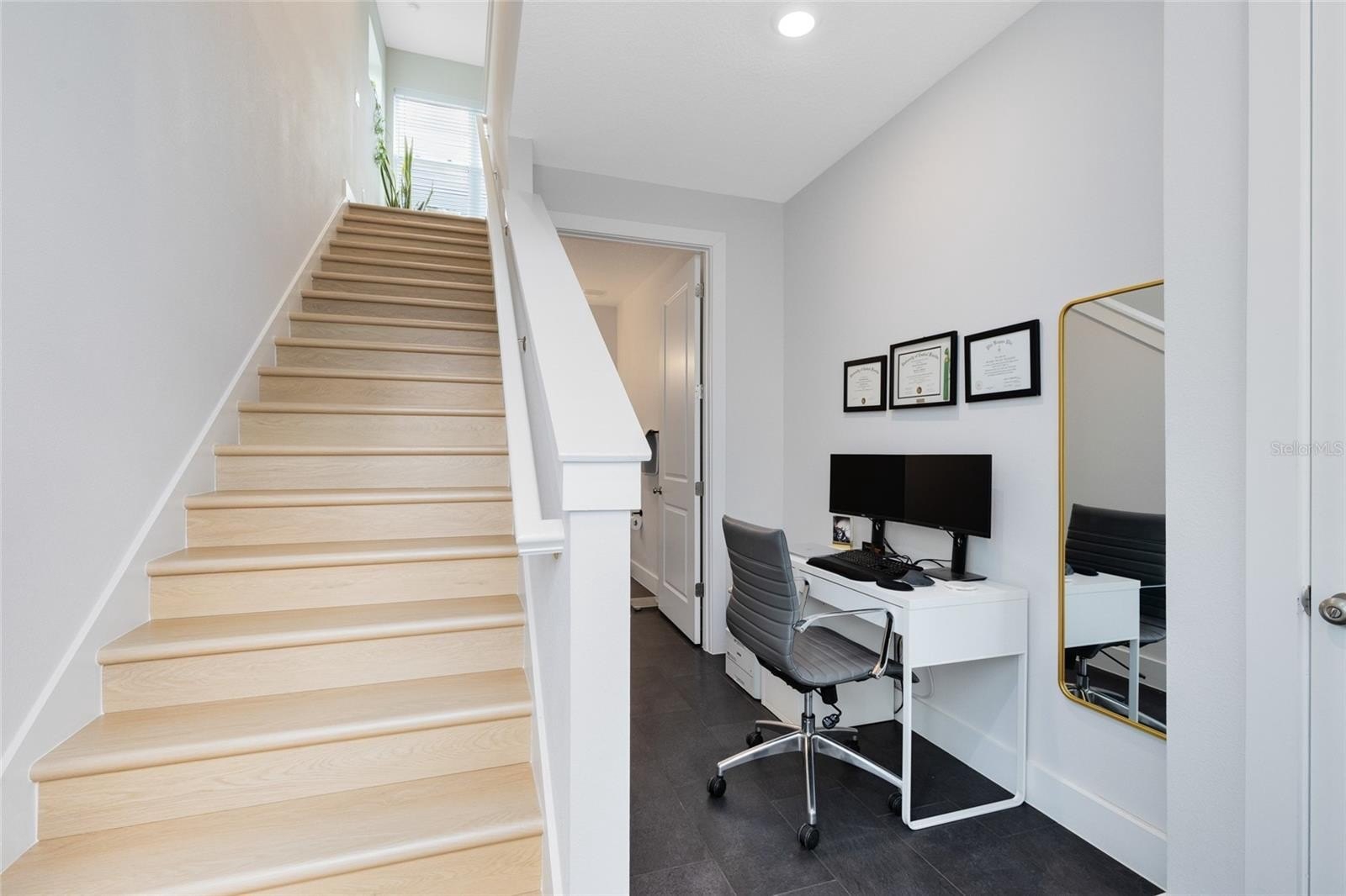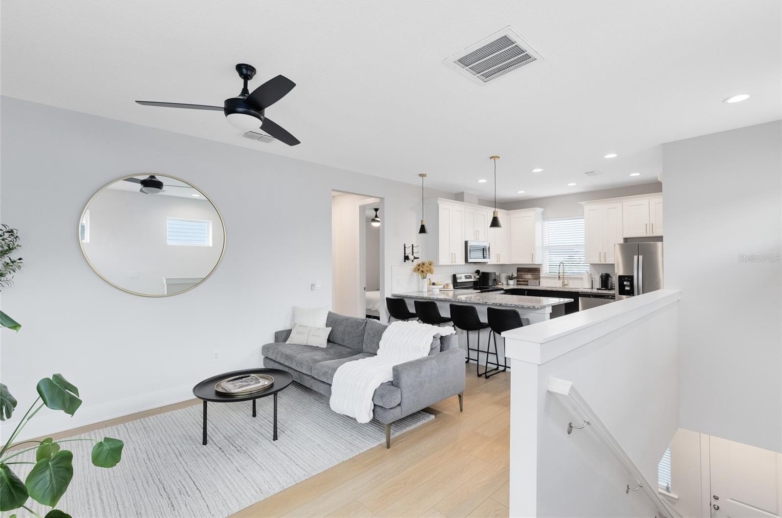 The garage apartment, custom-built in 2023, lives like its own home with a separate address, private entrance, electric meter, and mailbox. This 2 bed / 2 bath retreat features designer upgrades, Shaw LVP flooring, an office nook, a full-size eat-in kitchen, and a laundry/pantry combo. It’s ideal for guests, multi-generational living, or as an income-producing property.