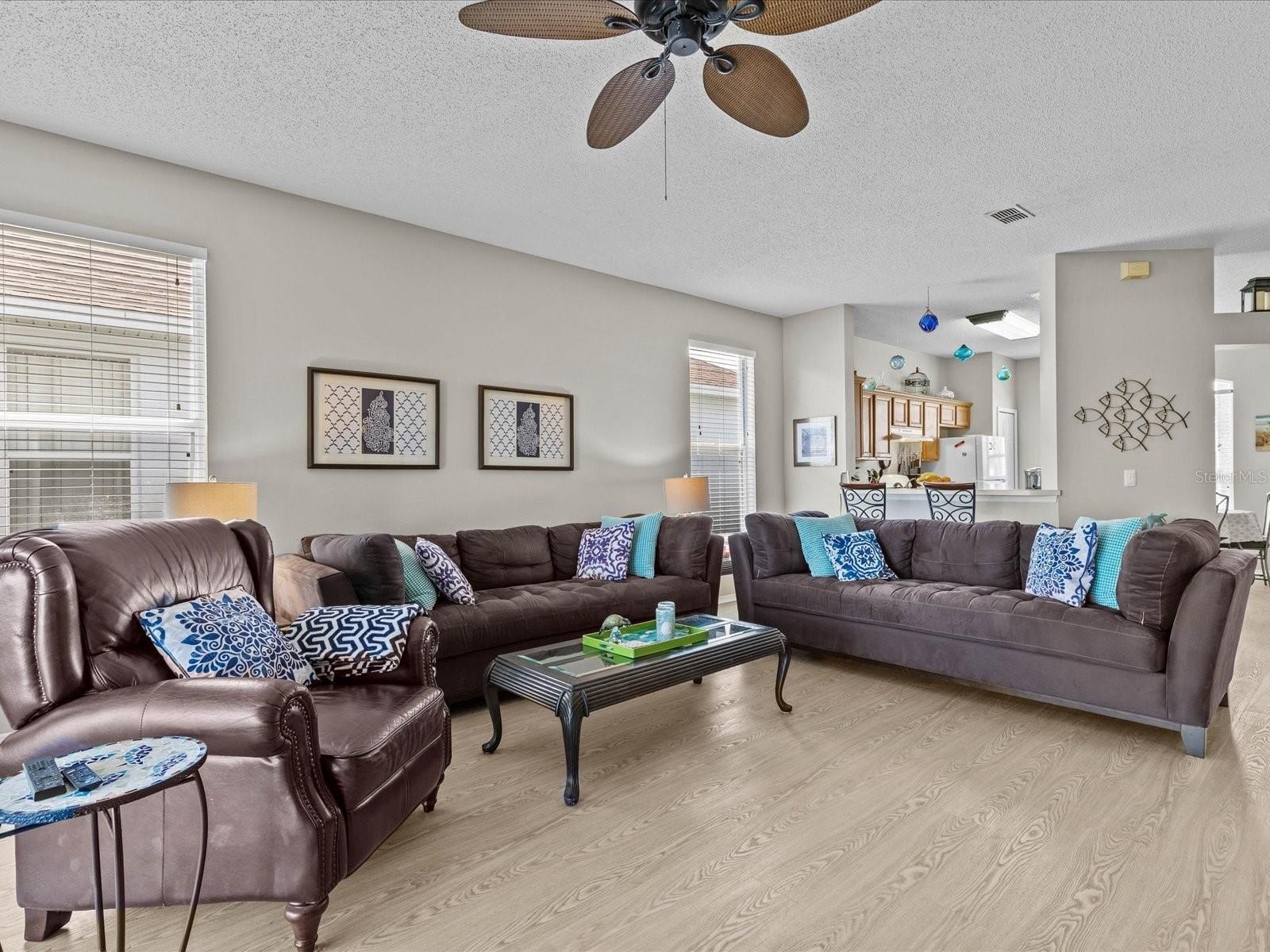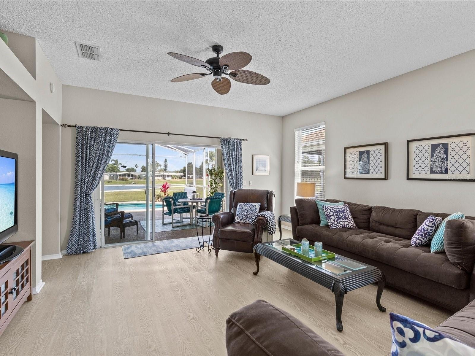 Step inside and be greeted by high ceilings, abundant natural light, and an open floor plan designed for both everyday living and effortless entertaining. Updates shine throughout, including new laminate flooring in the main living areas, a fully upgraded master bath, and a new pool heater (2023).