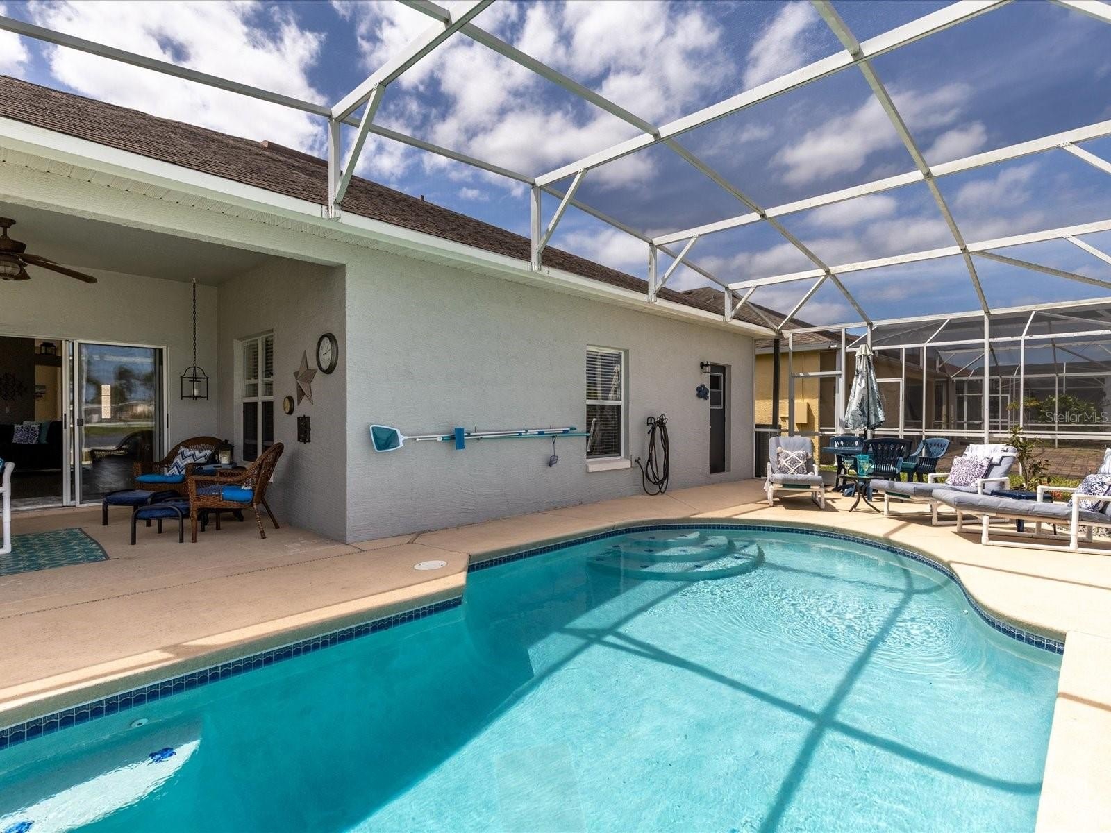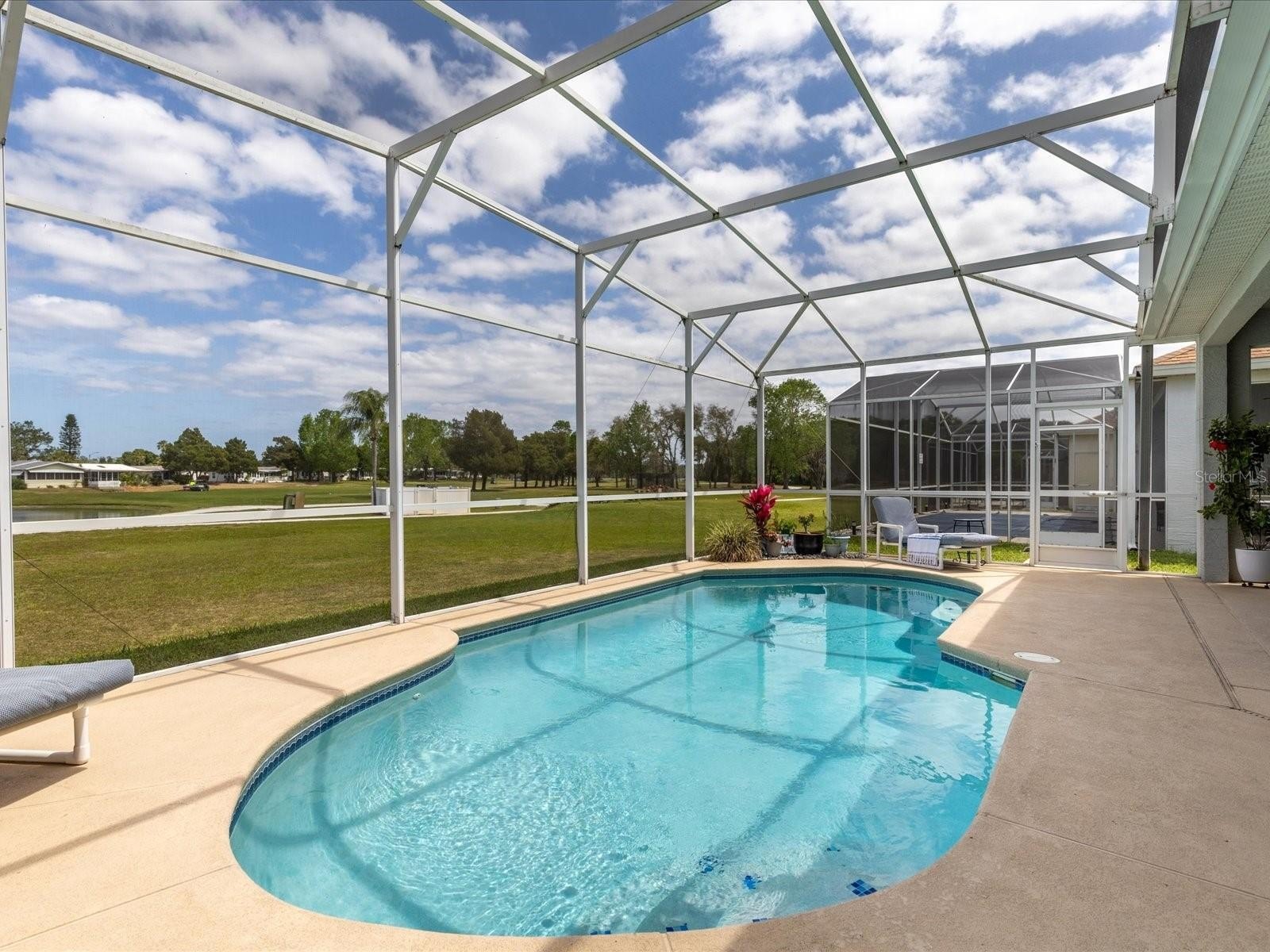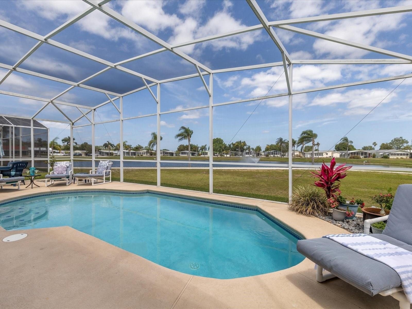 Enjoy the best of Florida living with your private heated pool and screened lanai, complete with outdoor dining and lounge space, plus convenient pool bath access. Relax and take in the tranquil golf and water views right from your backyard!