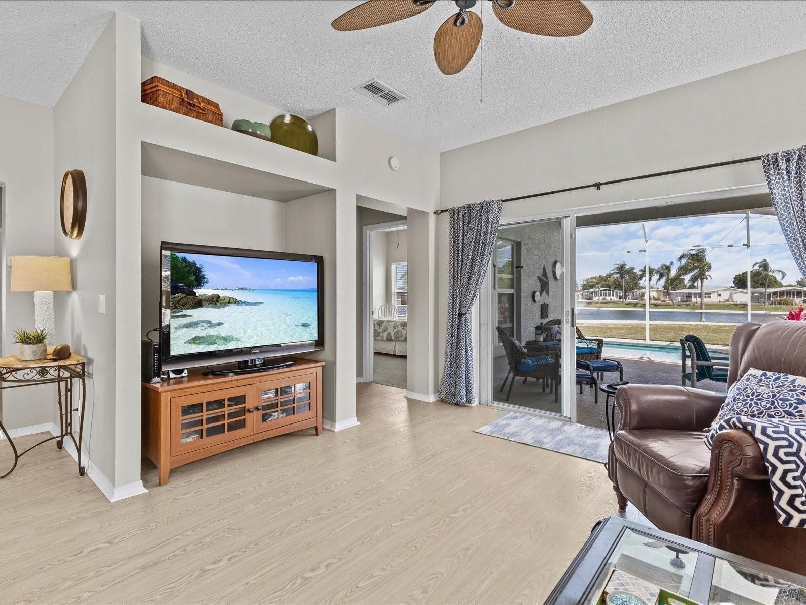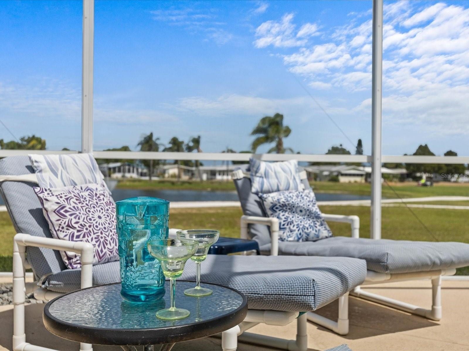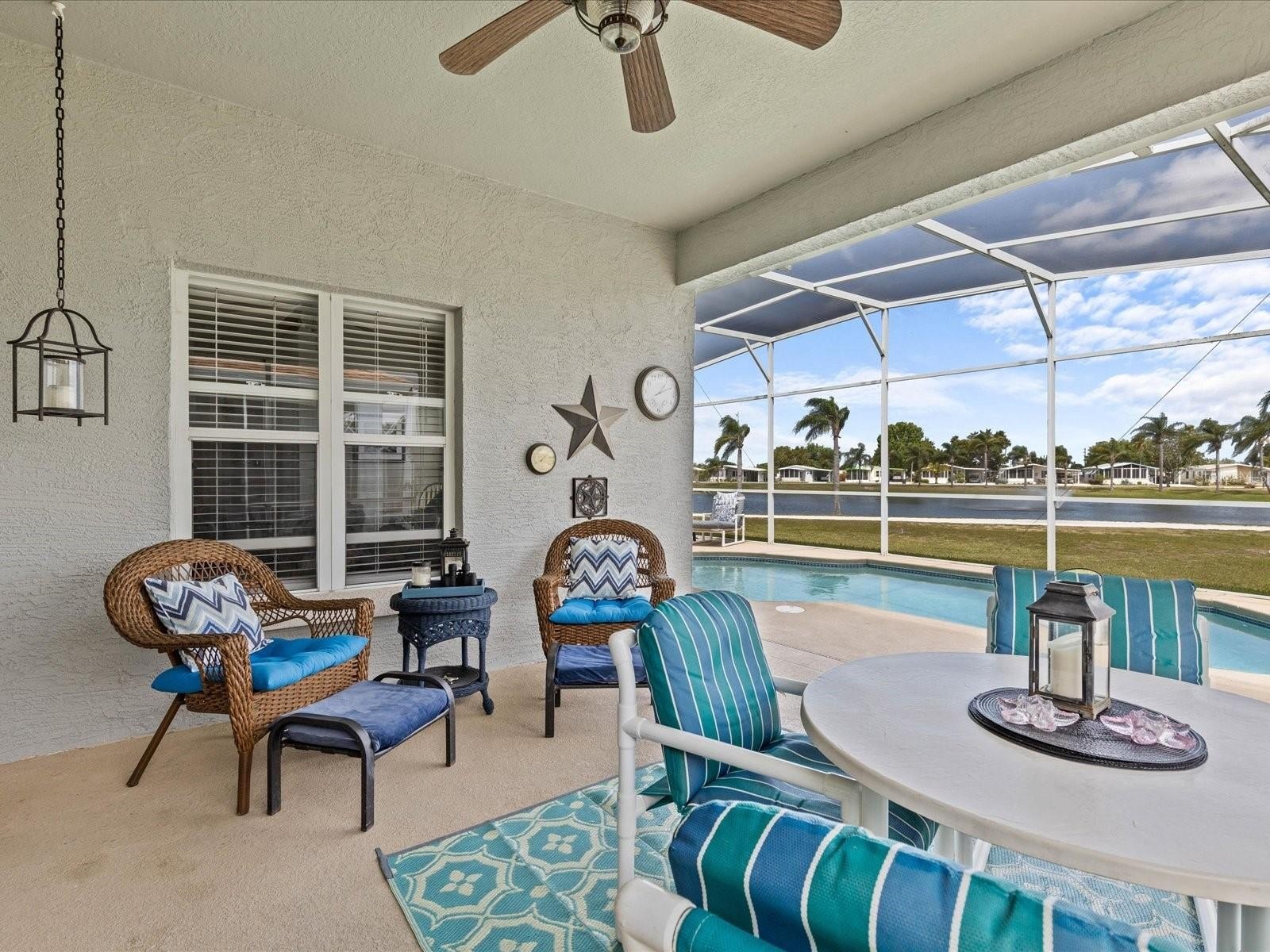 Enjoy the best of Florida living with your private heated pool and screened lanai, complete with outdoor dining and lounge space, plus convenient pool bath access. Relax and take in the tranquil golf and water views right from your backyard!
