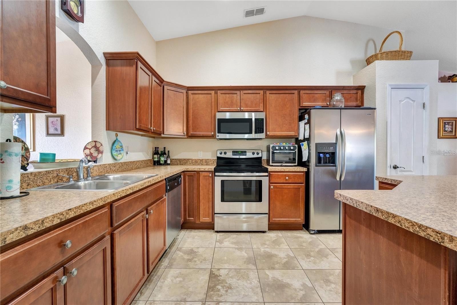 SELLER MOTIVATED! Needs to sell FAST! This this stunning custom-built 2014 home in a sought after and desirable gated community in Davenport, Florida called Crows Nest Estates. Tucked away on an oversized premium cul-de-sac lot, this 3-bedroom, 2-bath retreat was designed for both comfort and connection. Step inside and you’re greeted by vaulted ceilings, abundant natural light, and a flowing split floor plan that makes everyday living feel open and inviting. The spacious kitchen, with its large island, recessed lighting, and stainless steel appliances, is the heart of the home. Perfect for casual family meals or hosting friends. While the family room opens effortlessly to a screened lanai and sun deck, where you can unwind and enjoy Florida evenings overlooking your private backyard.