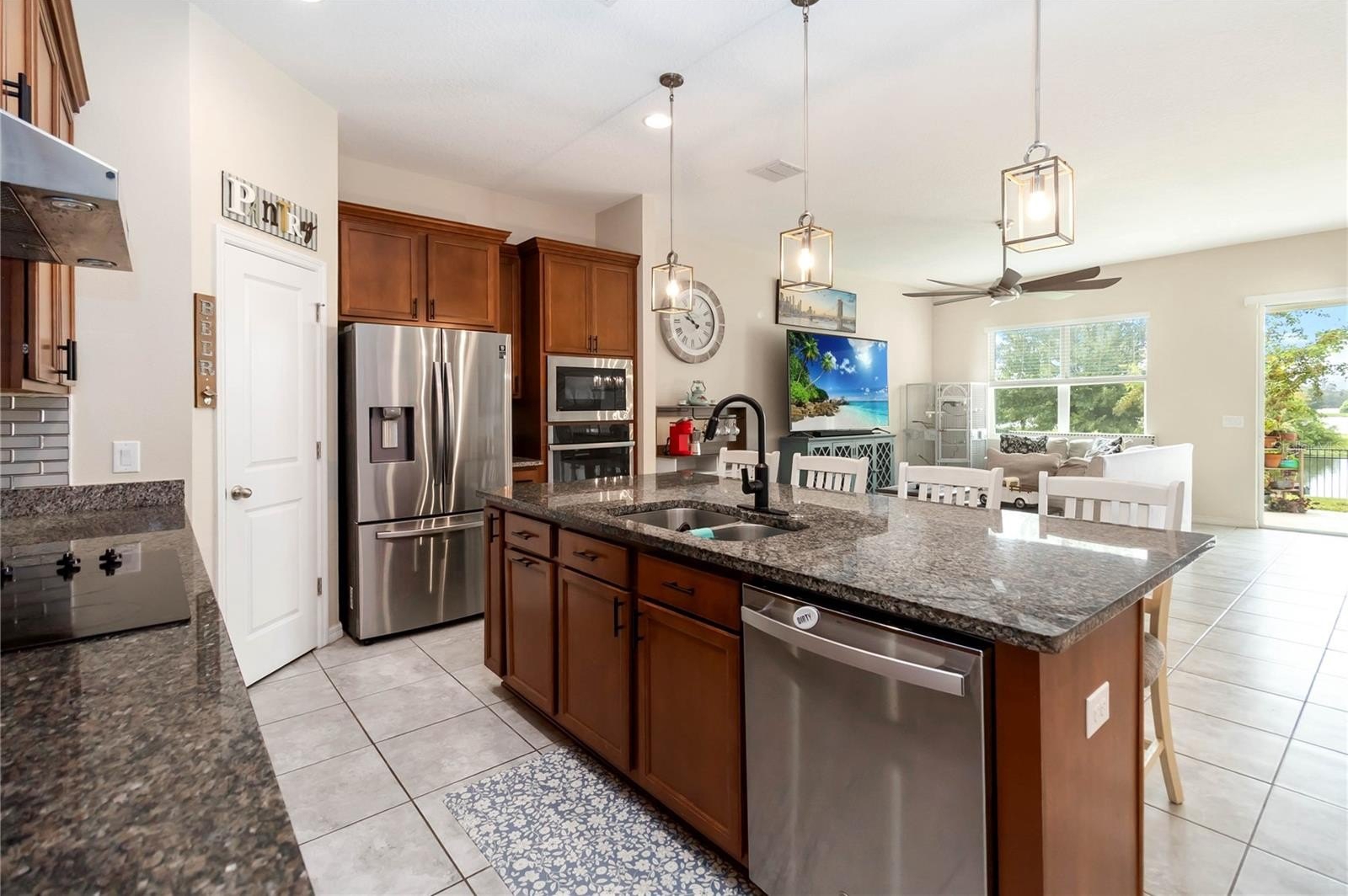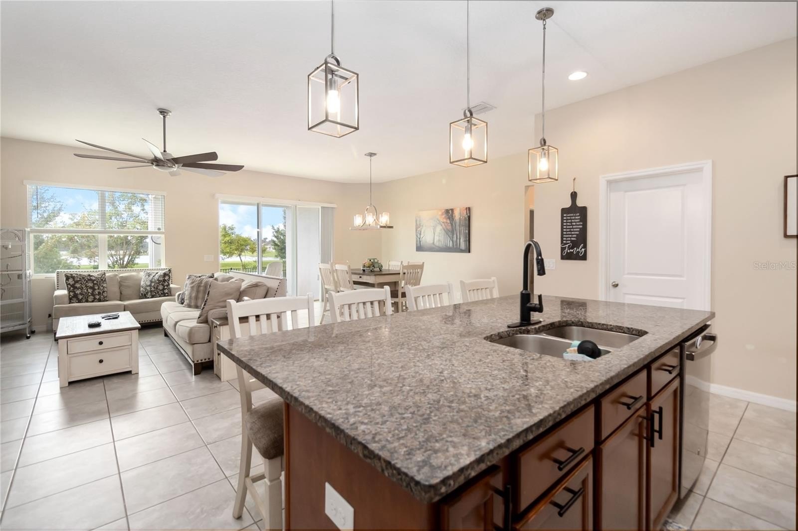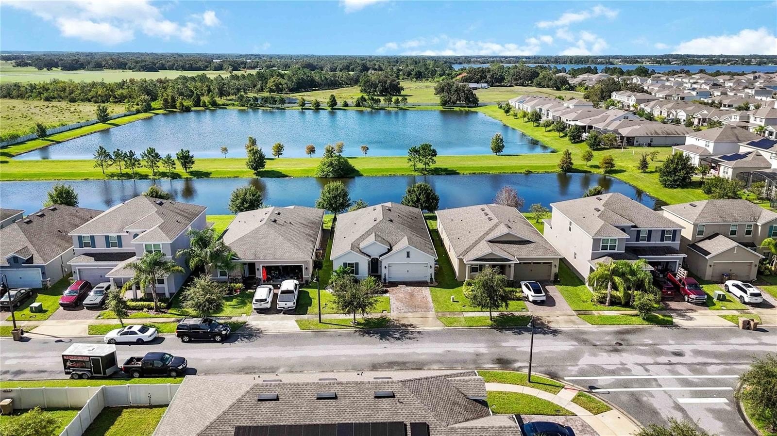 From the moment you step through the front door, you’ll be captivated by the breathtaking water view that carries through the great room, owner’s suite, covered patio, and backyard. Built in 2021, this 4-bedroom, 3-bath, 2-car garage home features a thoughtfully designed split floor plan with tall ceilings, tile floors in the main living areas, and cozy carpet in the bedrooms. At the rear of the home, the open-concept layout combines the great room, dining area, and a gourmet kitchen complete with granite countertops, two pantries, a spacious island with pendant lighting, and stainless steel appliances. Bedroom four offers its own private bathroom, making it an ideal guest suite, while a drop zone off the garage entrance and a dedicated laundry room add convenience. The community offers a resort-style pool, playground, and a low monthly HOA, all within an area that is booming with growth and zoned for top-rated schools. With easy access to I-92, you’re less than an hour from the beach, 30 minutes from Orlando International Airport, 40 minutes from Disney, and just 20 minutes from Lake Nona. Book your showing today!