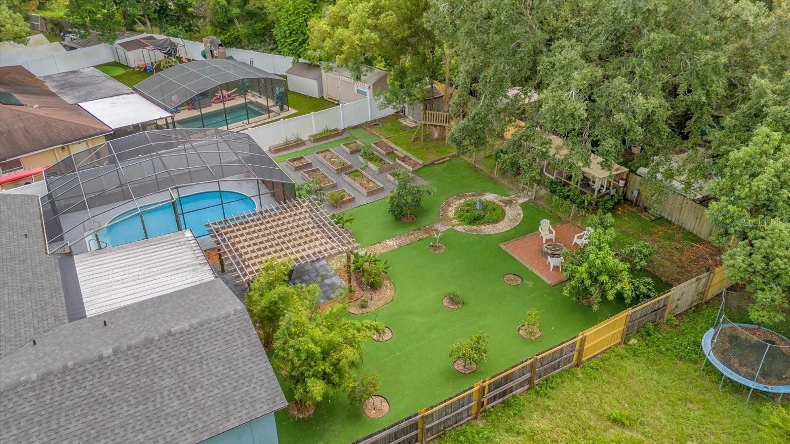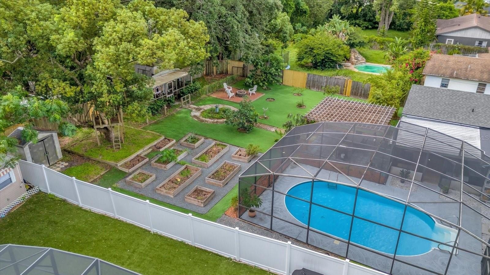 *Outdoor amenities galore* From fruit trees to a pool, a fire pit, and even a treehouse.