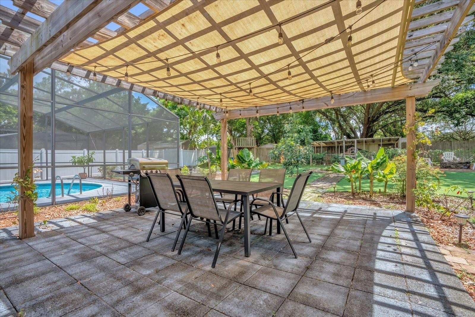 With a quarter-acre of lush wonder, the backyard is a show-stopper. Enjoy the Florida lifestyle year-round in the screened-in pool with covered lanai, or unwind beneath the covered pergola.