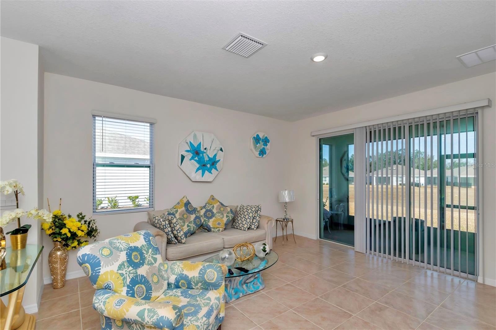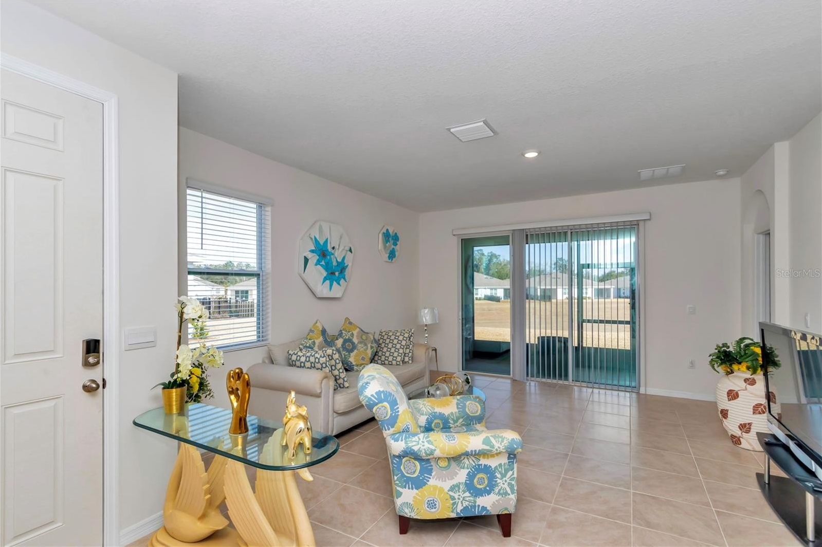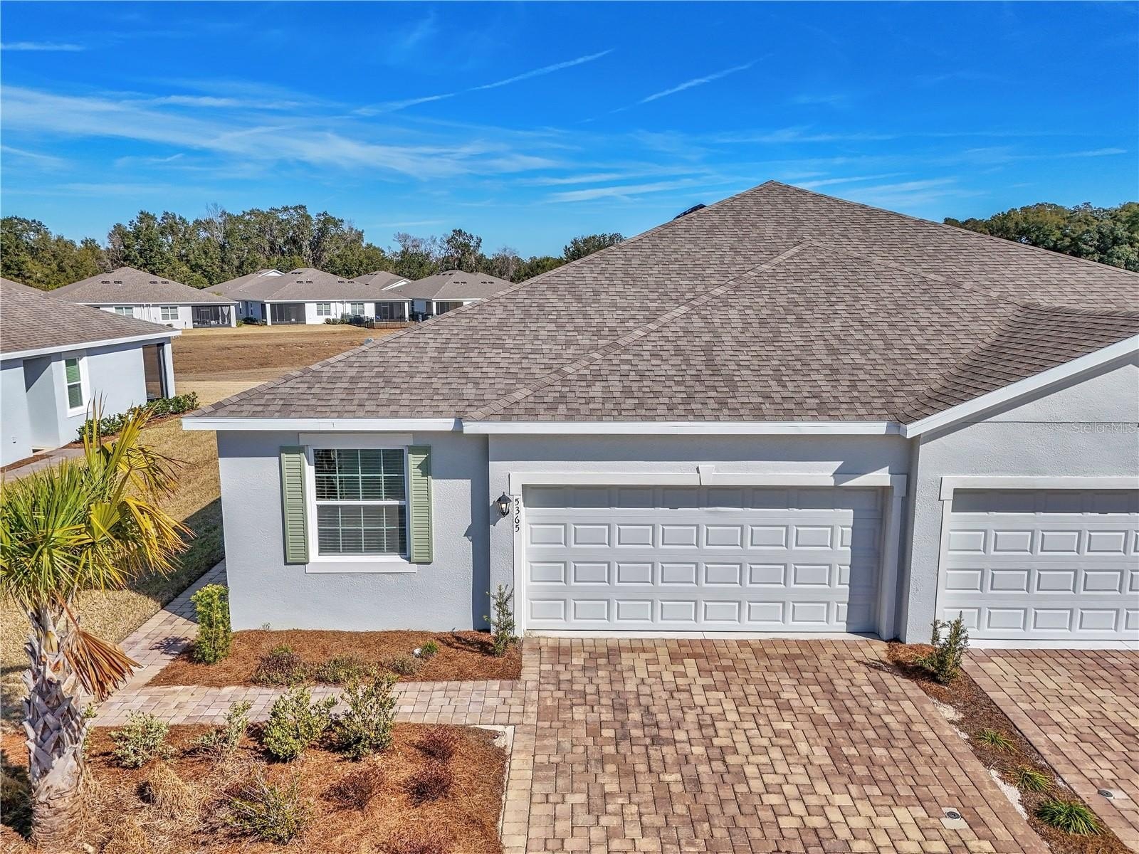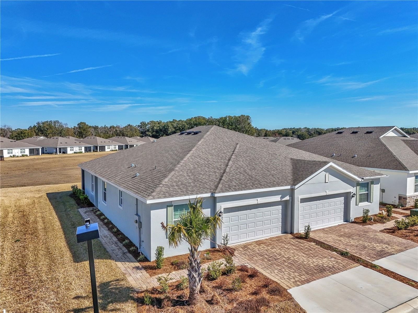 Ocala's Finest Resort-Style Living! Welcome to Ocala Preserve an exclusive, guard and gated 55+ community with loads of amenities for those who prefer finer things in life! This Siesta model by DR Horton features maintenance free living (lawn care and exterior maintenance included). Custom paver driveway and sidewalk lead to the end unit with side entry front door, open floor with spacious living room with high ceilings and triple sliding door to screened in lanai., this area leads to primary bedroom with tray ceilings in the far left back of home and primary bath with double vanities, granite countertops and tile surround with solid glass door shower with grab bars and walk in closet. Stepping back across the home you are greeted with dining area and large inviting kitchen with spacious island with room for 4 - 6 bar stools and sink. Granite countertops and stainless steel appliances as well as walk in pantry. The 3rd bedroom/office/den is off of kitchen and would also make a great hobby room with french doors. Heading towards front of home is the laundry closet, 2nd bedroom that shares the 2nd bath with the guests. The garage is a 2 car with garage door opener and is home to the 2023 hot water heater and 2023 Hvac system in ceiling as a space saver, 2023 architectural roof.