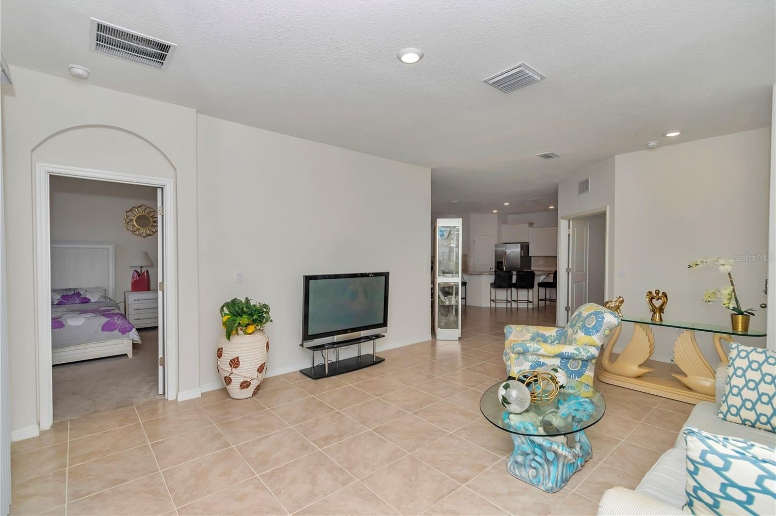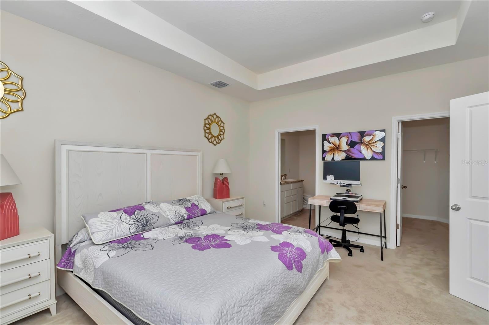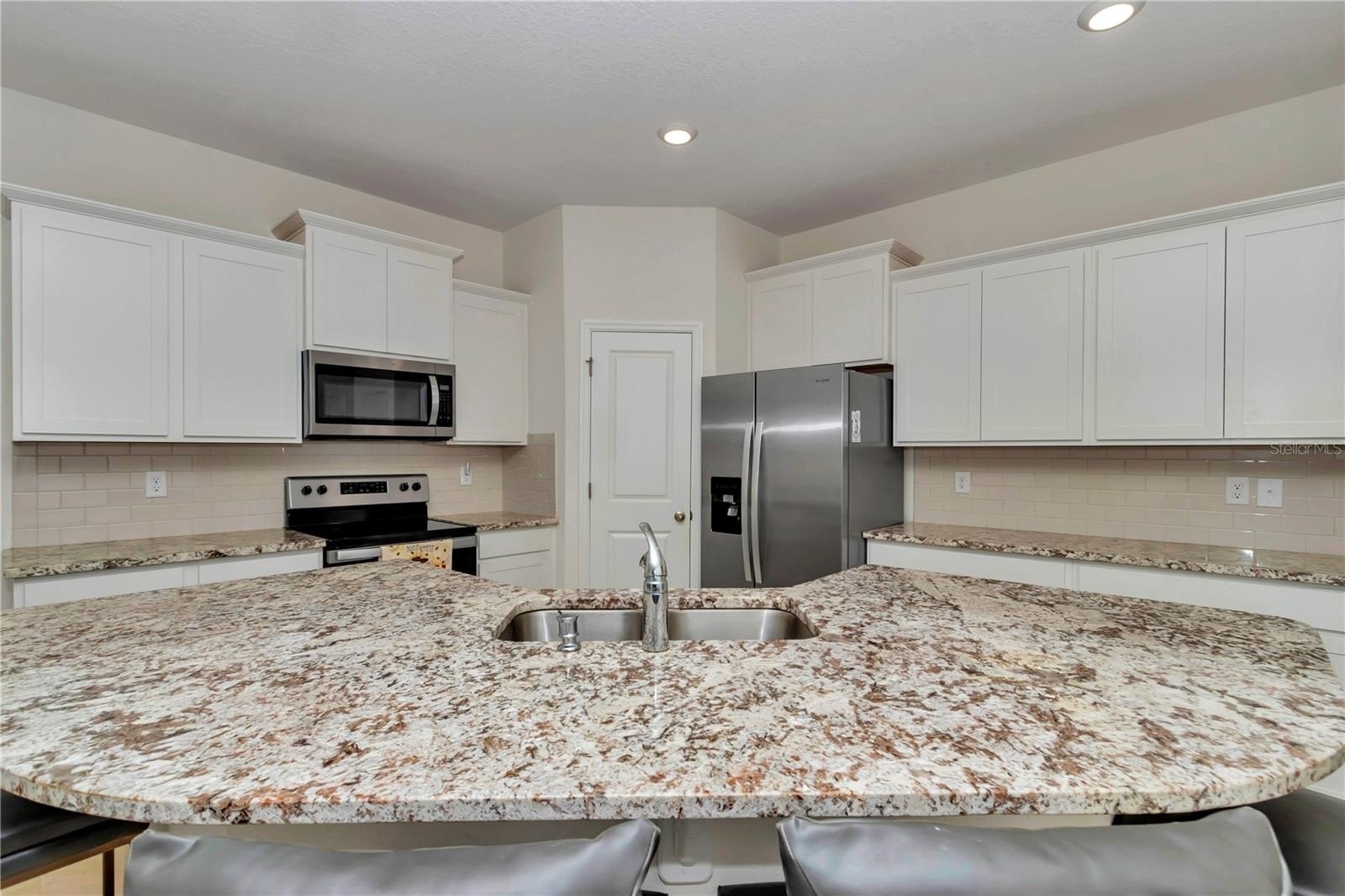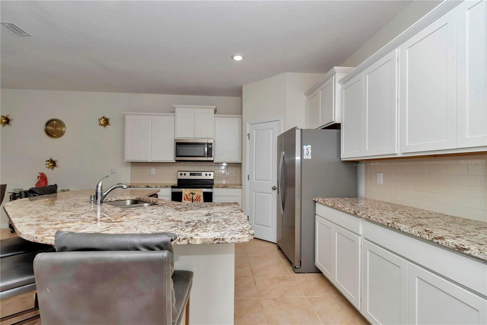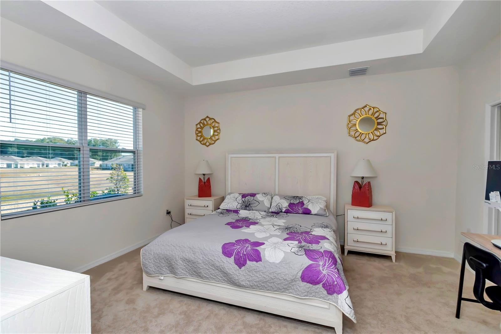 Ocala's Finest Resort-Style Living! Welcome to Ocala Preserve an exclusive, guard and gated 55+ community with loads of amenities for those who prefer finer things in life! This Siesta model by DR Horton features maintenance free living (lawn care and exterior maintenance included). Custom paver driveway and sidewalk lead to the end unit with side entry front door, open floor with spacious living room with high ceilings and triple sliding door to screened in lanai., this area leads to primary bedroom with tray ceilings in the far left back of home and primary bath with double vanities, granite countertops and tile surround with solid glass door shower with grab bars and walk in closet. Stepping back across the home you are greeted with dining area and large inviting kitchen with spacious island with room for 4 - 6 bar stools and sink. Granite countertops and stainless steel appliances as well as walk in pantry. The 3rd bedroom/office/den is off of kitchen and would also make a great hobby room with french doors. Heading towards front of home is the laundry closet, 2nd bedroom that shares the 2nd bath with the guests. The garage is a 2 car with garage door opener and is home to the 2023 hot water heater and 2023 Hvac system in ceiling as a space saver, 2023 architectural roof.
