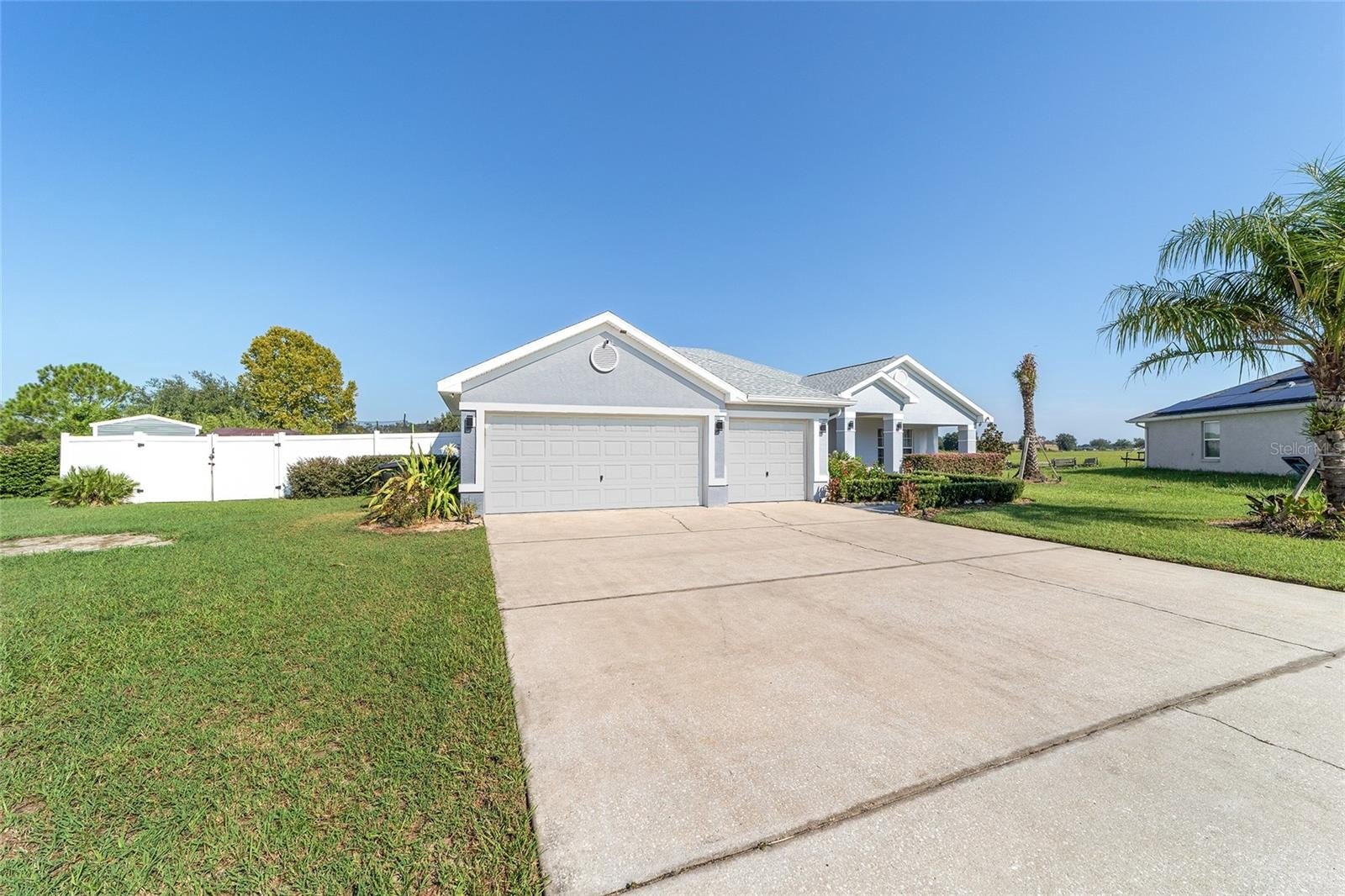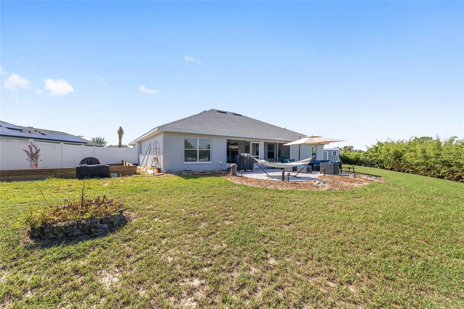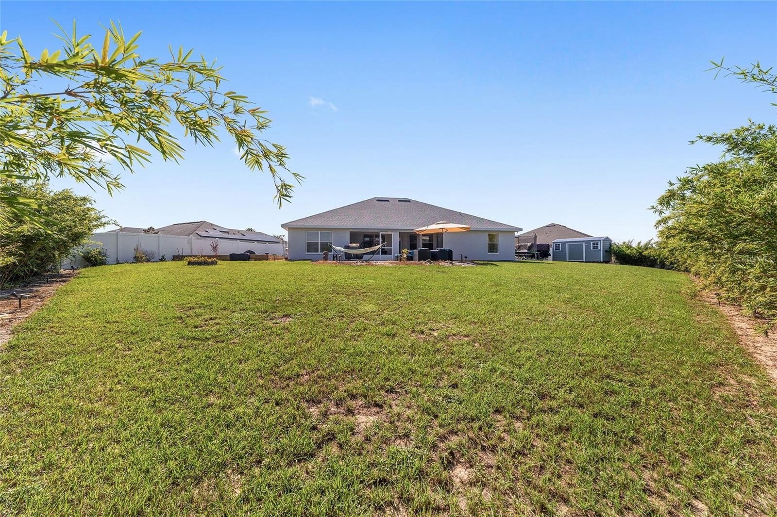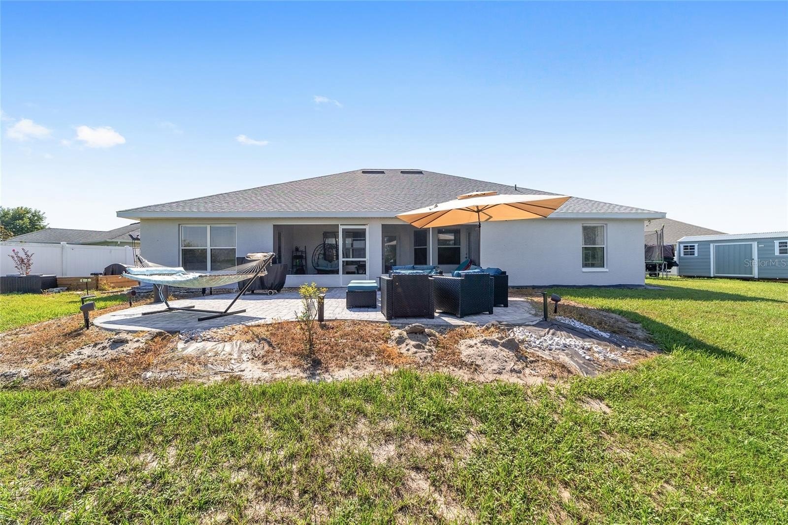 The Spacious Primary Suite features private lanai access, dual walk-in closets, dual vanities, a walk-in shower, and a soaking tub. The additional bedrooms and baths are thoughtfully designed for comfort and functionality. The 3rd Bathroom offers access to the lanai. The Den is perfect for a Home Office or Flex Space. Enjoy Florida living outdoors with a Screened Lanai, a Paved Patio for grilling and outdoor entertaining, and a Large Vinyl-Fenced Backyard with a Double Gate—perfect for storing a boat. An 8x16 Shed provides additional storage. The Long Driveway and 3-Car Garage ensure plenty of parking and space for storage or a workshop. Other highlights include a Laundry Room with Built-In Shelving, and a Low HOA. Meadow Glenn offers an unbeatable location with easy access to shopping (Publix just minutes away), dining, schools, and medical facilities. 45 min commute to Gainesville and 1 hr 30 min to Orlando. Schedule Your Private Showing Today! This home qualifies for 100% financing!