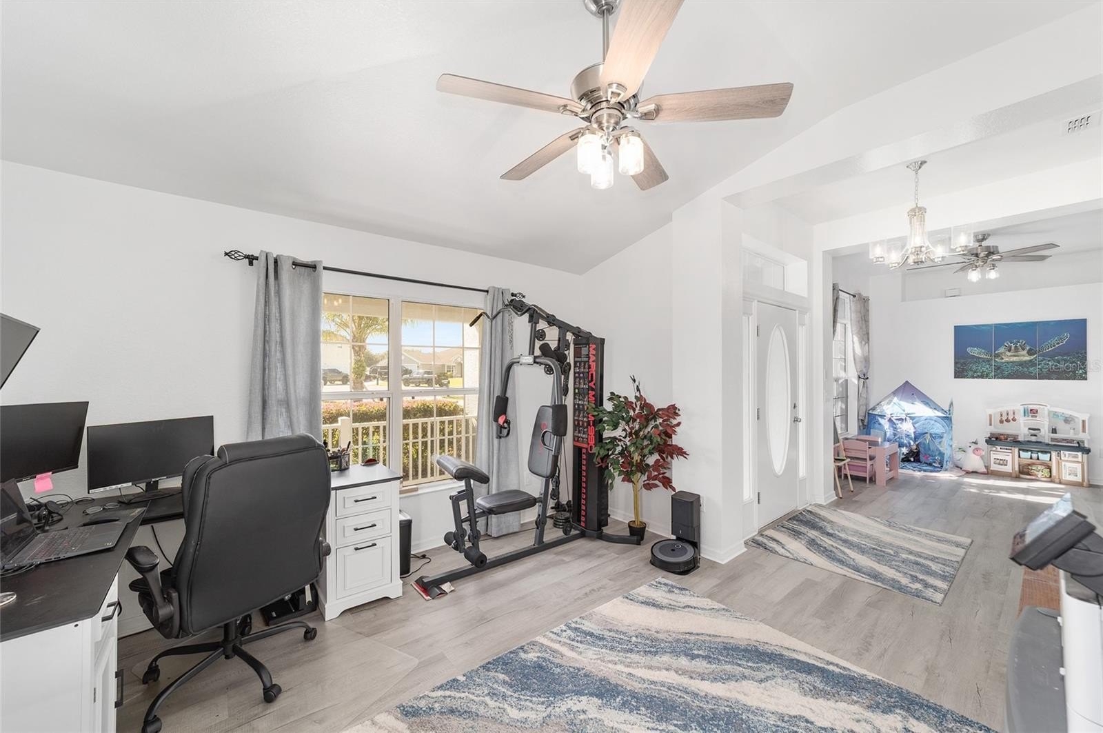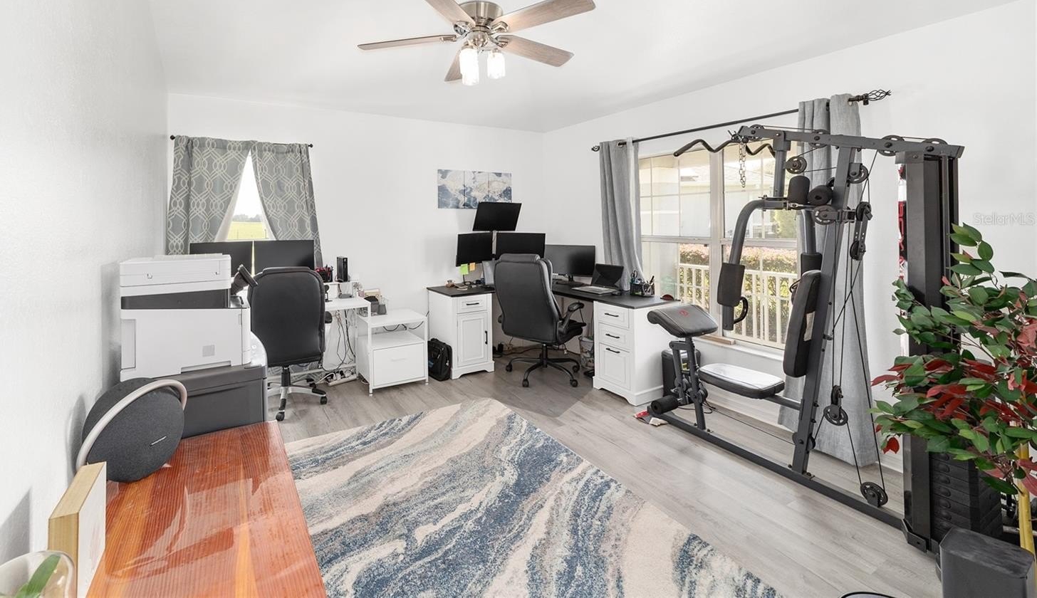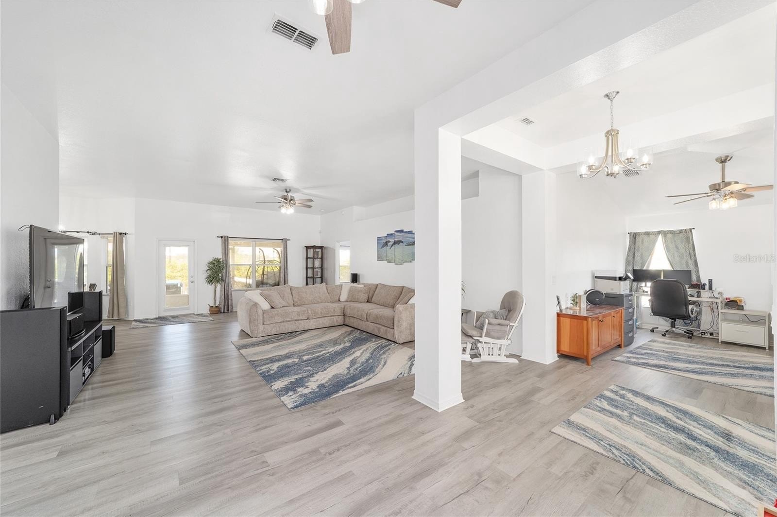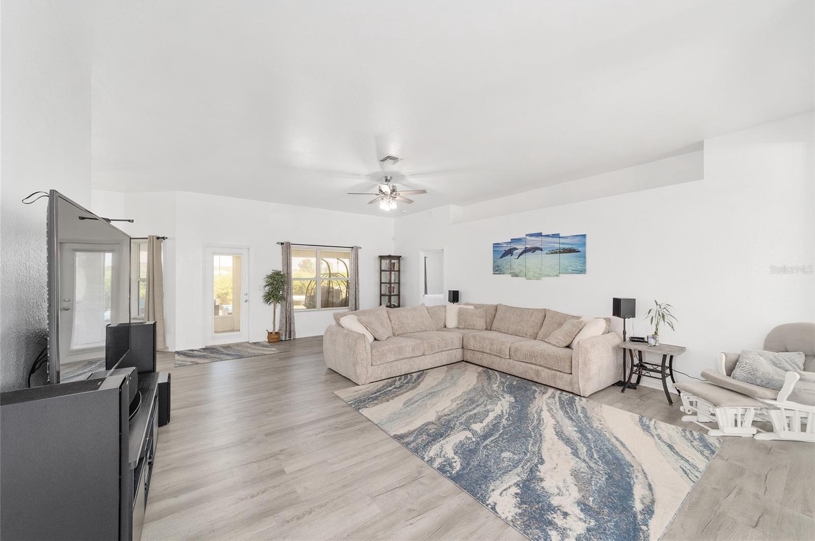 The Spacious Primary Suite features private lanai access, dual walk-in closets, dual vanities, a walk-in shower, and a soaking tub. The additional bedrooms and baths are thoughtfully designed for comfort and functionality. The 3rd Bathroom offers access to the lanai. The Den is perfect for a Home Office or Flex Space. Enjoy Florida living outdoors with a Screened Lanai, a Paved Patio for grilling and outdoor entertaining, and a Large Vinyl-Fenced Backyard with a Double Gate—perfect for storing a boat. An 8x16 Shed provides additional storage. The Long Driveway and 3-Car Garage ensure plenty of parking and space for storage or a workshop. Other highlights include a Laundry Room with Built-In Shelving, and a Low HOA. Meadow Glenn offers an unbeatable location with easy access to shopping (Publix just minutes away), dining, schools, and medical facilities. 45 min commute to Gainesville and 1 hr 30 min to Orlando. Schedule Your Private Showing Today! This home qualifies for 100% financing!