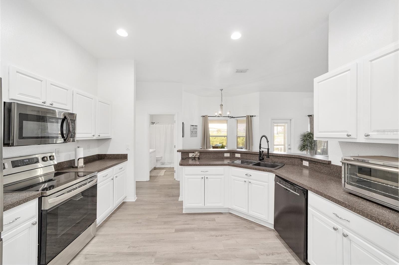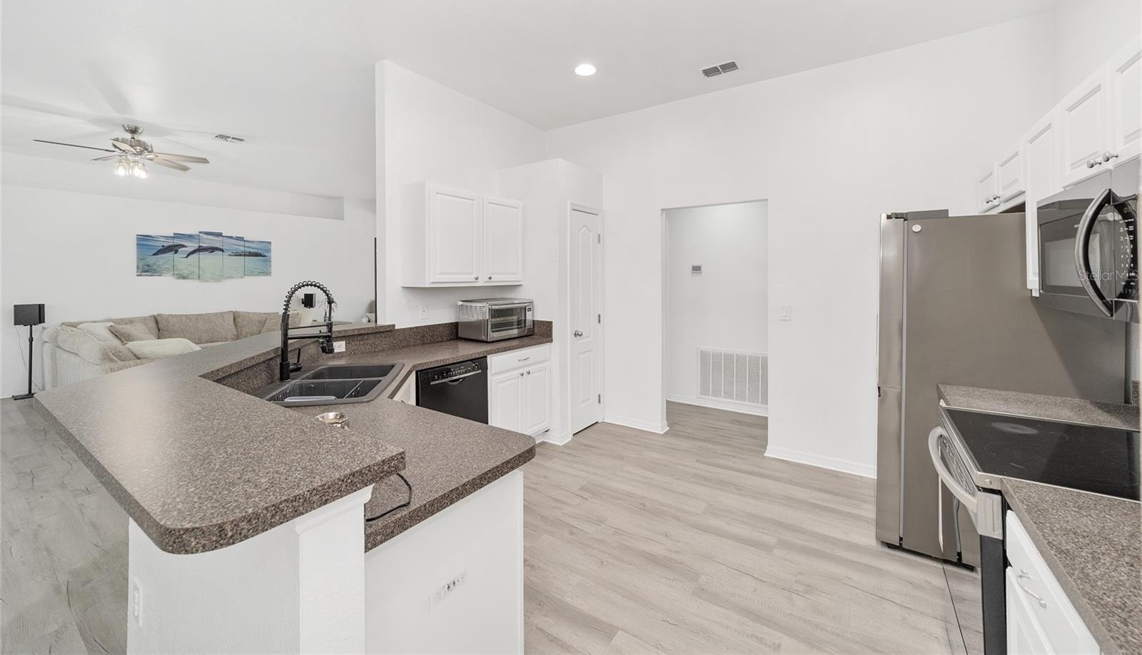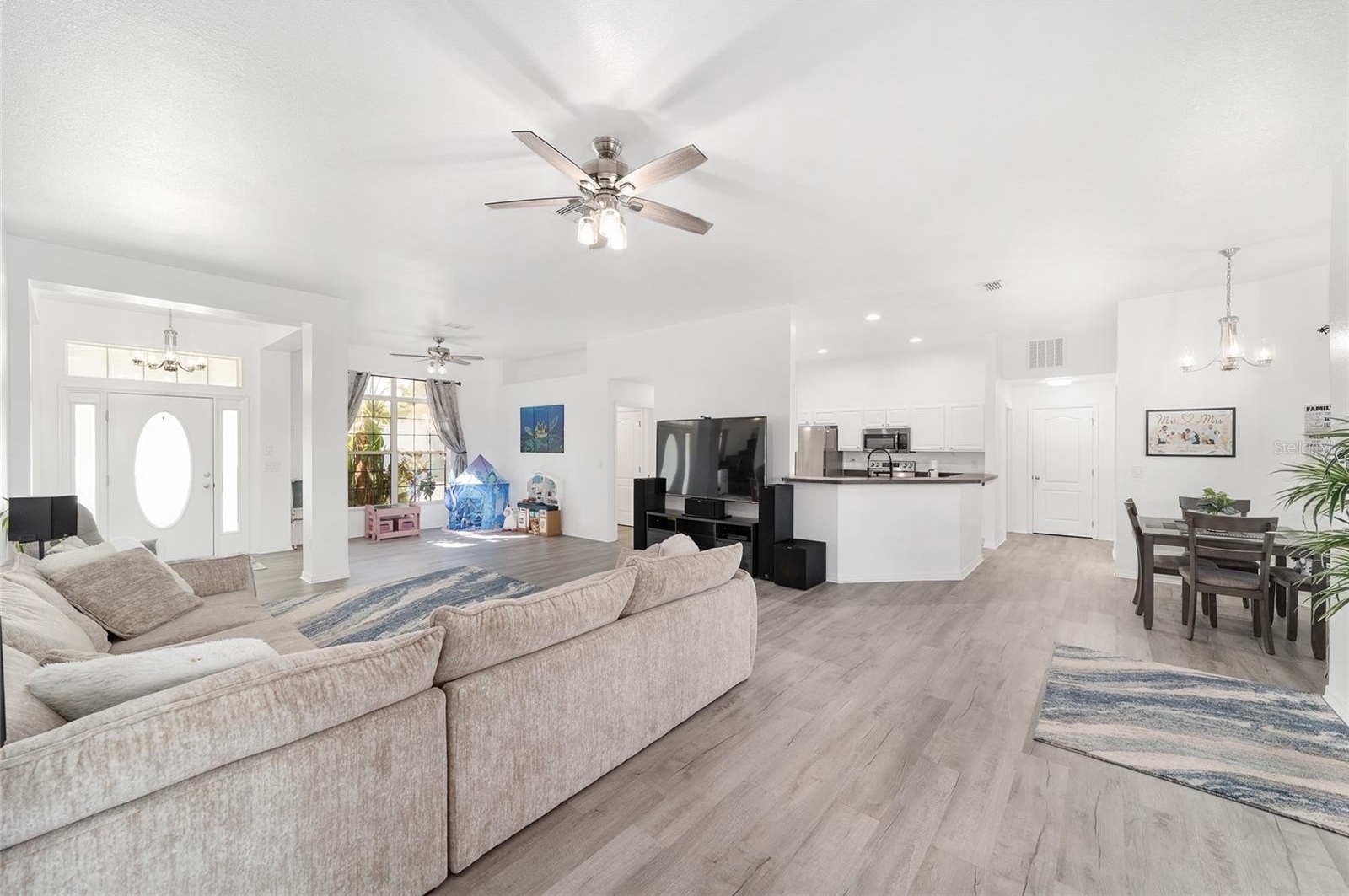 After walking through the Welcoming Front Porch, you will step inside to an Open Floor Plan with a freshly renovated interior. Updates include New Exterior Paint, a BRAND NEW ROOF (2025), New Water Heater (2025), Newer AC (2017), Luxury Vinyl Plank Flooring in the main living areas, New Carpet in bedrooms, Updated Kitchen, Modern Fixtures, and Stylish Ceiling Fans throughout. A Whole-House Water Filtration and Softener System (2024) adds even more value.