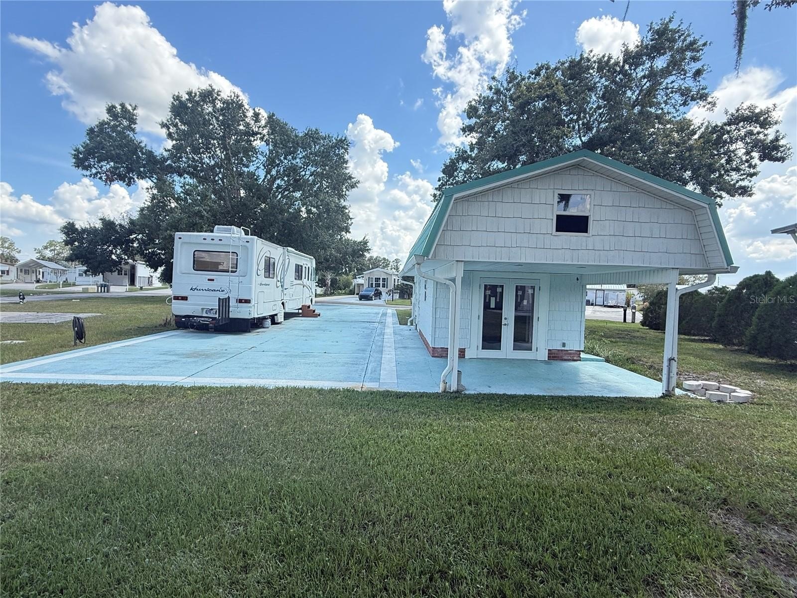 The lot includes a nice, air-conditioned casita with a bathroom, washer, dryer, and a cozy living area with two lofts. It's a perfect place to relax after a fun day! There’s also a covered porch and enough space for a manufactured home and an RV port, giving you plenty of options.