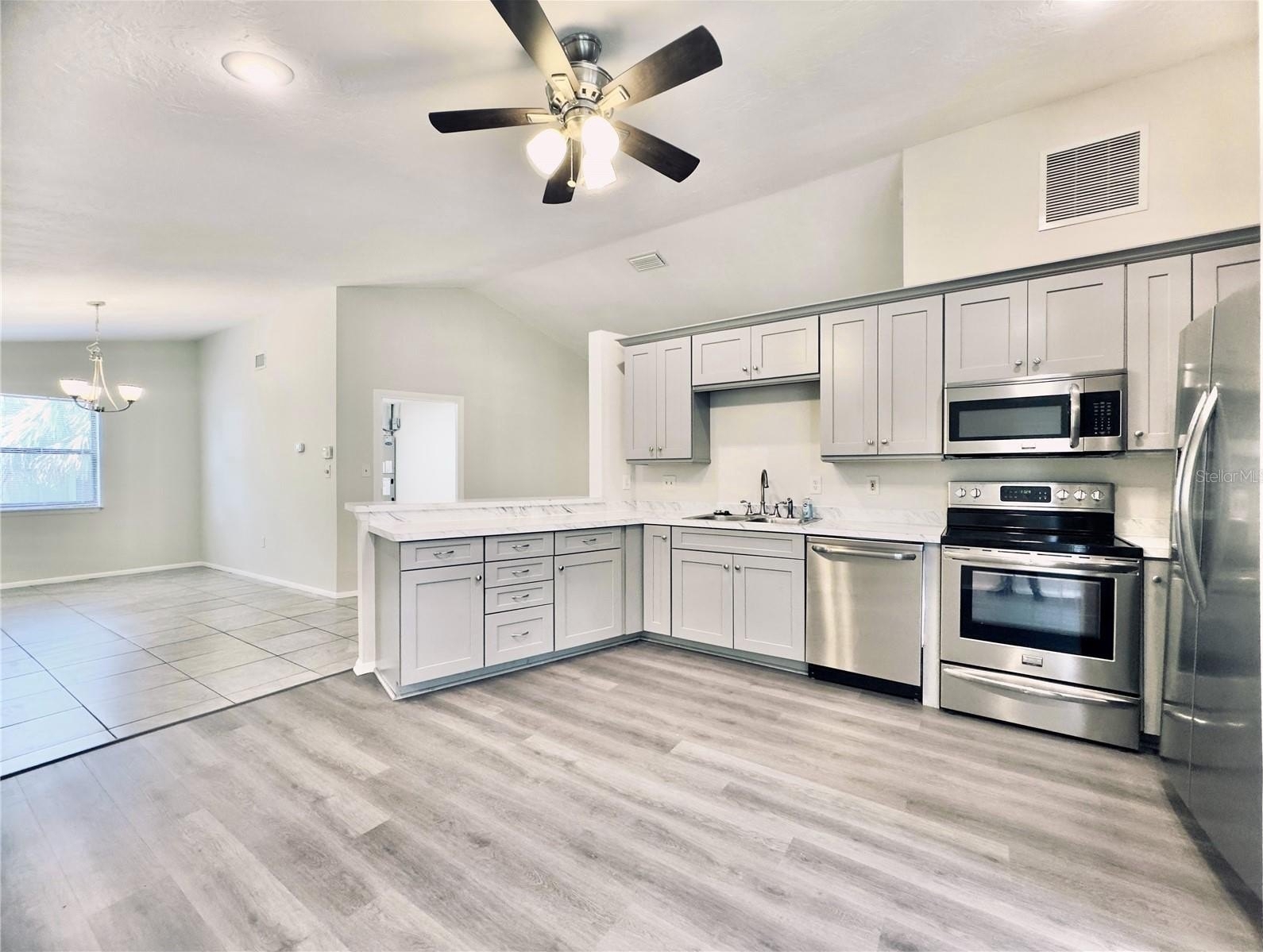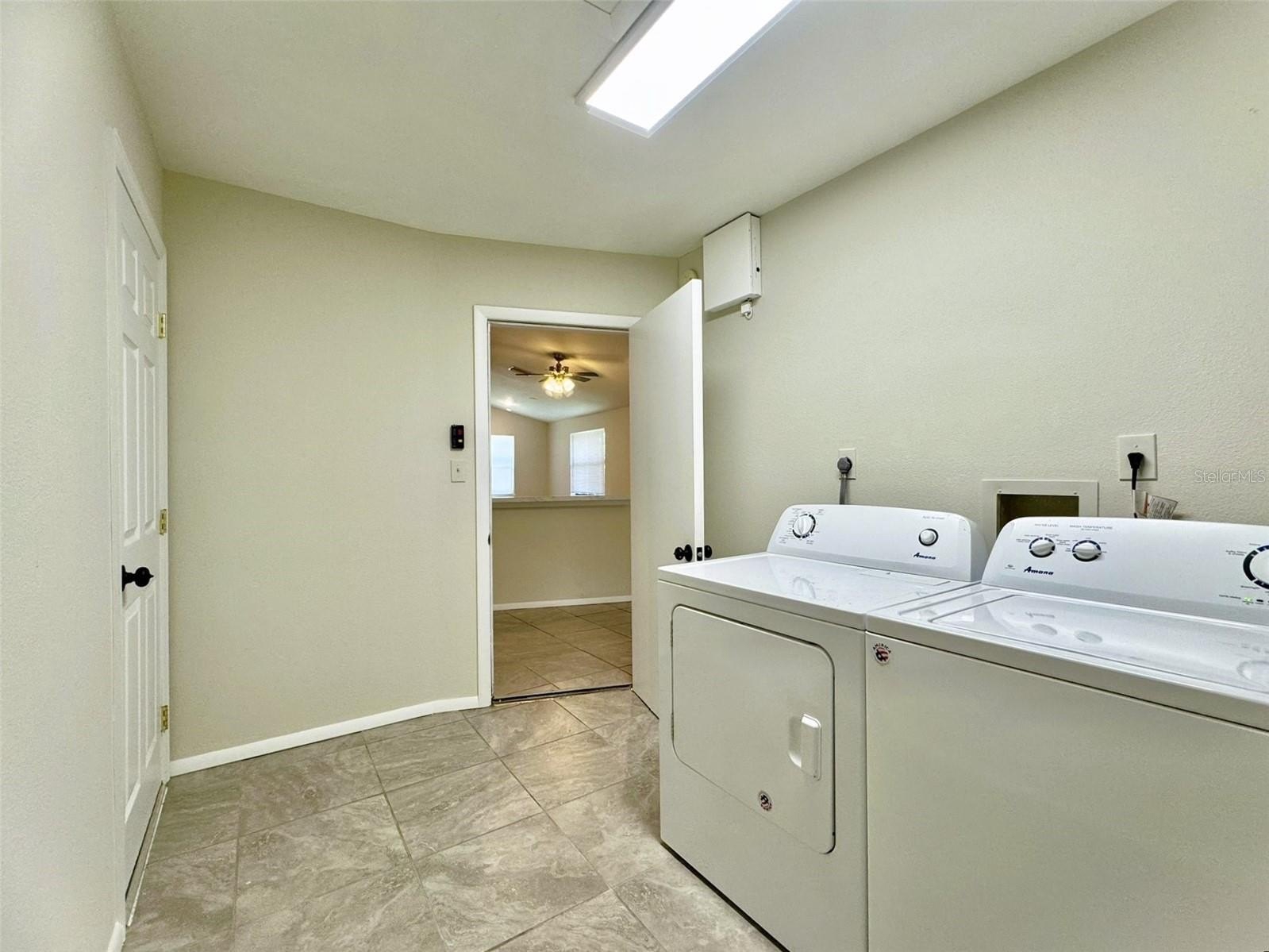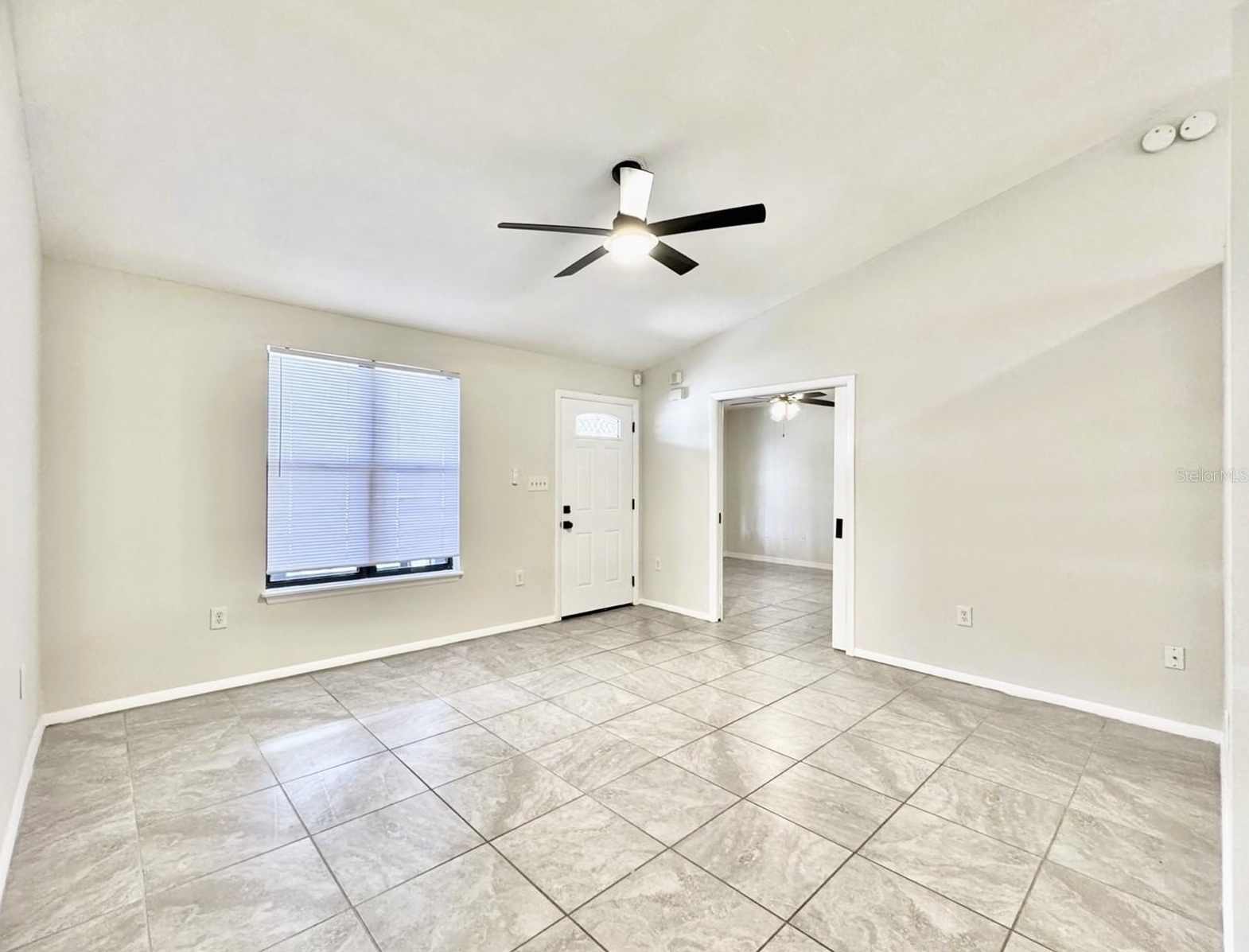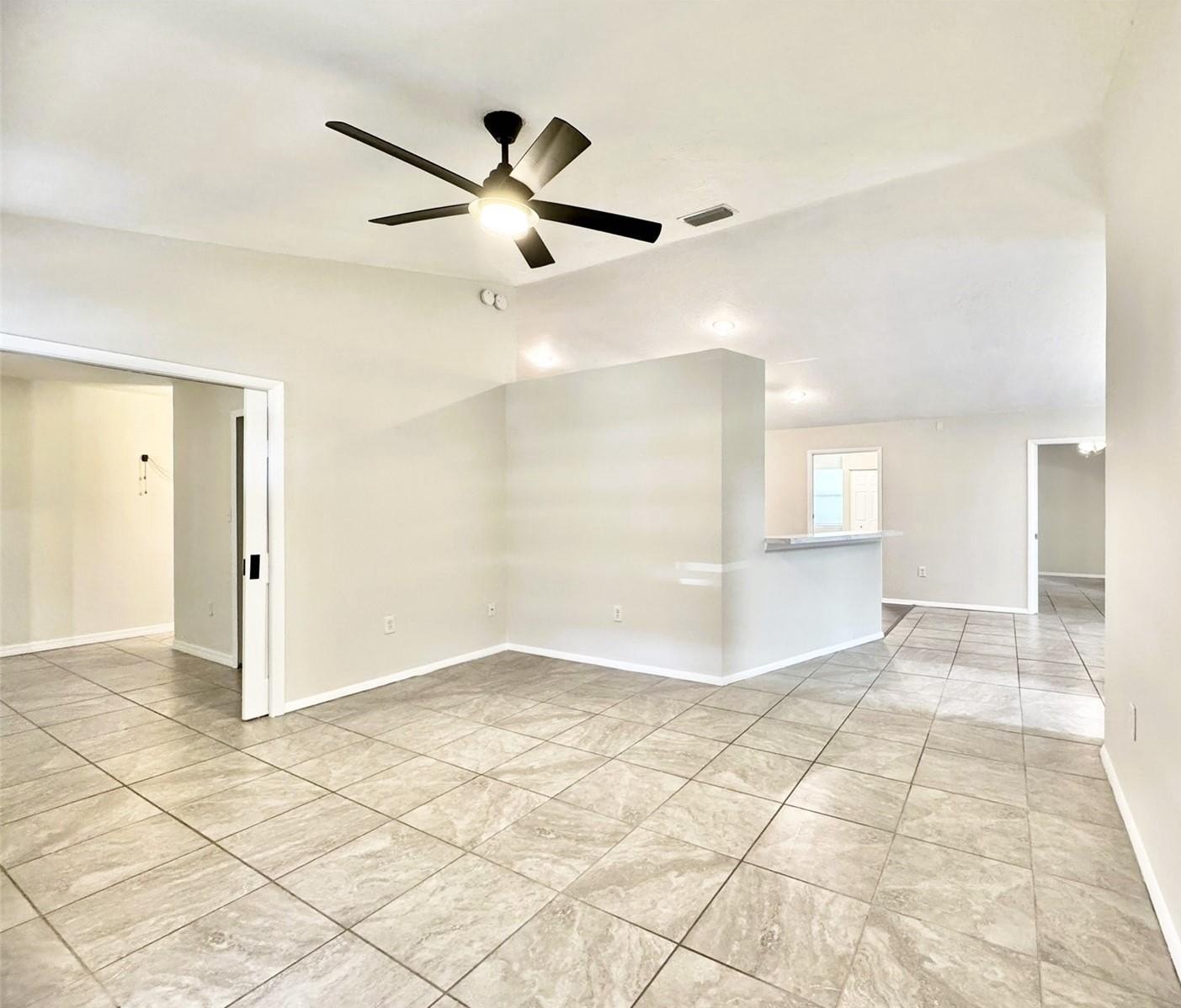One or more photo(s) has been virtually staged. Nestled under graceful oak tree canopies, this charming 3-Br/2-Ba home, welcomes you with a cozy covered front porch. Step inside to soaring living room ceilings & a large eat-in kitchen, complete with a breakfast bar, stainless appliances, a pantry closet, and space for a center island, perfect for family meals or entertaining. The home flows into a separate dining room, a family room, an indoor utility room, and a small office with a private rear entrance, ideal for work or hobbies. The primary suite is located on the first floor & features a walk-in closet and an updated en-suite bathroom, while the bright upstairs third bedroom offers ample built-in closets with mirrored sliders.