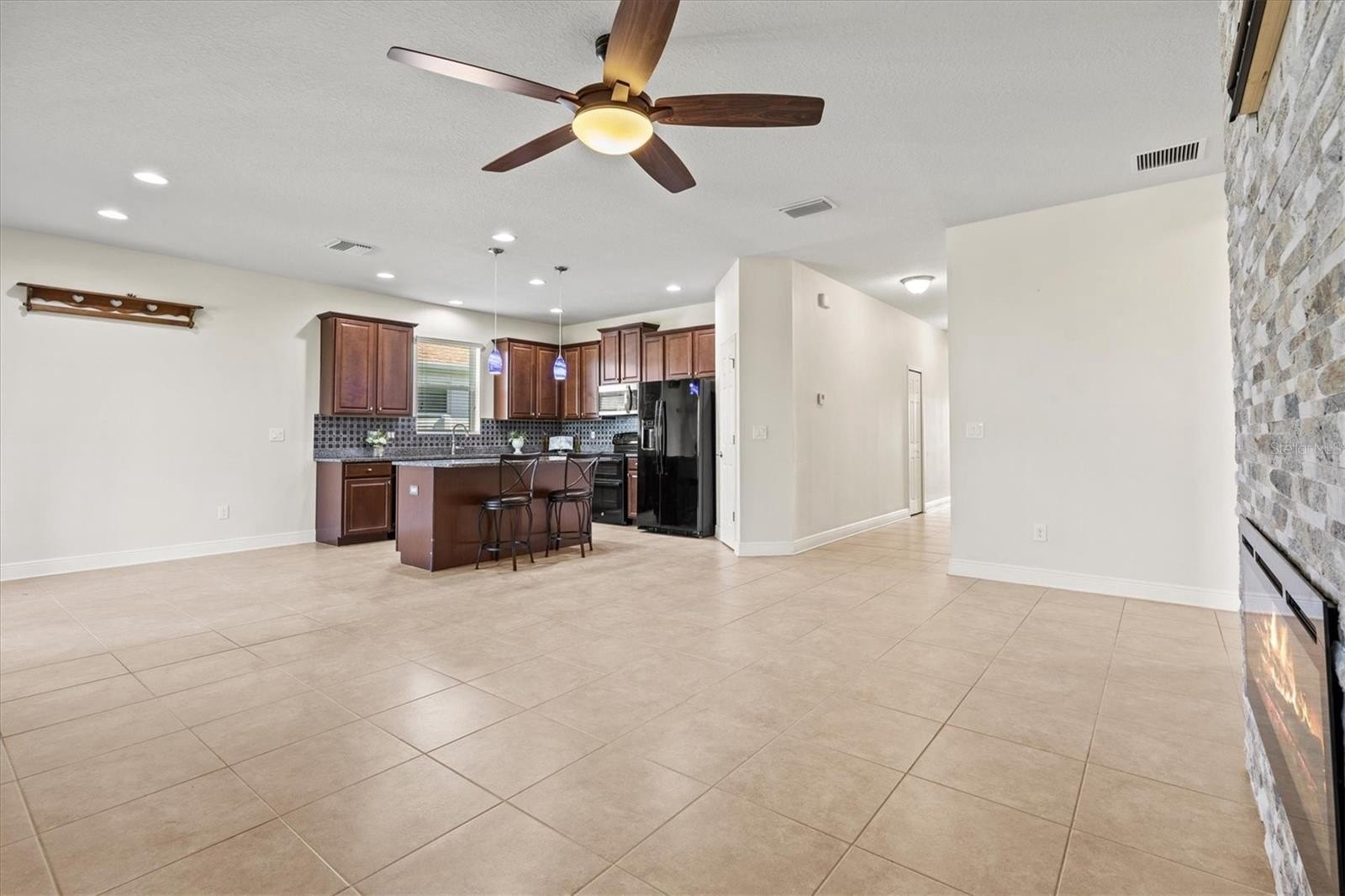 Welcome to 7923 111th Terrace E, Parrish, FL 34219 – a beautifully maintained 4-bedroom, 2-bathroom home located in the gated Copperstone community. Built in 2014, this 1,863 sq ft home features a bright open floor plan with tile flooring throughout, an elegant electric fireplace, and a spacious kitchen with 42" cabinets, tile backsplash, large center island, and double oven range.
