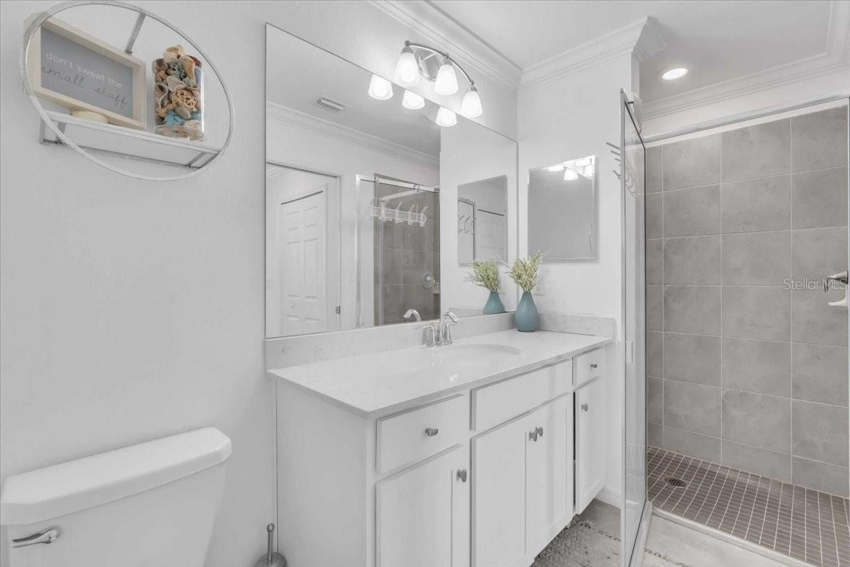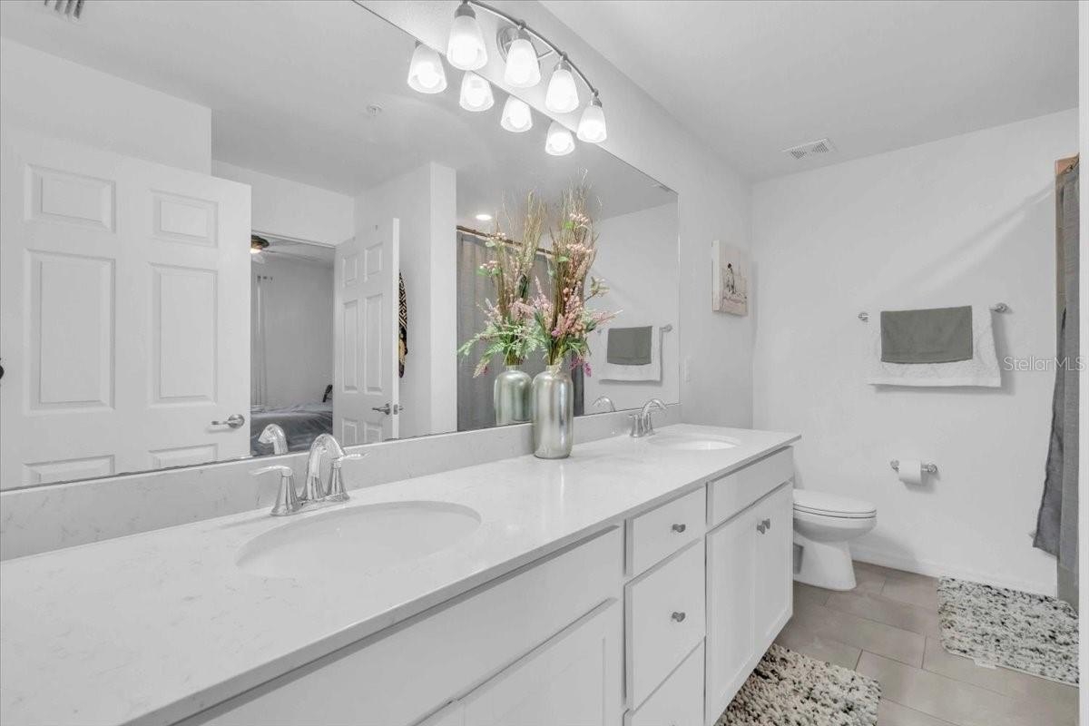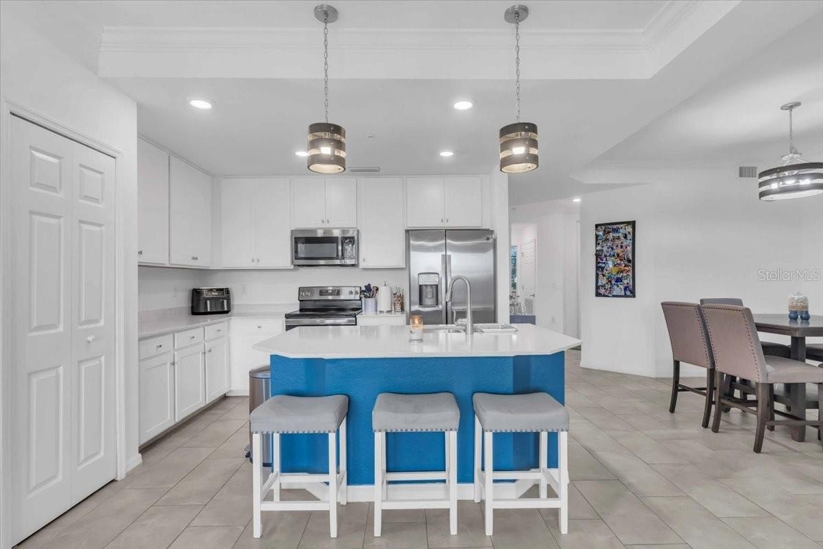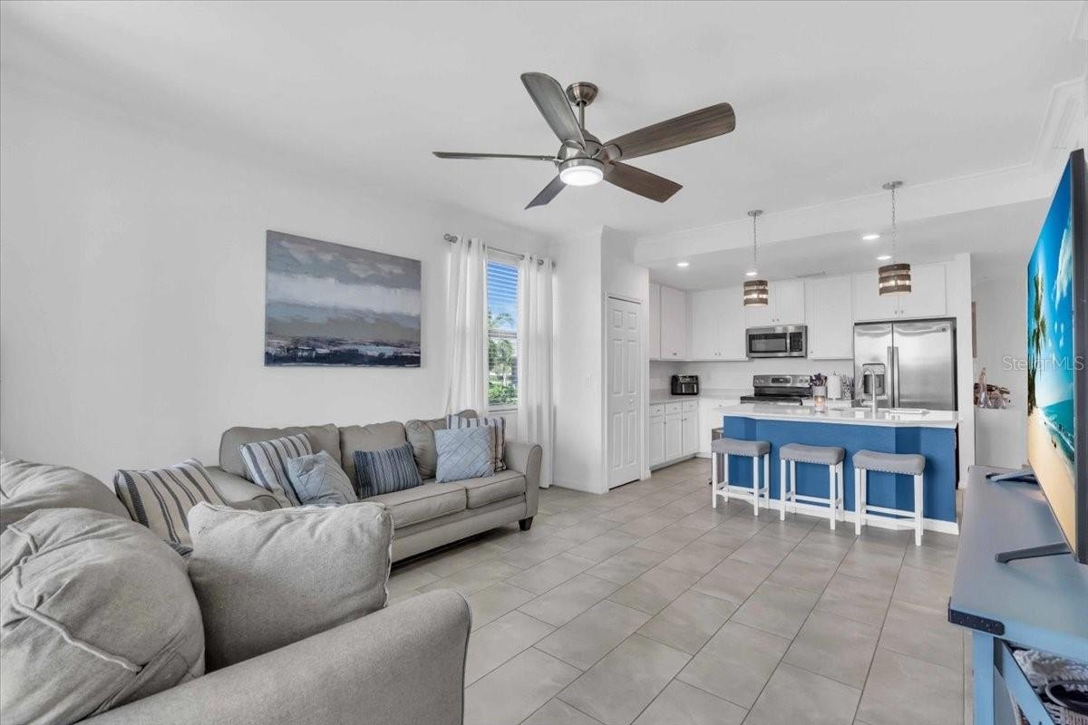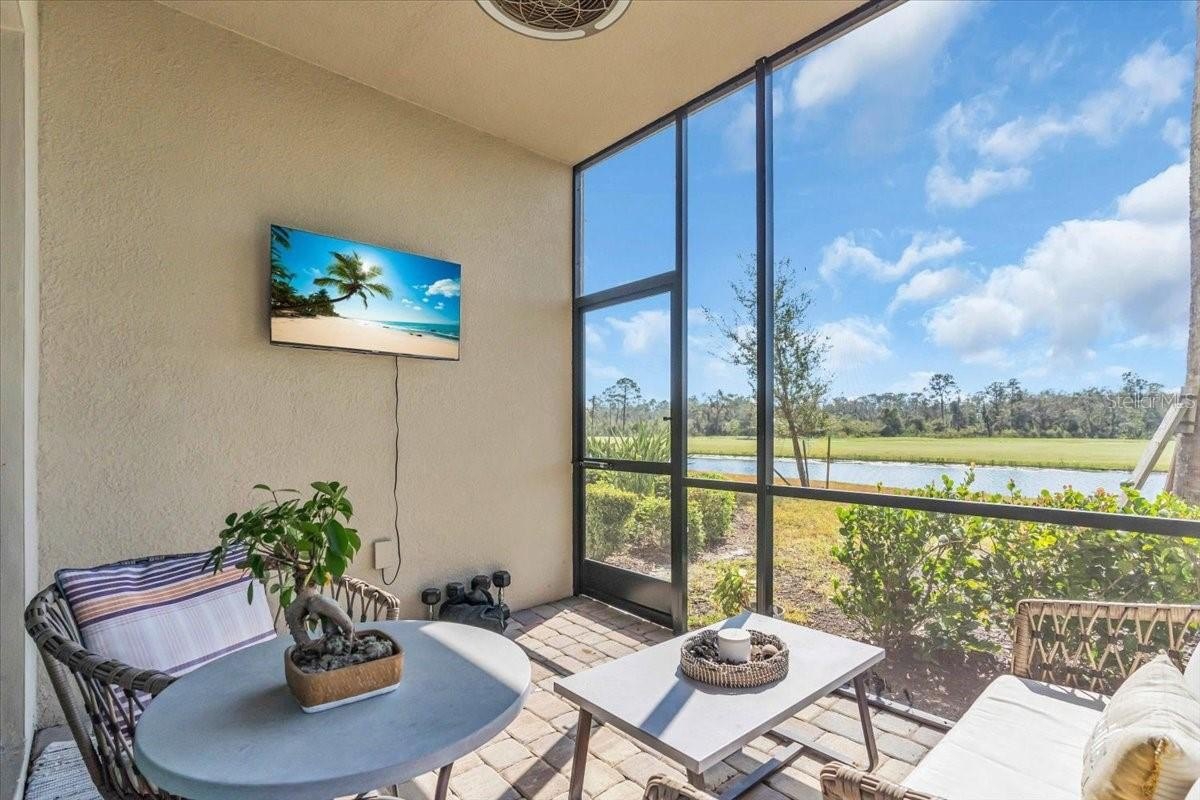 GROUND FLOOR, END UNIT, 3-bedroom, 2 bathroom condominium with golf membership in an amenity-rich community! NO CARPET. Beautifully designed and perfectly situated on the ground floor, offering easy access. Open floor plan filled with natural light, featuring a spacious living area that seamlessly flows into a modern kitchen equipped with stainless steel appliances and ample quartz counter space. The center island is a great place to have breakfast or a snack. Off the kitchen is a generous dining area. The primary suite boasts a private bathroom and a dual closets and is at the back of the home with water views, providing a tranquil retreat at the end of the day. The covered and screened lanai is next to the primary suite, off of the living area. It is a great place to enjoy your morning coffee or unwind in the evening with beautiful water and golf views. The split floor plan places the two additional bedrooms at the front of the unit, with one of the bedrooms connecting to the other full bath. Guests are able to access that bathroom from the hallway as well. The third bedrooms makes a great guest space, home office, or a hobby space. The unit comes with an outdoor storage closet as well as a reserved, covered parking space. Plenty of guest parking available. This property includes coveted golf membership, allowing you to enjoy the pristine greens of the community’s Arnold Palmer Championship 36-hole golf course. Beyond your front door, indulge in a wealth of amenities, including a grand clubhouse with beach entry lagoon pool, fitness center, clay tennis courts, casual poolside dining, full service spa, and so much more. Feel safe and secure with guarded gate access. Convenient access to everything Lakewood Ranch has to offer. Close to I-75, Waterside, UTC, top rated schools, shopping and dining. Not in a flood or evacuation zone but still close enough to all your favorite beaches. Within 22 miles of Siesta Key, Lido Key, and Anna Maria Island.