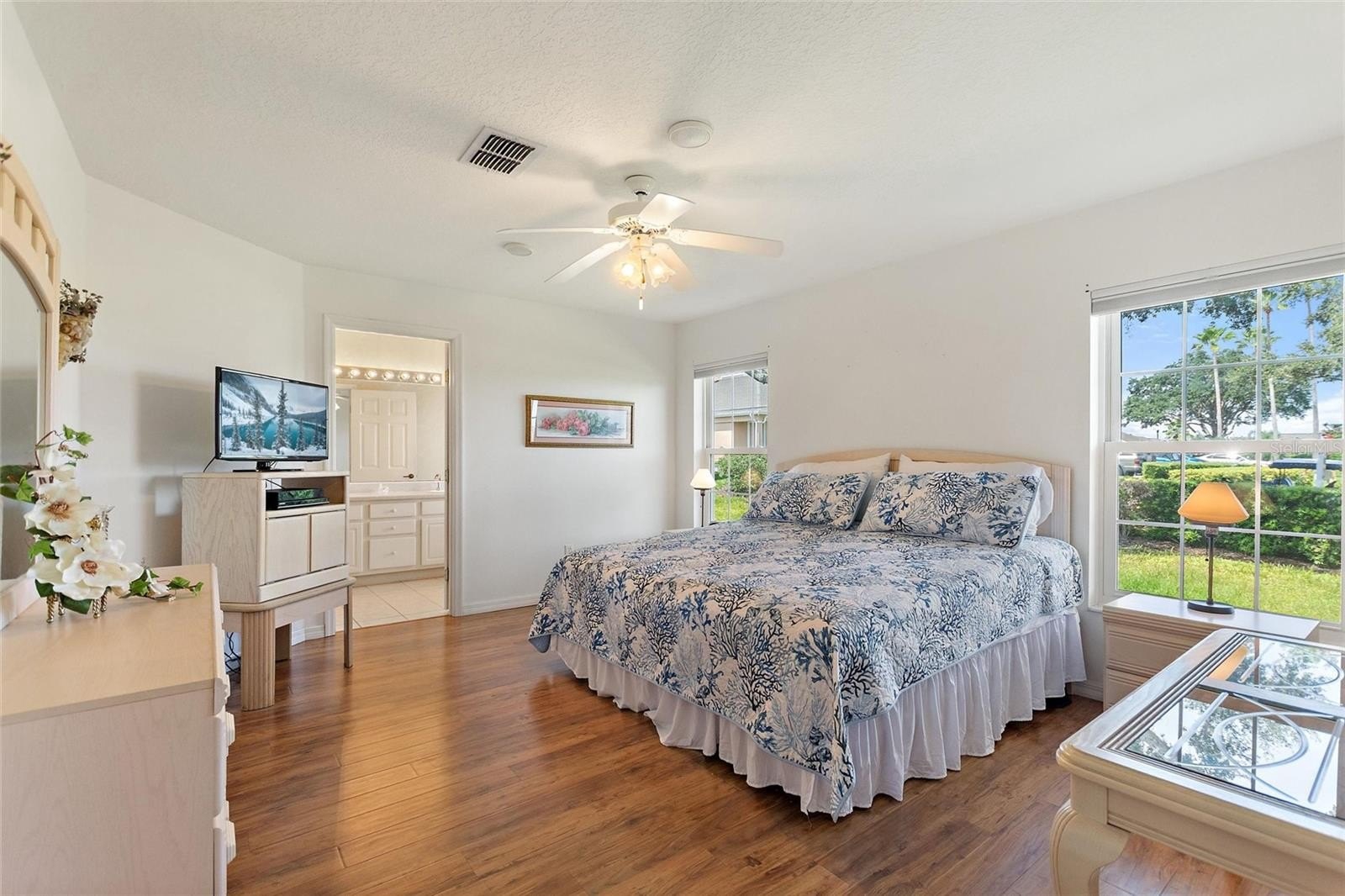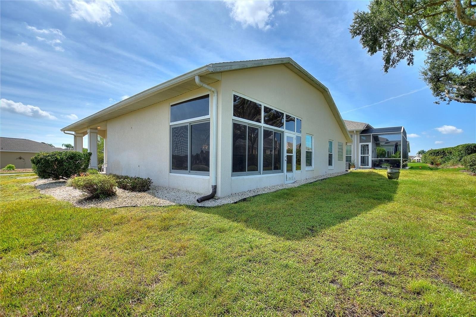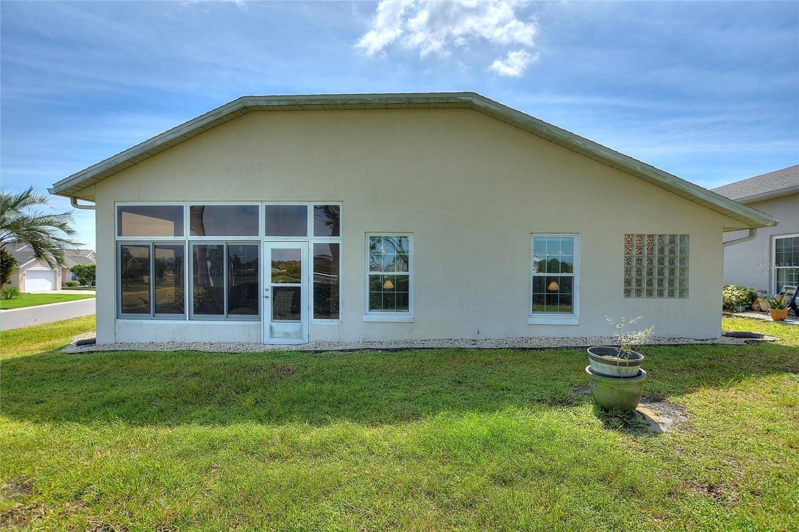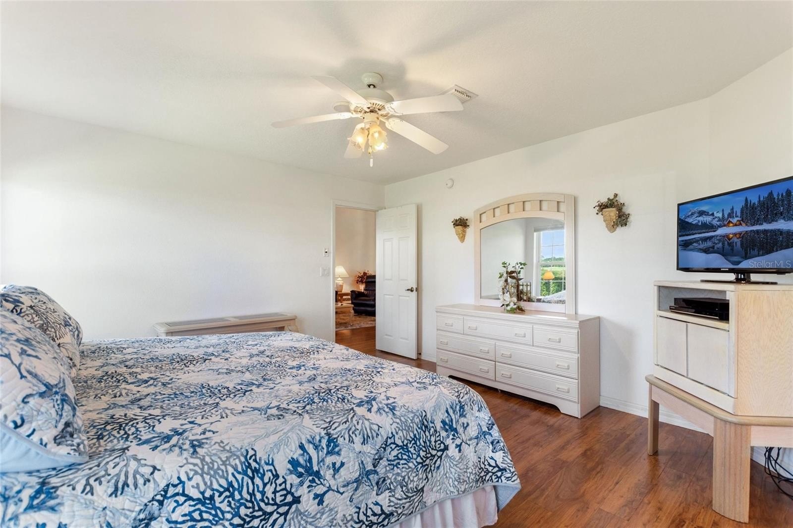 One or more photo(s) has been virtually staged. Partially-furnished RidgeMont 2 Bedroom / 2 Bath / Office model on 1-floor in Gated 55+ Community with 2025 Roof & Water Heater, Solid Surface Floors throughout, newer HVAC & Replacement Windows, located next-door to High Vista's private clubhouse and outdoor amenity center. Brick paver driveway and walkway to a charming portico entry with full-view storm door enters a vaulted-ceiling great room with a wall of patio windows to an enclosed west-facing lanai. Eat-in kitchen in front of house has white cabinets & countertops, large closet pantry and a newer stainless-steel refrigerator. Utility sink and stackable washer/dryer in corridor laundry area. Primary bedroom has private bath within 13x6 walk-in-closet, dual sink vanity, soaking tub, linen closet and shower. Guest bedroom and office share a full bath and large linen closet in this split bedroom floor plan. Quality top-down/bottom-up blinds throughout interior. 2-car garage has insulated garage door with opener & keypad entry and electric screen door. Well for Irrigation. Roof and Water Heater replaced 2025; HVAC replaced 2022; many windows replaced 2019. Newer smoke detectors. Sold As-Is. Ridgewood Lakes is a golf cart friendly community. $230 monthly High Vista HOA fee includes Spectrum internet and basic cable TV with 2 cable boxes, lawn mowing and exclusive access to resident-owned 12,000 SF private High Vista clubhouse and amenities. $425 semi-annual Ridgewood Lakes HOA fee provides 24x7 staffed security gate and master association-owned private road maintenance. Adjacent to 18-hole White Heron Golf Club with restaurant, privately owned and open to the public. High Vista is a 55+ community with outdoor heated pool and spa, fitness center, library, pub & many organized activities. Pickle ball, tennis, bocce and shuffleboard courts. Miles of biking and walking trails within Ridgewood Lakes gated community. Shopping, Disney, Universal, Orlando & Central FL entertainment nearby, easy access to I-4, medical facilities, airports & Sunrail Station. Advent Health hospital is 3 miles away.