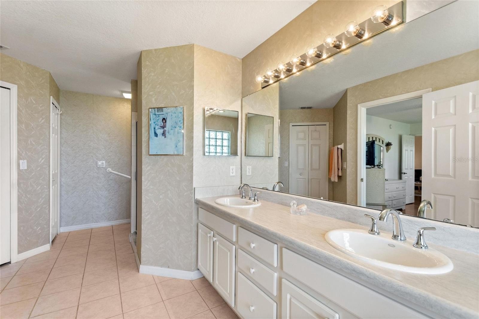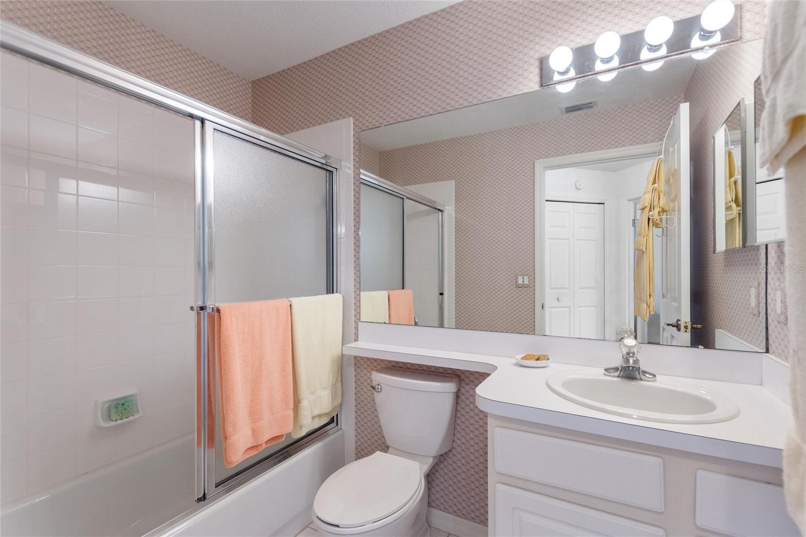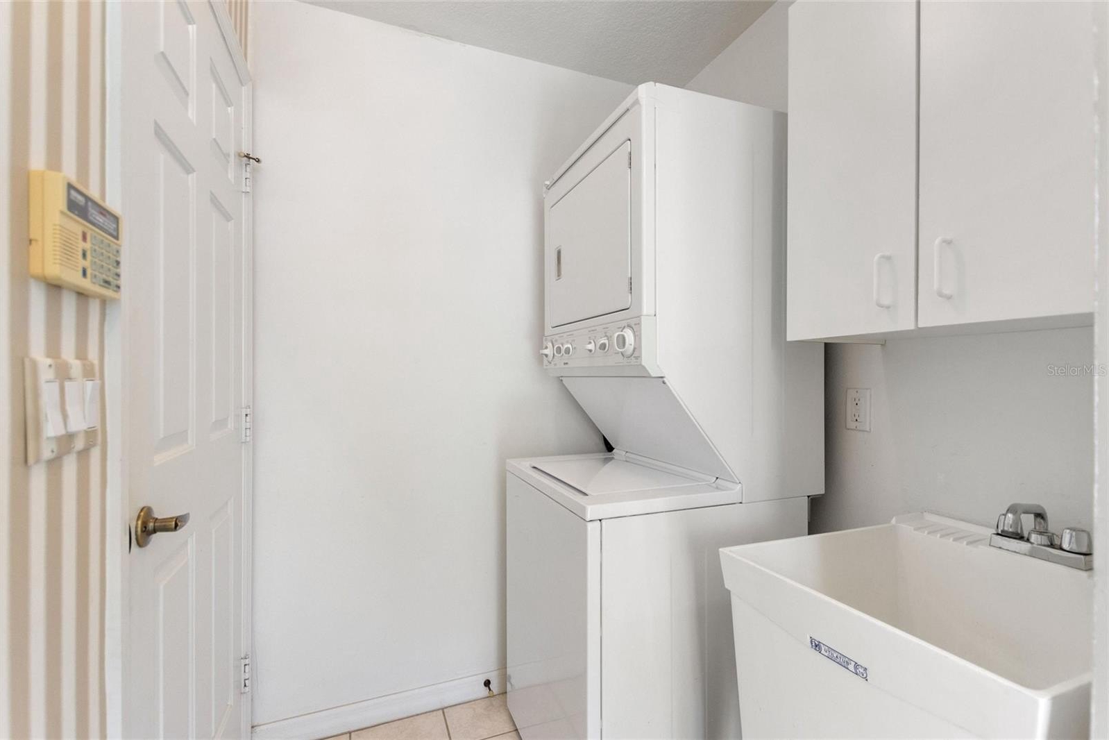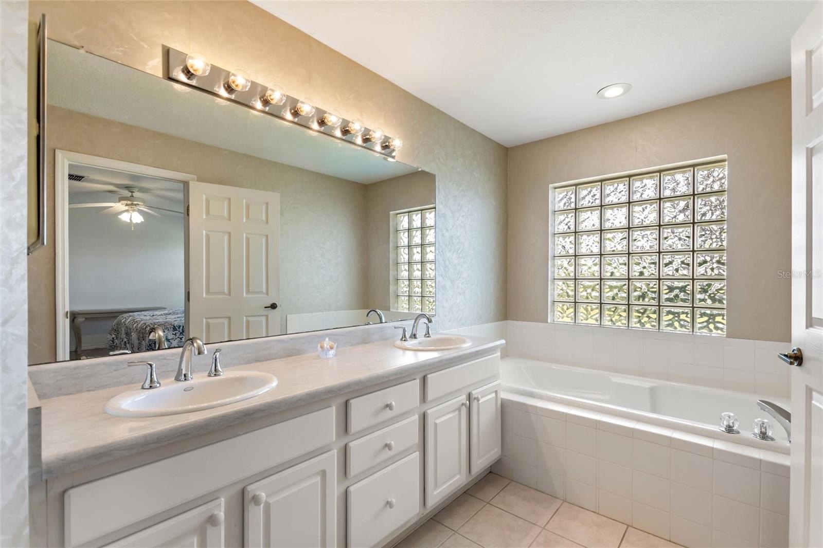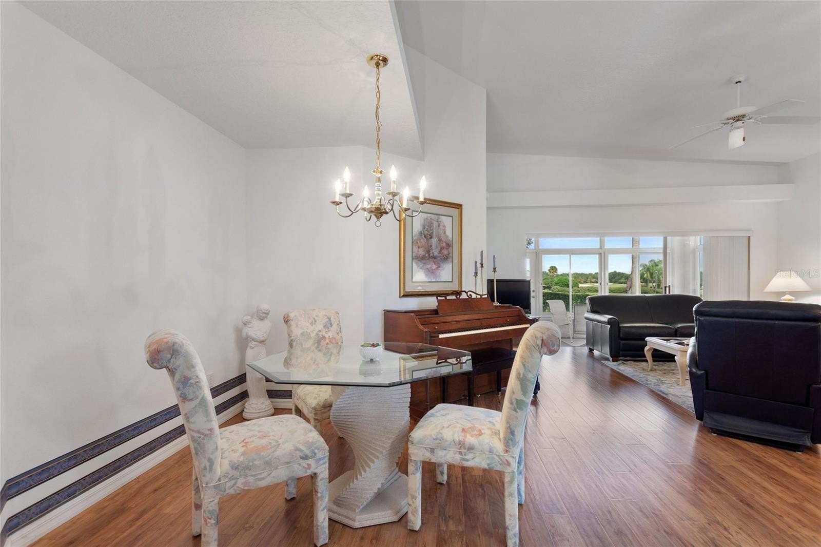 One or more photo(s) has been virtually staged. Partially-furnished RidgeMont 2 Bedroom / 2 Bath / Office model on 1-floor in Gated 55+ Community with 2025 Roof & Water Heater, Solid Surface Floors throughout, newer HVAC & Replacement Windows, located next-door to High Vista's private clubhouse and outdoor amenity center. Brick paver driveway and walkway to a charming portico entry with full-view storm door enters a vaulted-ceiling great room with a wall of patio windows to an enclosed west-facing lanai. Eat-in kitchen in front of house has white cabinets & countertops, large closet pantry and a newer stainless-steel refrigerator. Utility sink and stackable washer/dryer in corridor laundry area. Primary bedroom has private bath within 13x6 walk-in-closet, dual sink vanity, soaking tub, linen closet and shower. Guest bedroom and office share a full bath and large linen closet in this split bedroom floor plan. Quality top-down/bottom-up blinds throughout interior. 2-car garage has insulated garage door with opener & keypad entry and electric screen door. Well for Irrigation. Roof and Water Heater replaced 2025; HVAC replaced 2022; many windows replaced 2019. Newer smoke detectors. Sold As-Is. Ridgewood Lakes is a golf cart friendly community. $230 monthly High Vista HOA fee includes Spectrum internet and basic cable TV with 2 cable boxes, lawn mowing and exclusive access to resident-owned 12,000 SF private High Vista clubhouse and amenities. $425 semi-annual Ridgewood Lakes HOA fee provides 24x7 staffed security gate and master association-owned private road maintenance. Adjacent to 18-hole White Heron Golf Club with restaurant, privately owned and open to the public. High Vista is a 55+ community with outdoor heated pool and spa, fitness center, library, pub & many organized activities. Pickle ball, tennis, bocce and shuffleboard courts. Miles of biking and walking trails within Ridgewood Lakes gated community. Shopping, Disney, Universal, Orlando & Central FL entertainment nearby, easy access to I-4, medical facilities, airports & Sunrail Station. Advent Health hospital is 3 miles away.